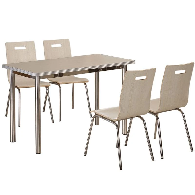 1 Table 4 chairs rice white stainless steel aluminum alloy edge