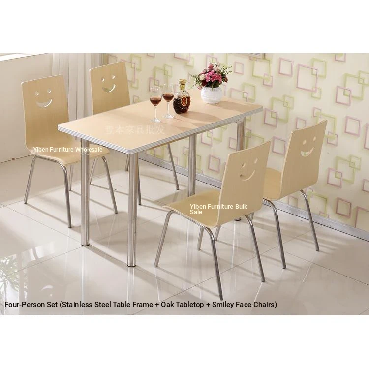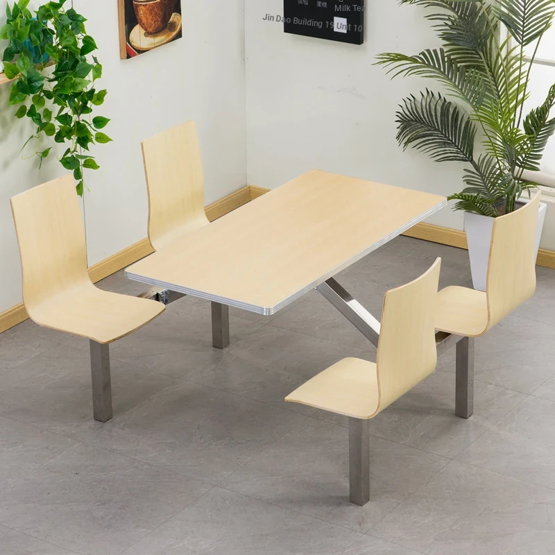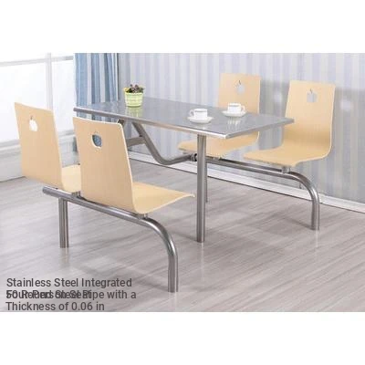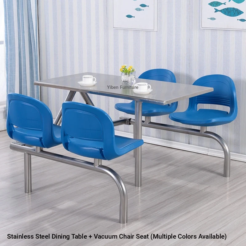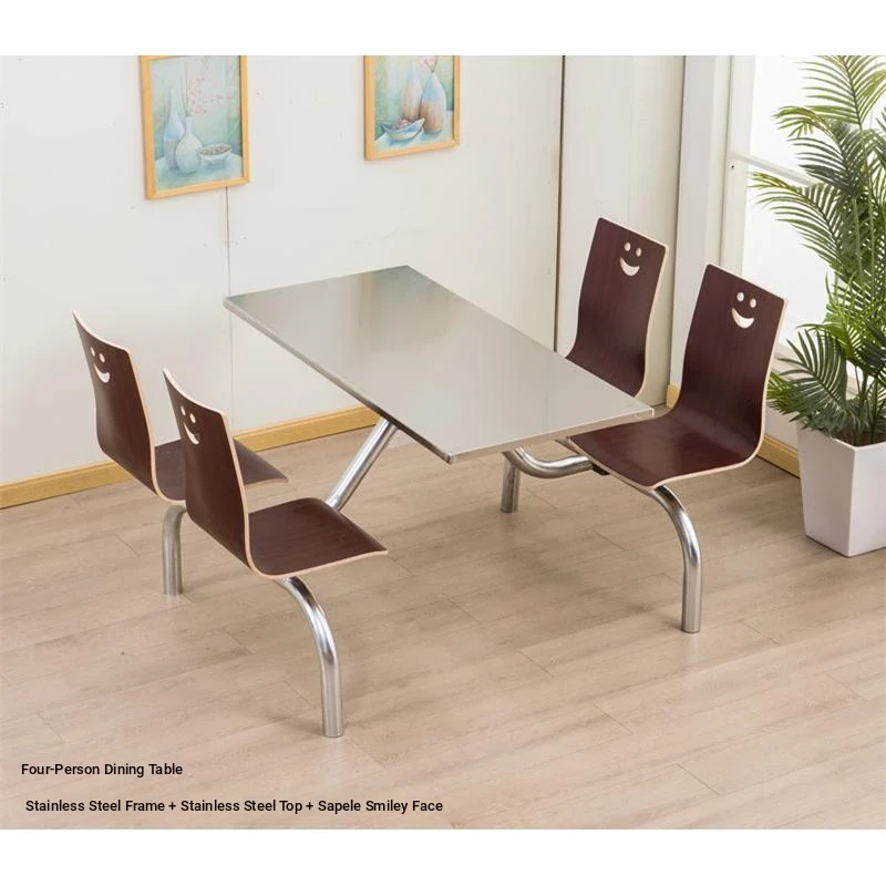 Stainless Steel Dining Tables and Chairs for Fast Food Restaurants, Hospitals, Construction Sites, and Schools – Perfect for 4 to 6 People in Employee Cafeterias! Durable and Easy to Clean.