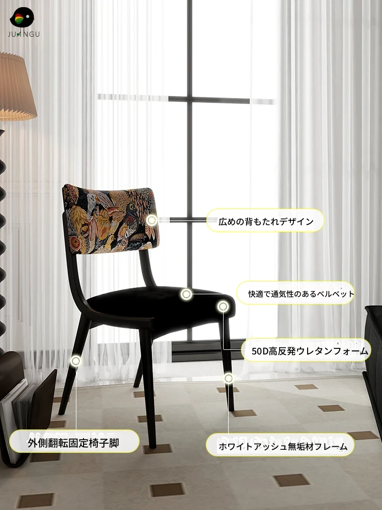 2024年新作!実木フレンチビンテージダイニングテーブル&チェアセット - おしゃれなリビングにぴったりな黒色デザイナーの背もたれ付きデスク。中古風の魅力をあなたの家に!