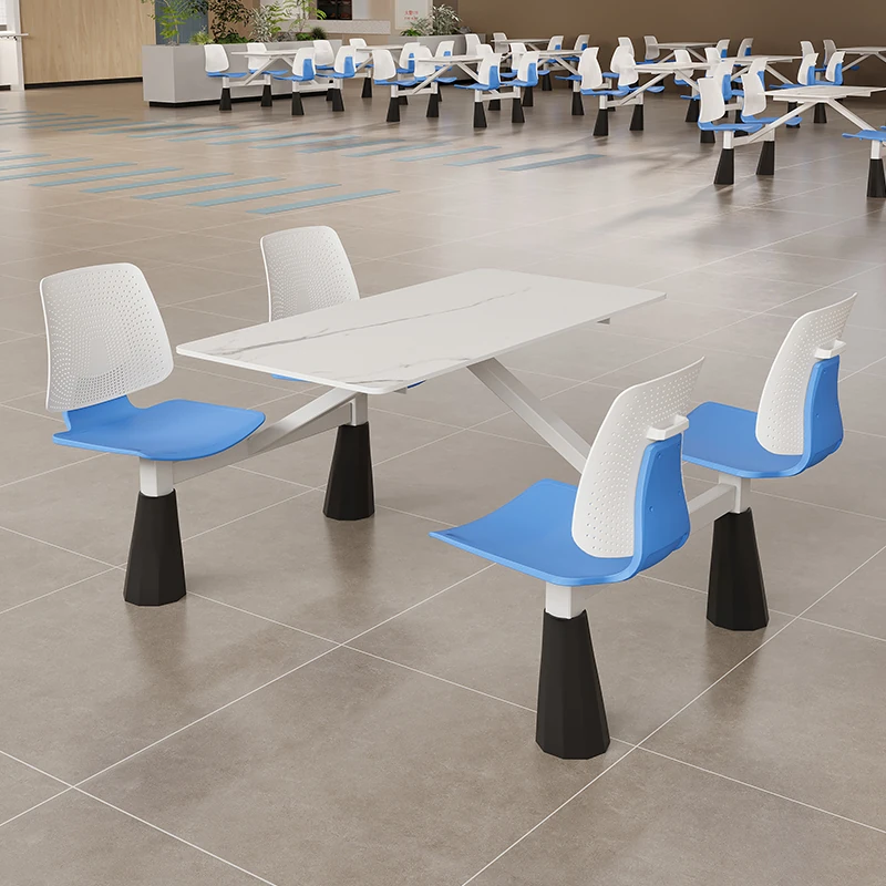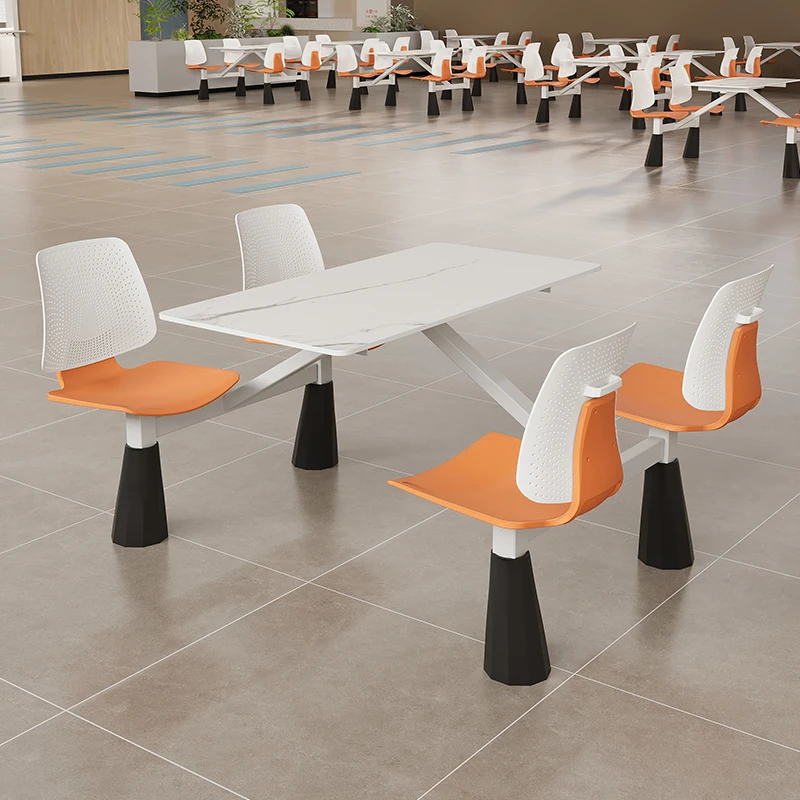 学校や社員食堂に最適!4人用連結型ファーストフードテーブルセット - スピーディーなサービスを実現する便利なデザイン!