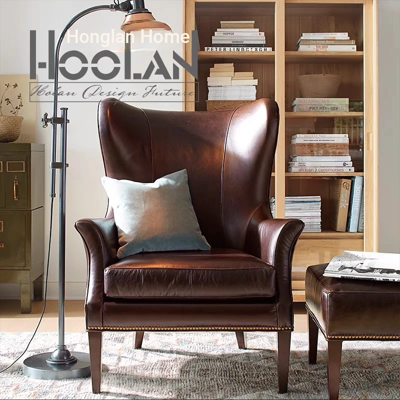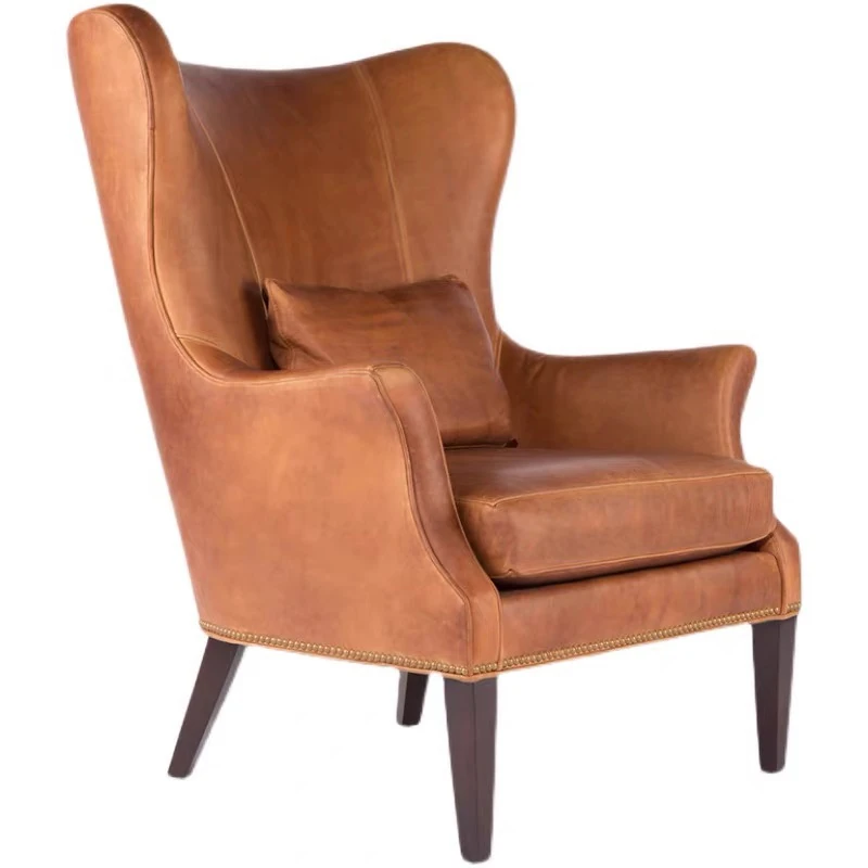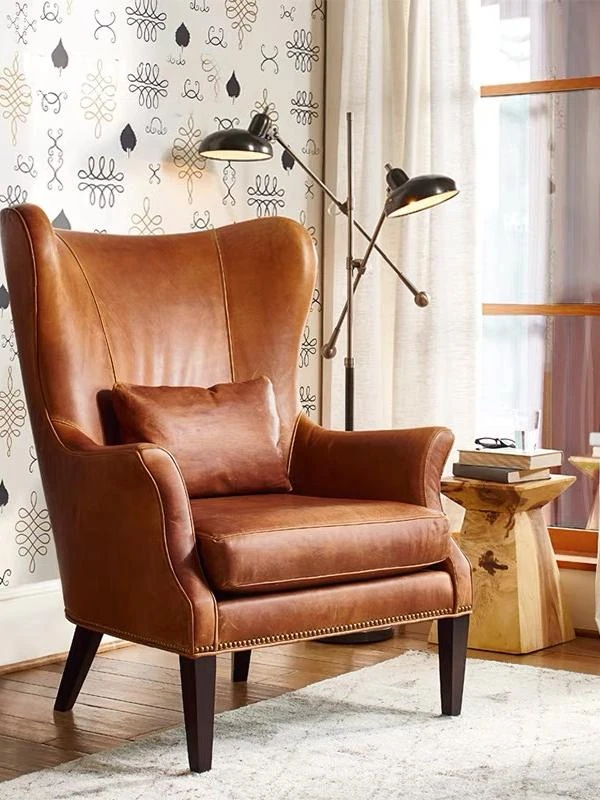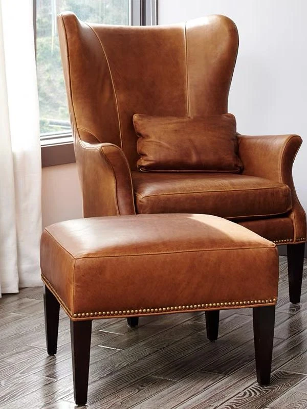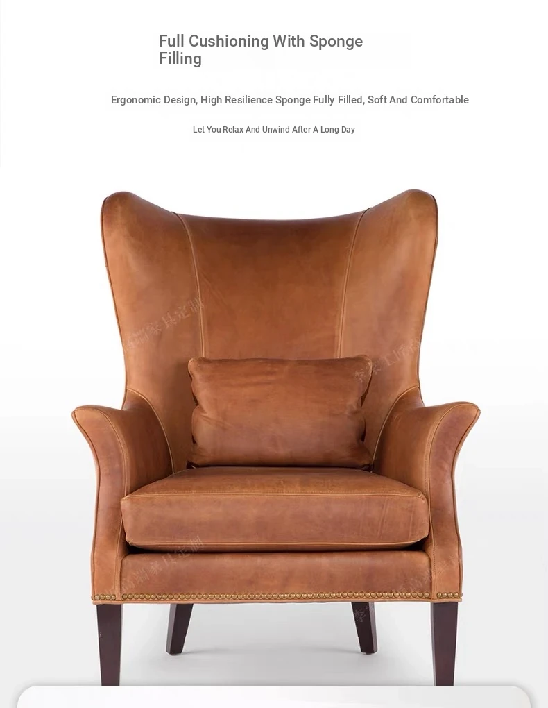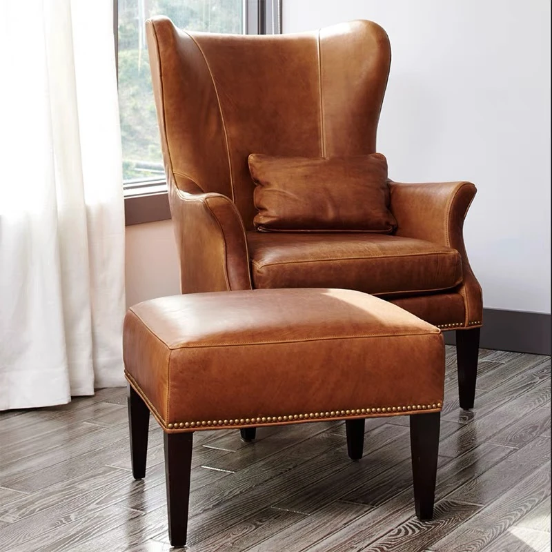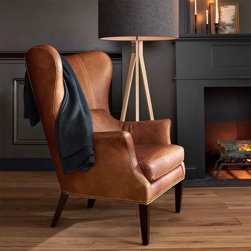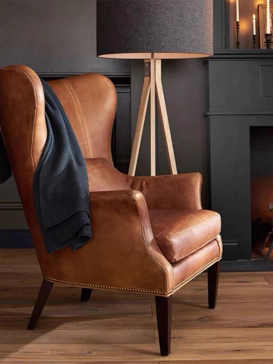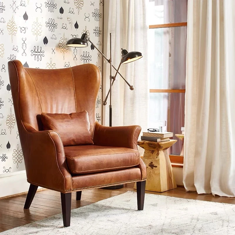 アメリカンスタイル本革トラチェア 北欧風コンパクトリビング・バルコニー用 高背もたれデザイン レトロPU一人掛けソファ おしゃれで快適な空間を演出!