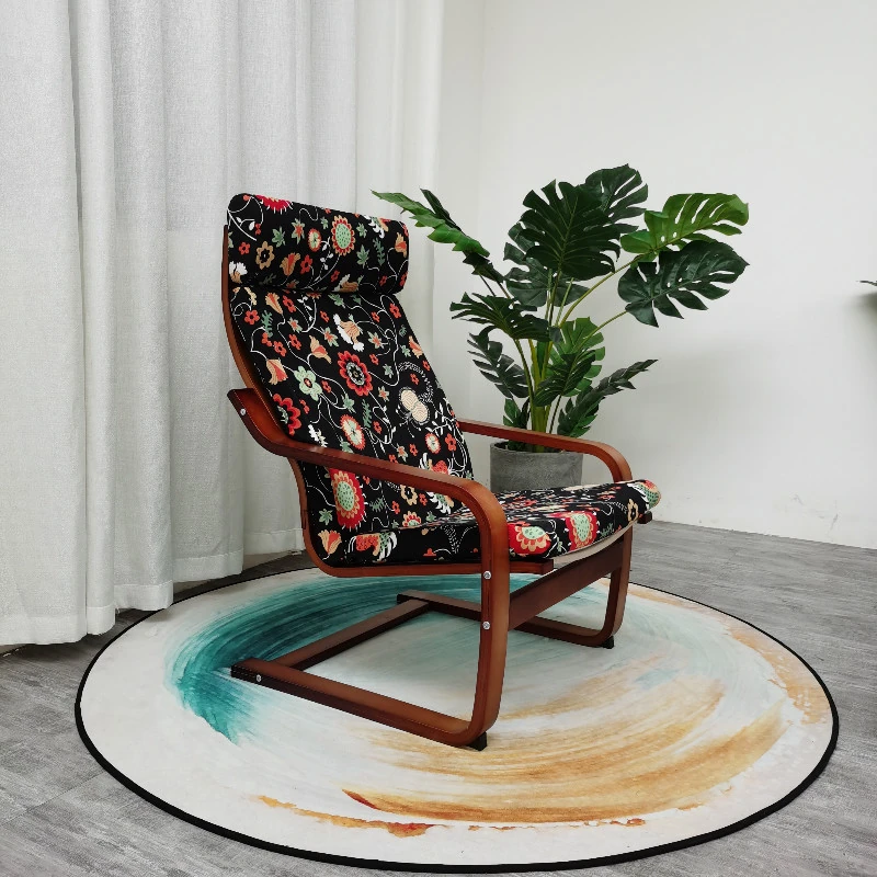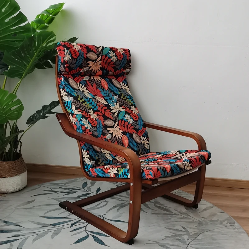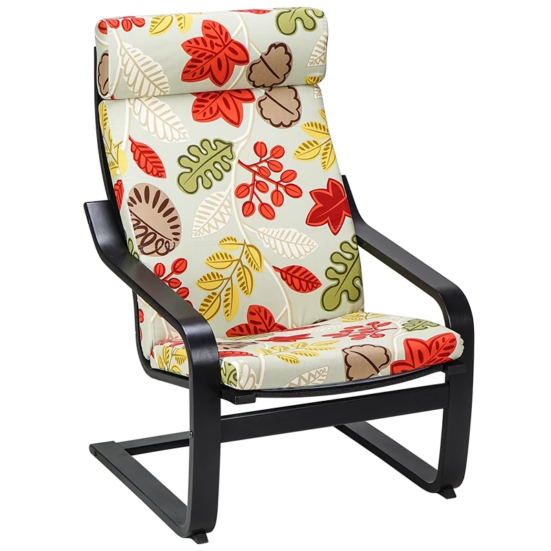 ブラック底のカラフルリーフ胡桃色ボーンチェア