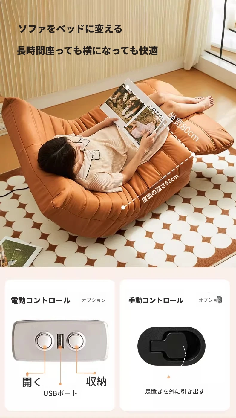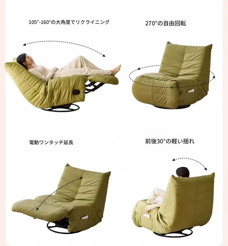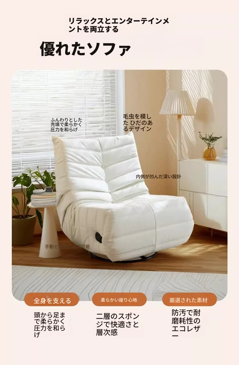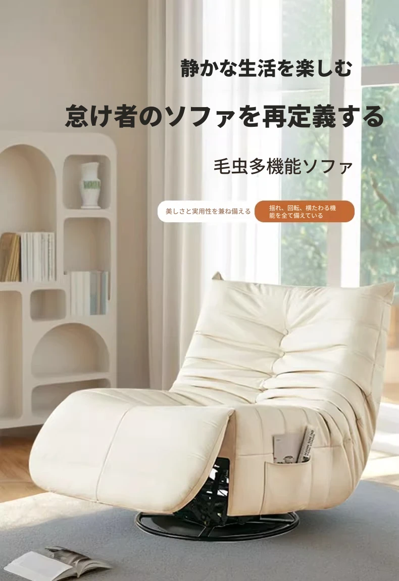 毛虫型多機能電動ソファチェア - リビングやバルコニーに最適!一人用の揺れる椅子で、家庭用の寝転びスタイル。360度回転可能で、リラックスした時間を提供します。