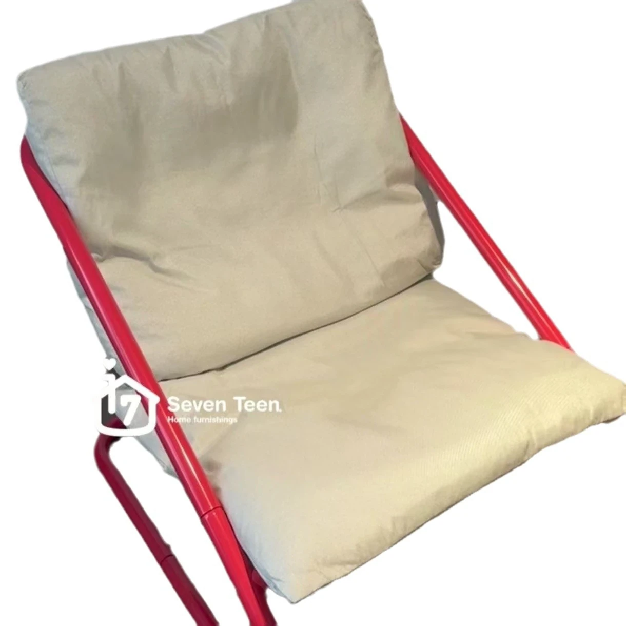 【エクスクルーシブ版+グレーとホワイトのコットンリネン座布団】赤フレーム