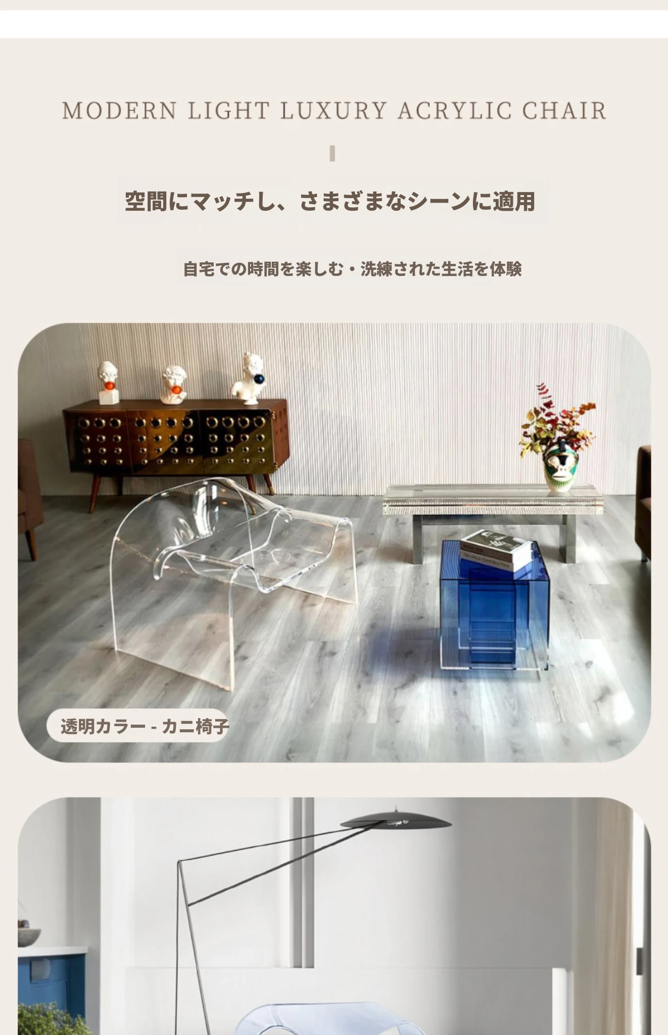 デザイナー蟹型アクリルソファチェア|シンプルでモダンな軽奢スタイル|人気の透明クリスタルソファ|くつろぎのひとときを提供します!