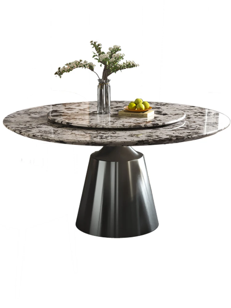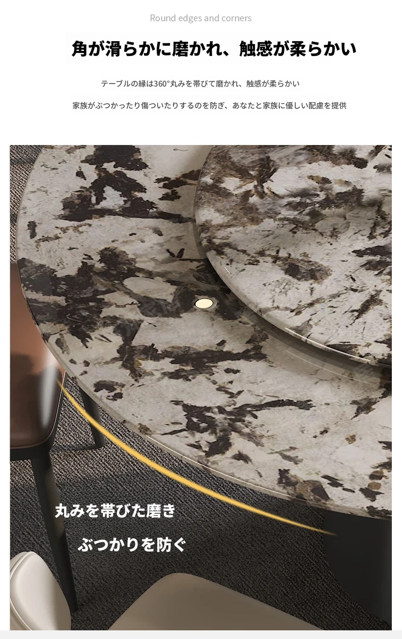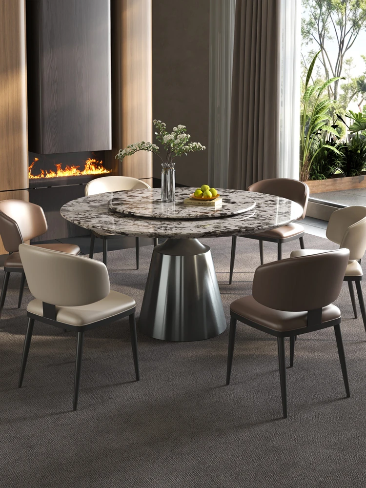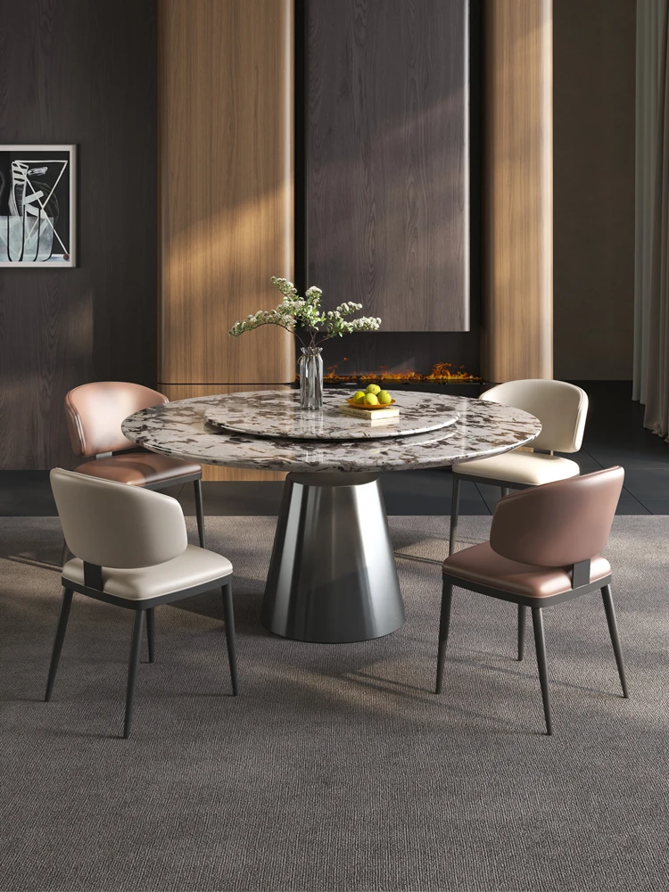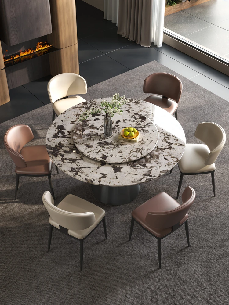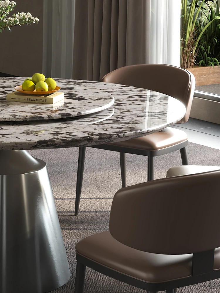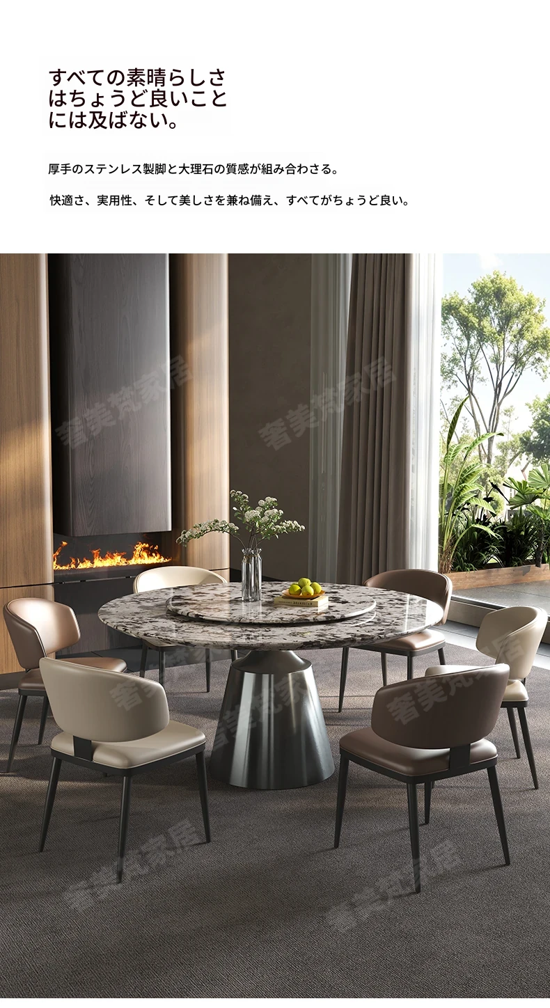 軽やかで洗練された現代的な雪山の飛狐模様を持つ天然石の心大理石製ラウンドダイニングテーブル & チェアセット、回転式デザインで家族や友人との食事をもっと楽しく!