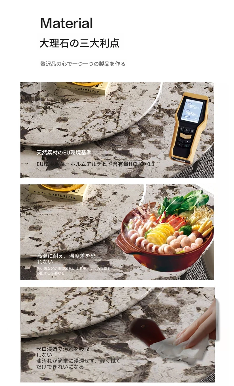 150CM大理石ダイニングテーブル【90CM回転盤付き】