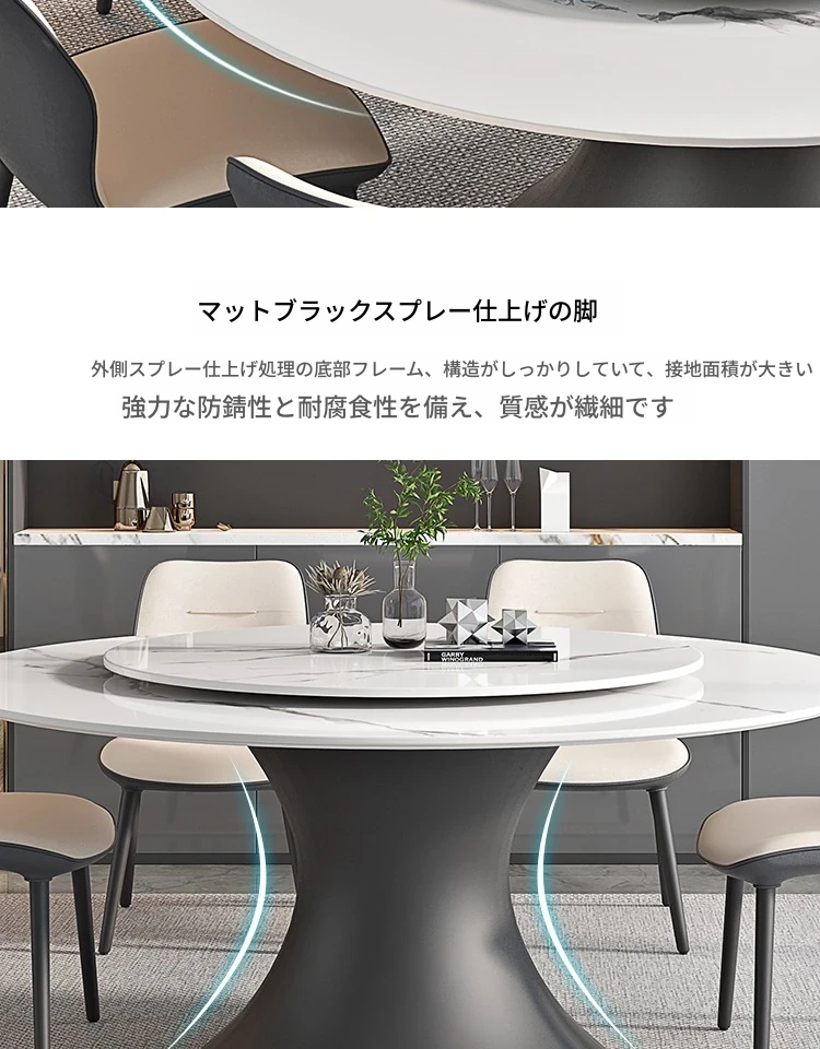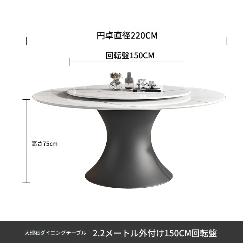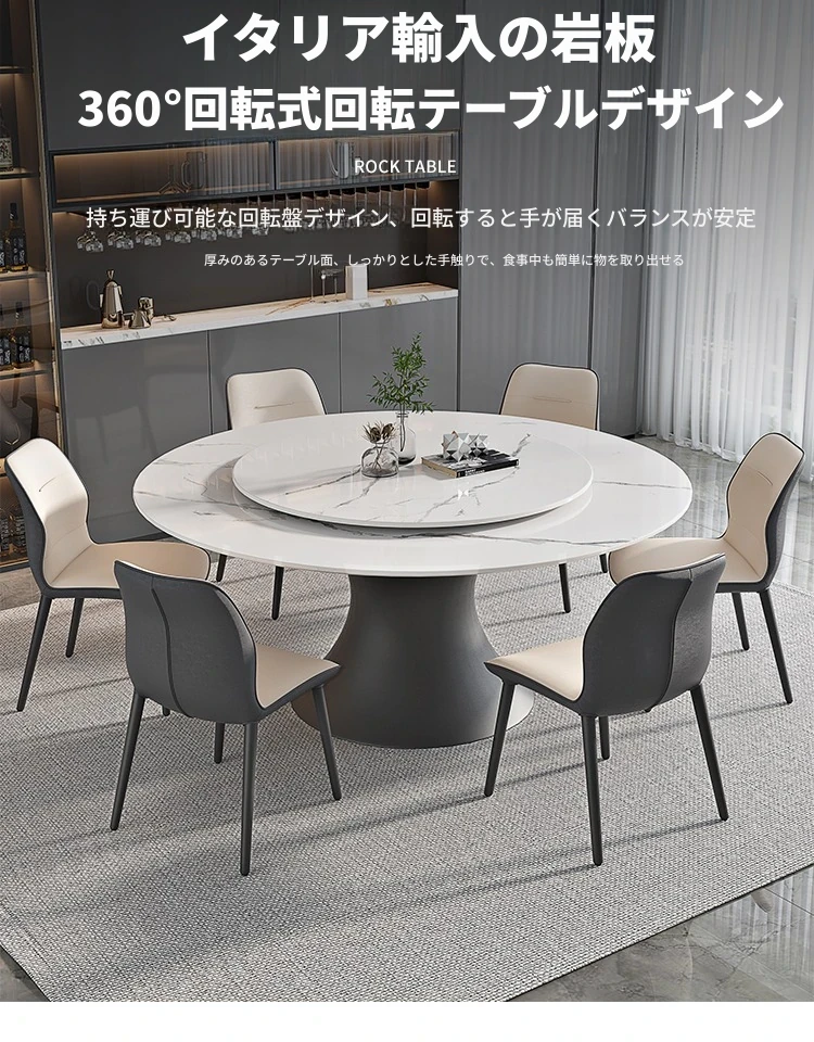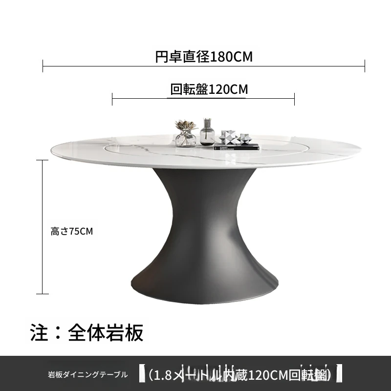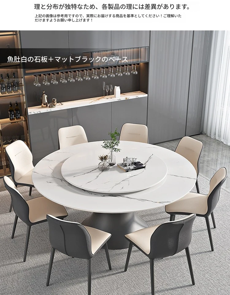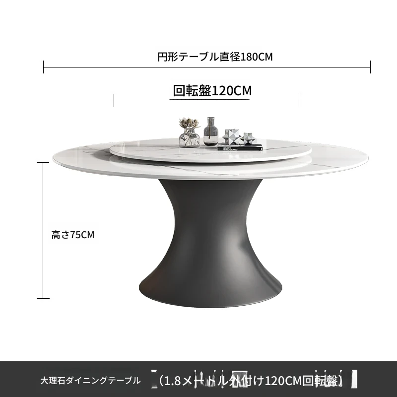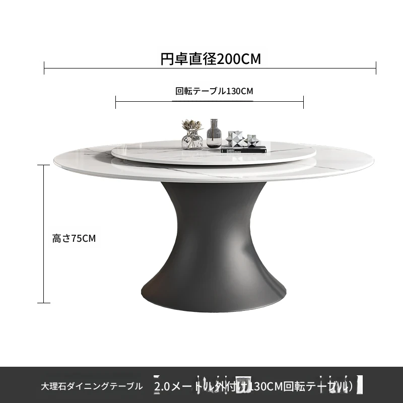ラグジュアリーな現代的な1.8m円形ダイニングテーブル - 回転プレート付き、10人~12人用、2m大理石製、洗練されたシンプルさで家族や友人との特別なひとときを演出します。