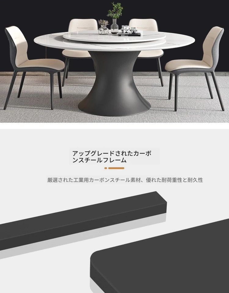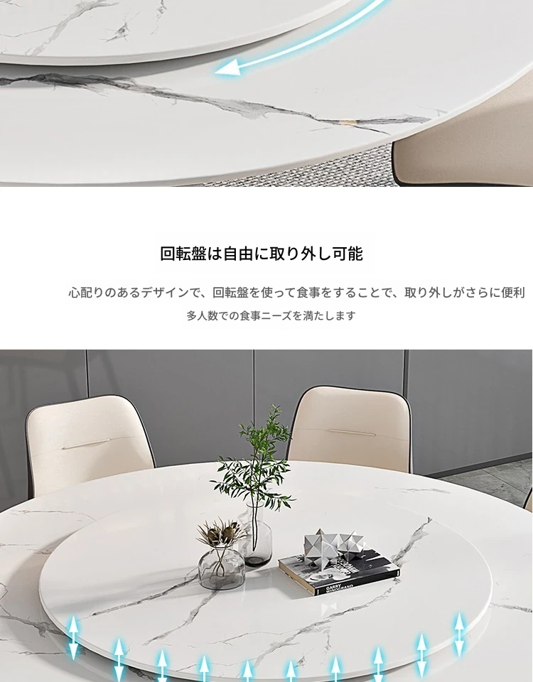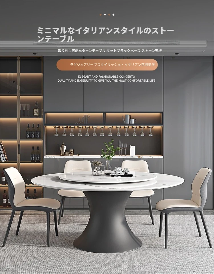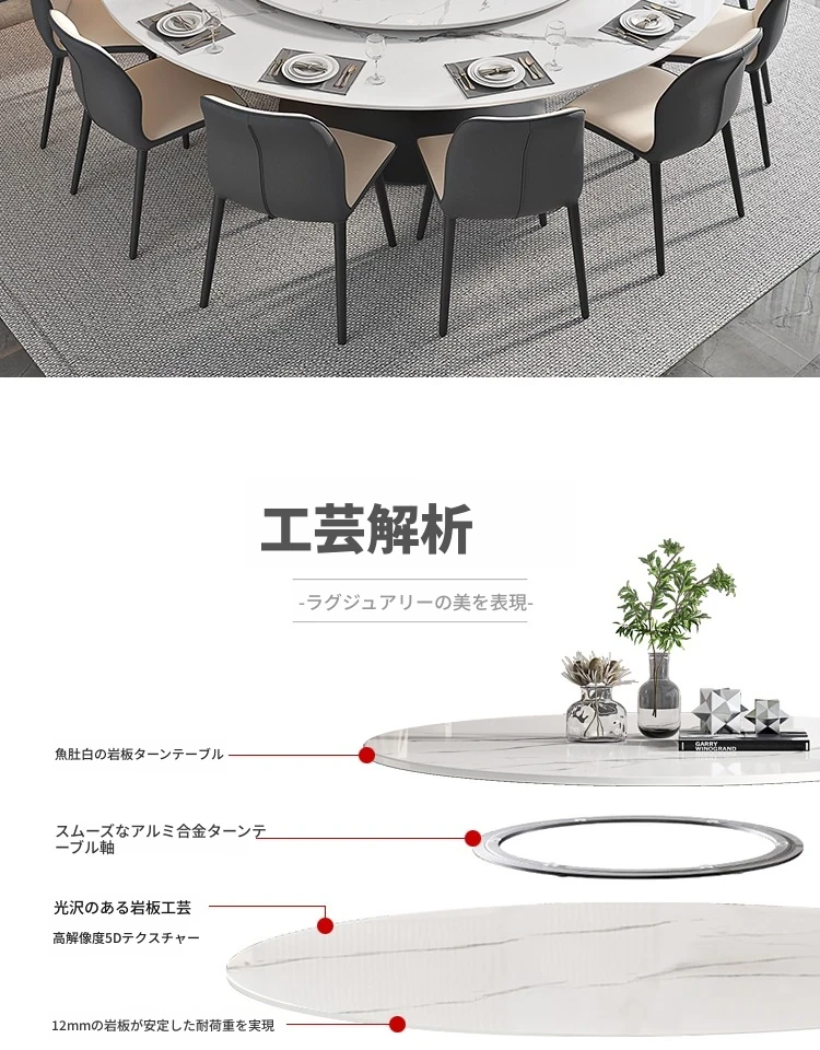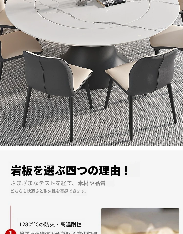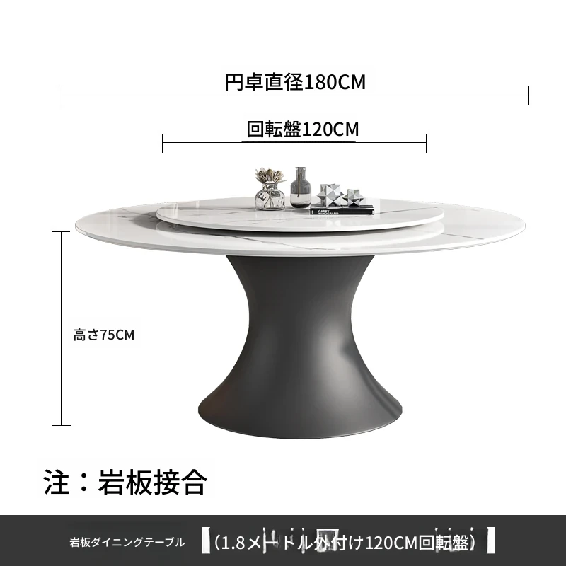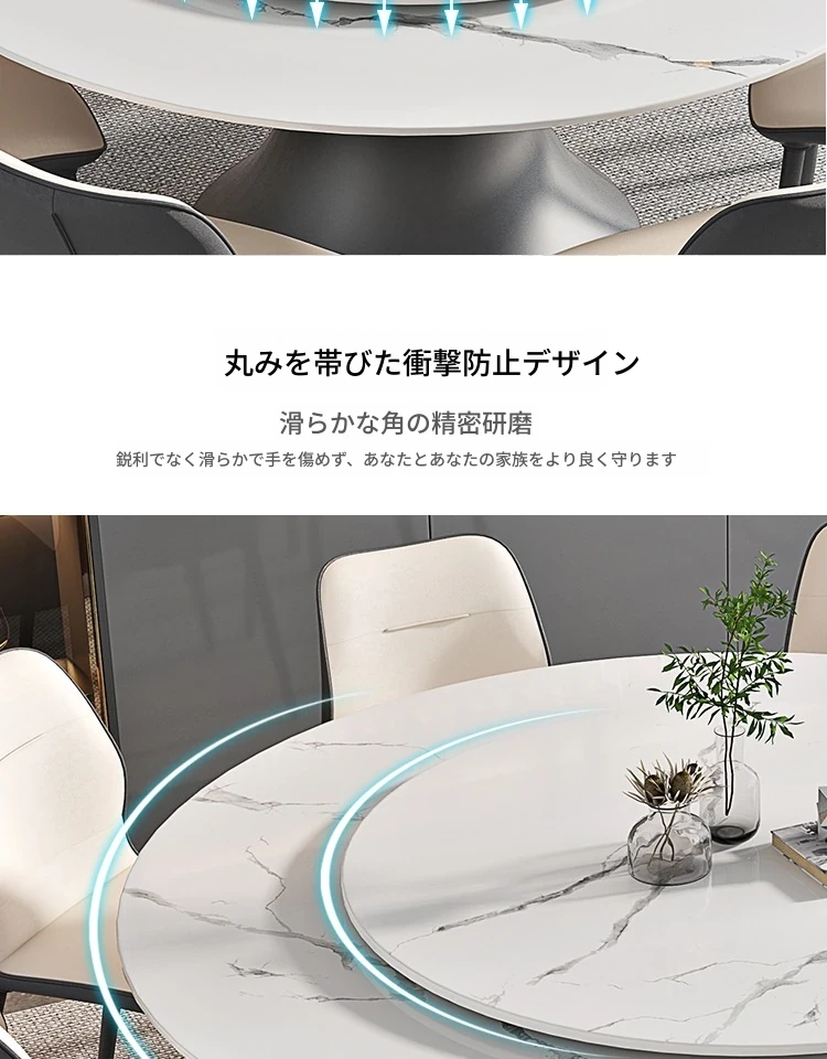 ラグジュアリーな現代的な1.8m円形ダイニングテーブル - 回転プレート付き、10人~12人用、2m大理石製、洗練されたシンプルさで家族や友人との特別なひとときを演出します。