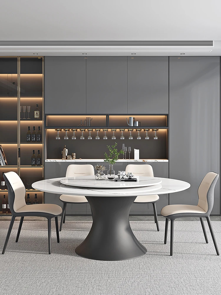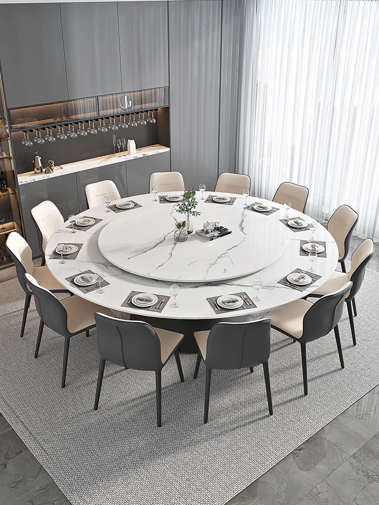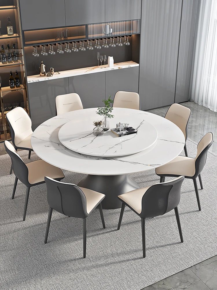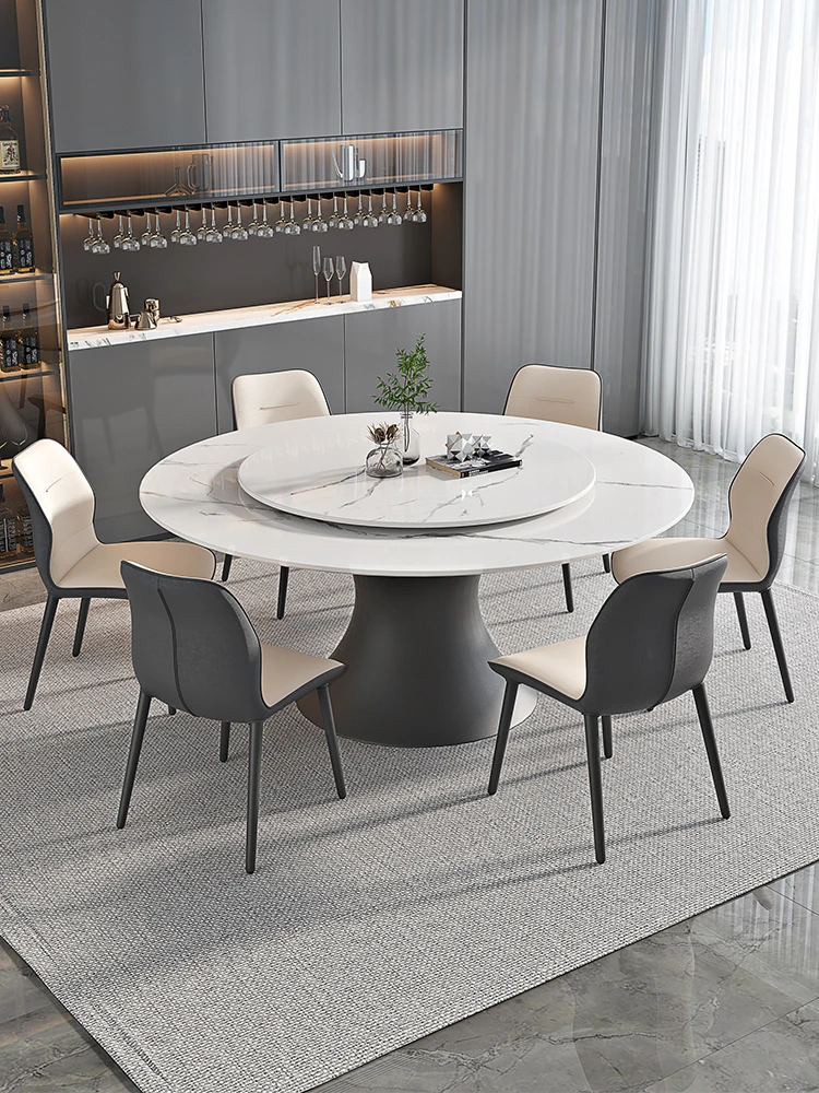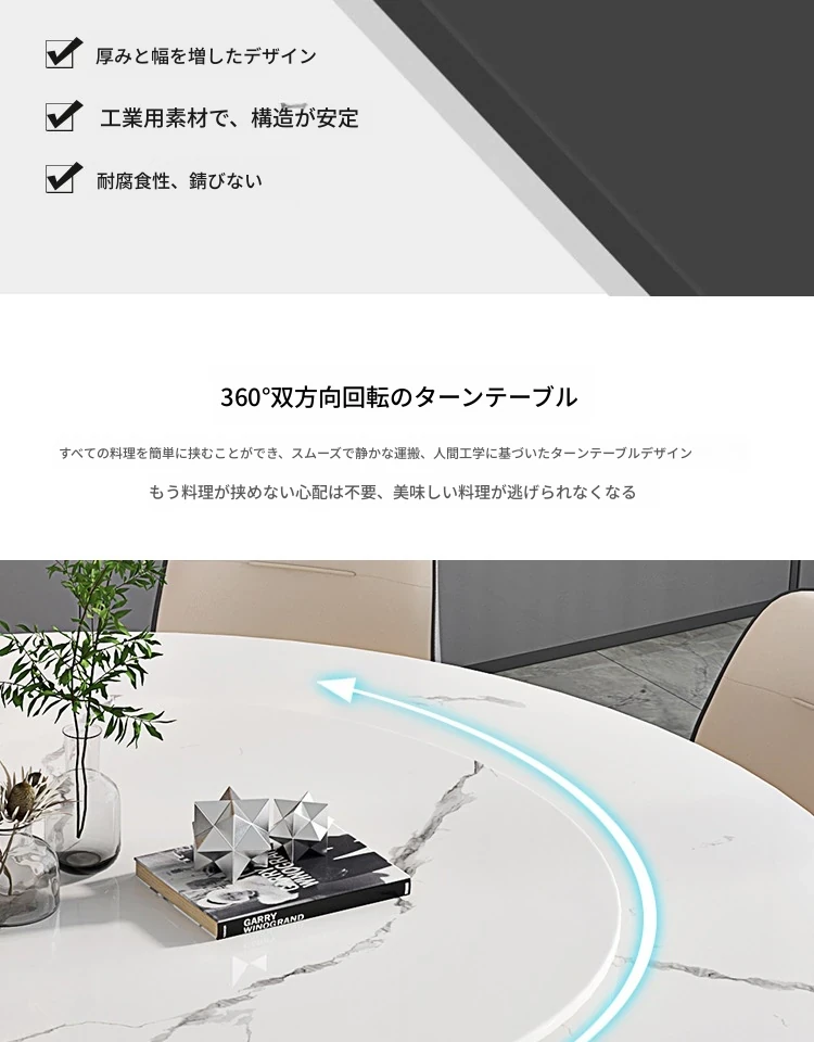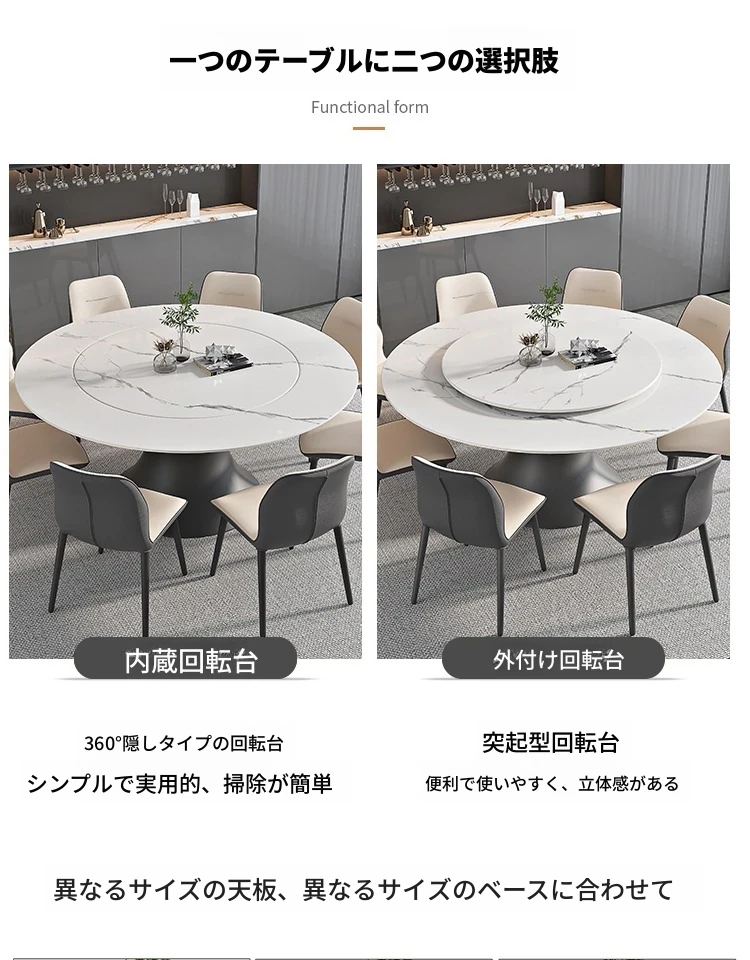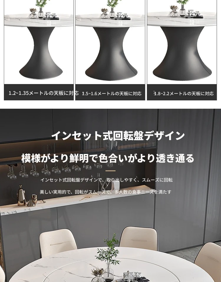 ラグジュアリーな現代的な1.8m円形ダイニングテーブル - 回転プレート付き、10人~12人用、2m大理石製、洗練されたシンプルさで家族や友人との特別なひとときを演出します。
