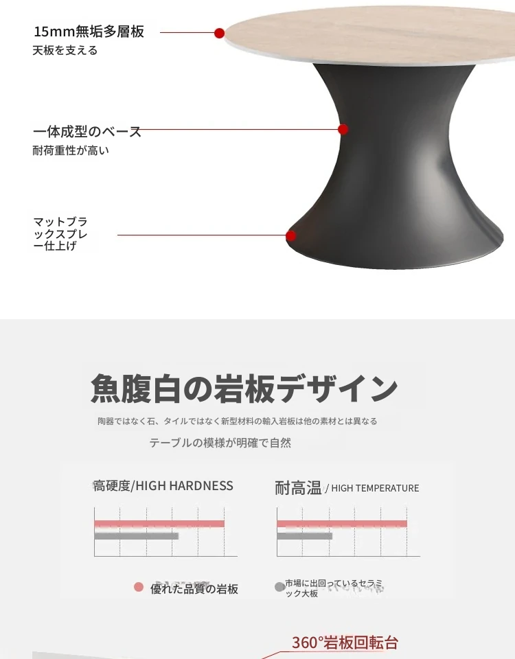 輸入岩板1.5メートル【凸回転盤】 90CM回転盤付き
