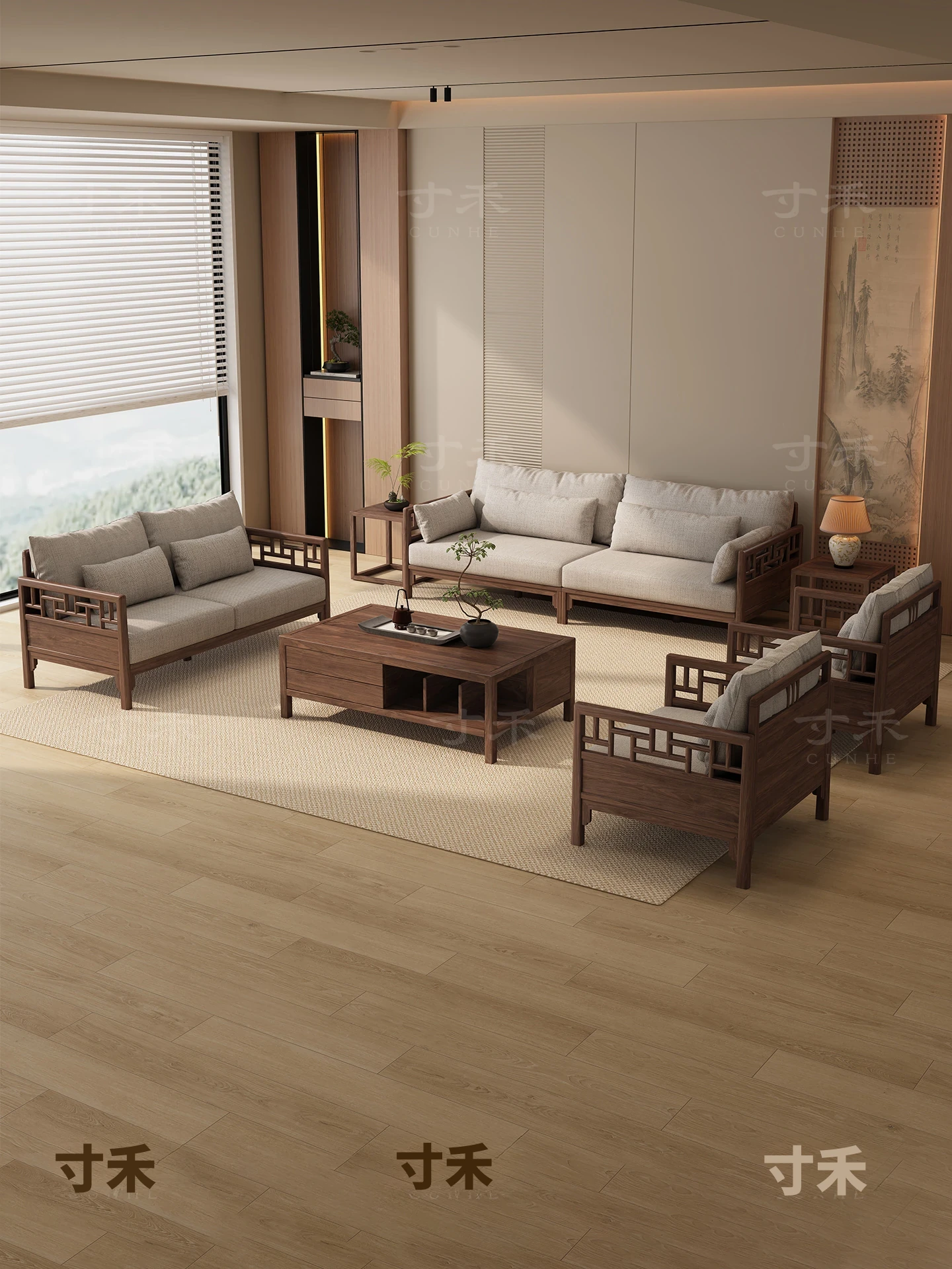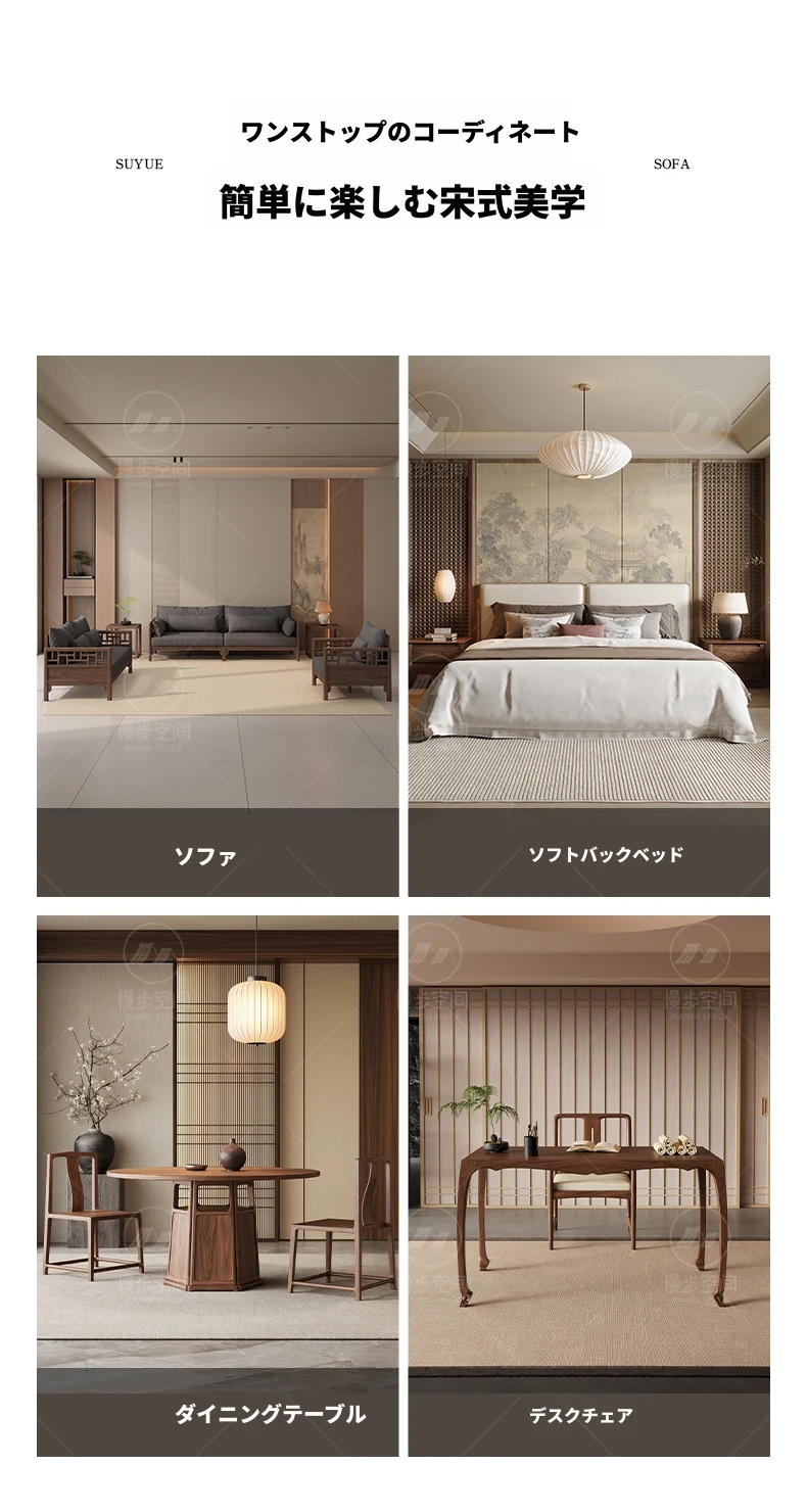 寸禾宋式美学 南米クルミ材の本物のソファ Zenスタイルの新しい中式茶室用カウンターセット 全室用コンビネーションで、心安らぐ空間を演出します!