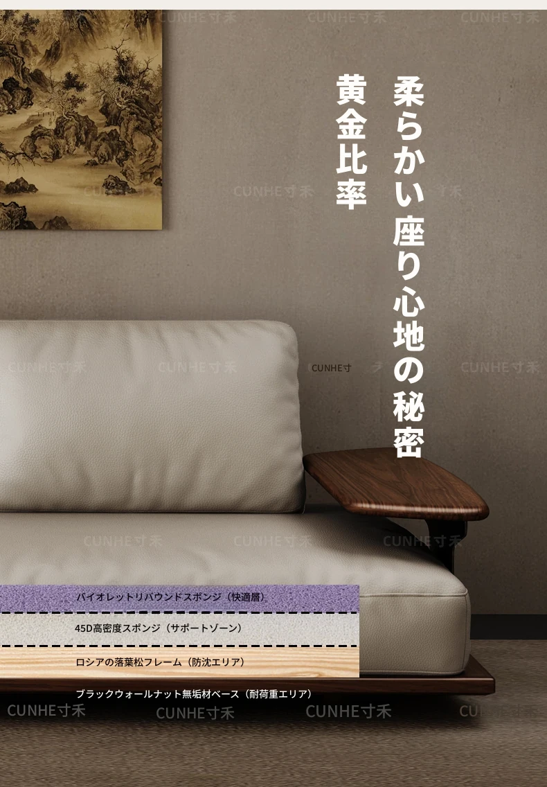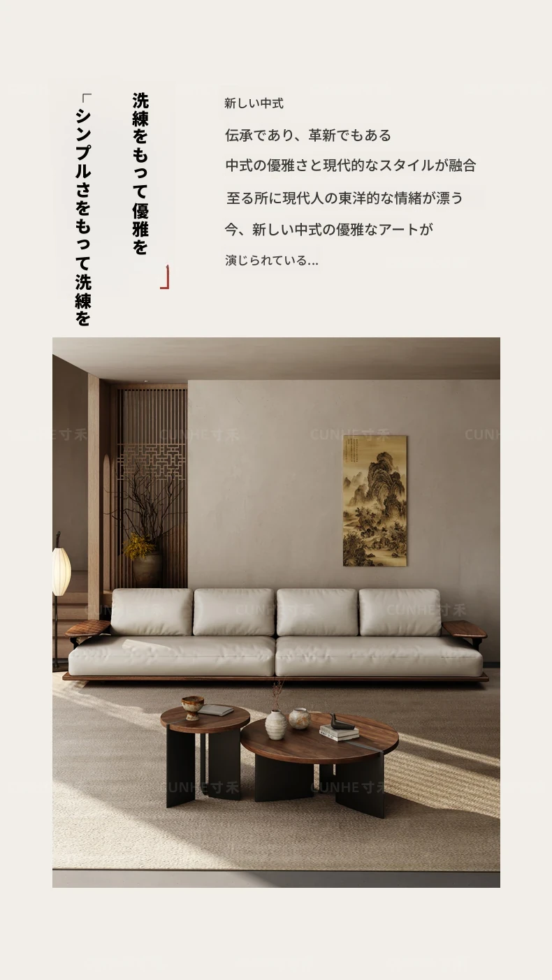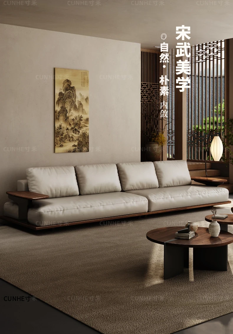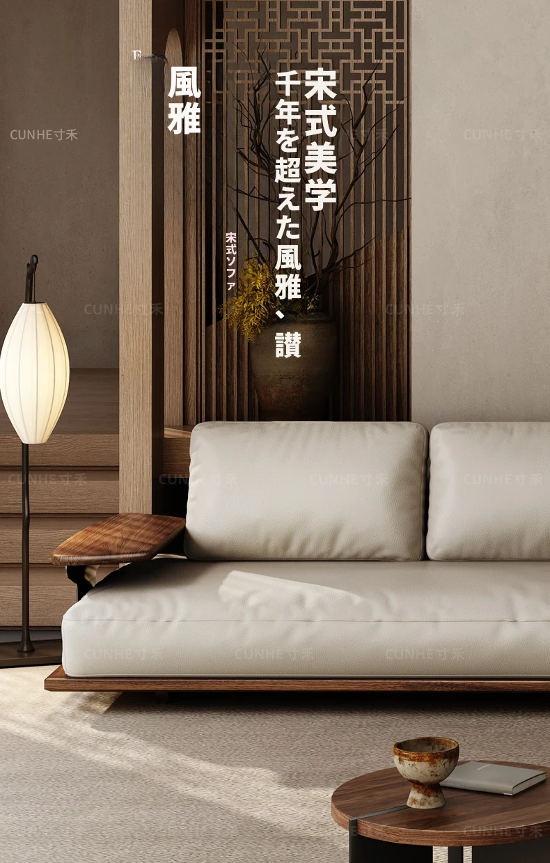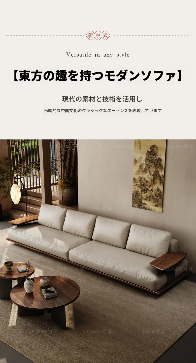 寸禾宋風美学ブラックウォルナット本革無垢材ソファー 新中式リビング 2025年新作!高級感溢れるデザインで、心地よいひとときをお届けします。