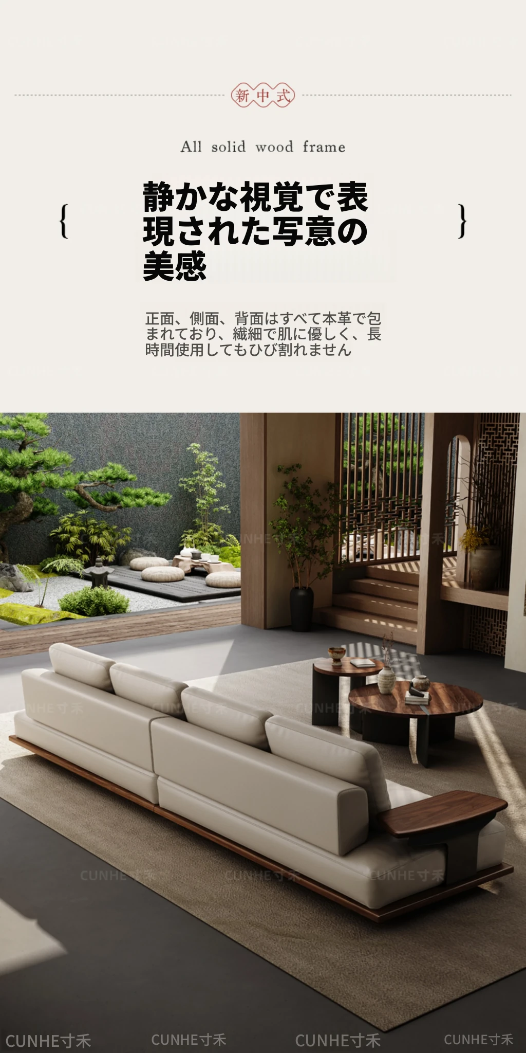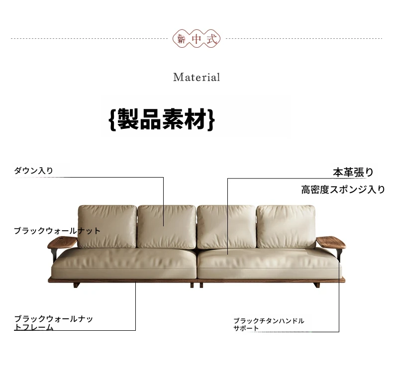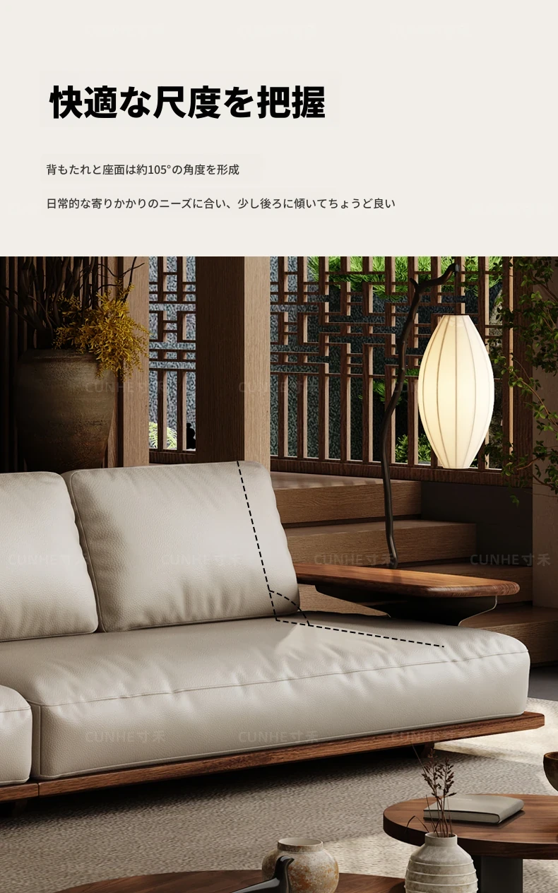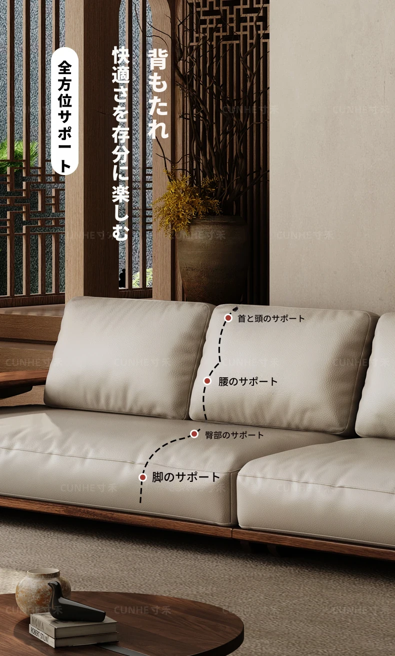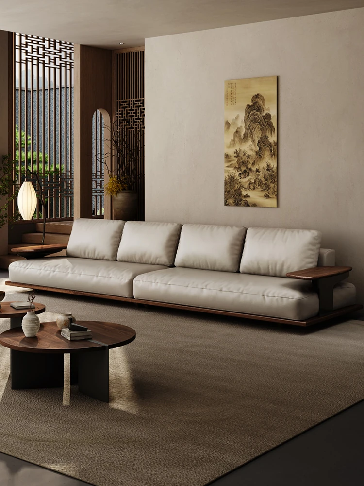 寸禾宋風美学ブラックウォルナット本革無垢材ソファー 新中式リビング 2025年新作!高級感溢れるデザインで、心地よいひとときをお届けします。