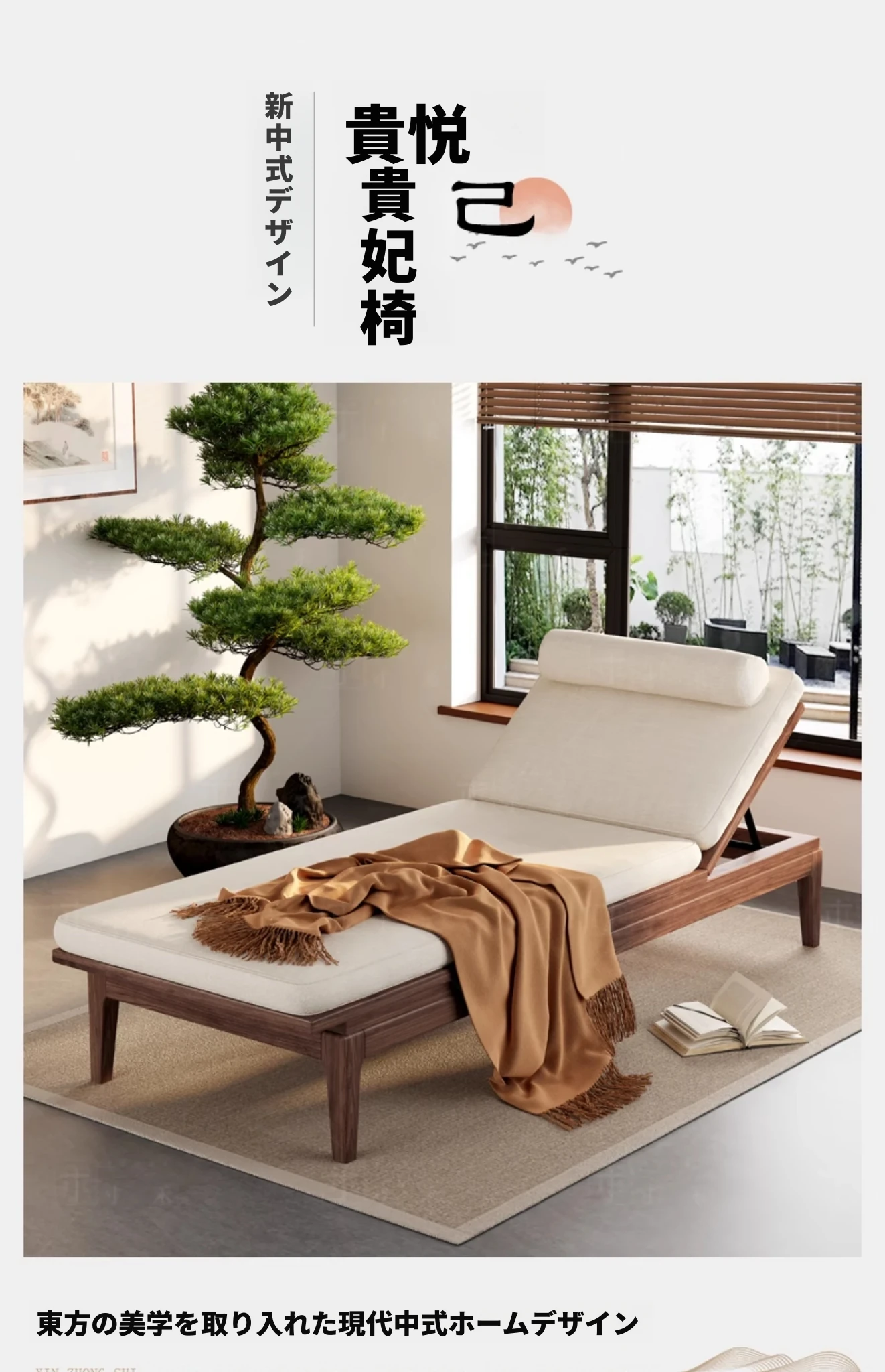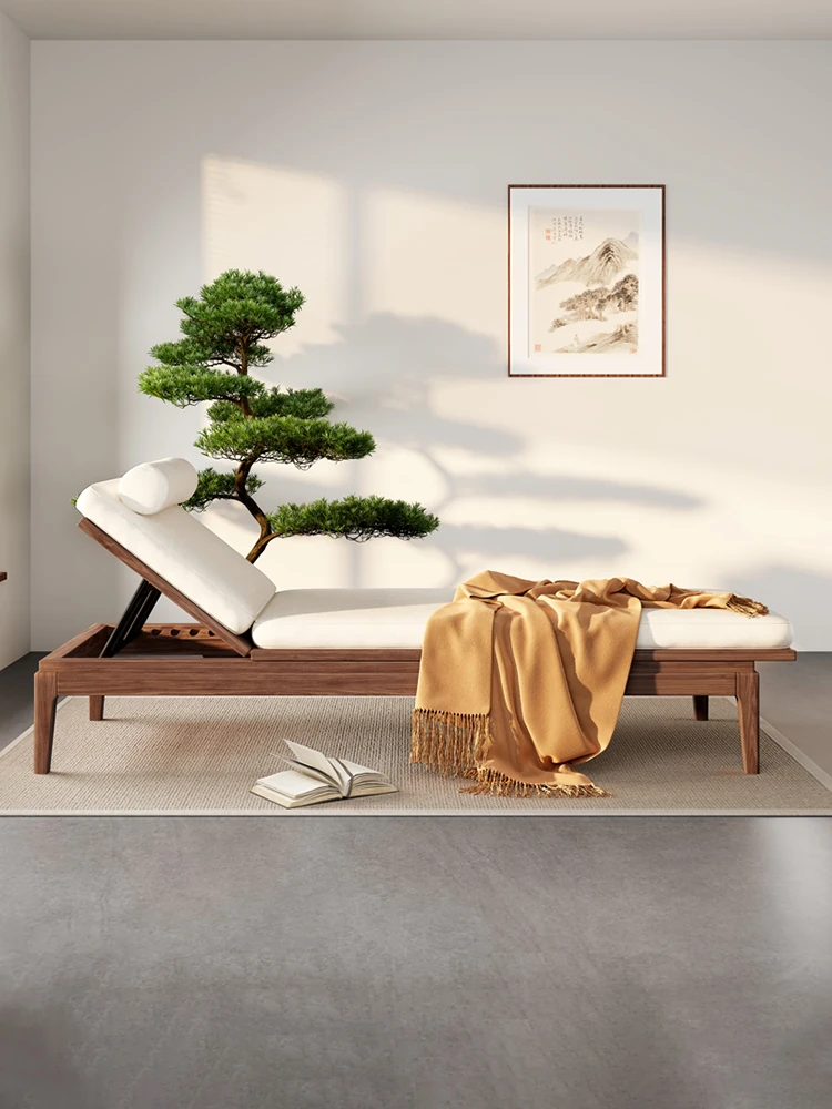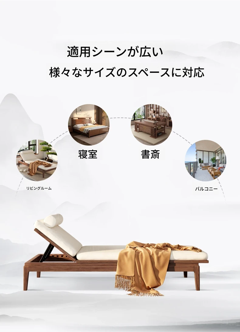 寸禾宋風美学 南米クルミ材 新中式 折りたたみ式貴妃ソファベッド リビングルーム用 安らぎのラウンジチェア