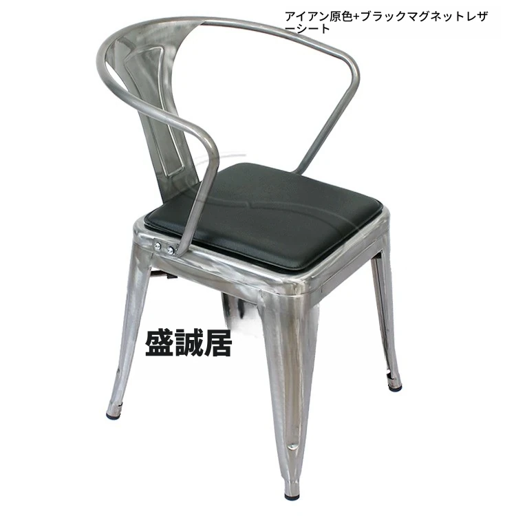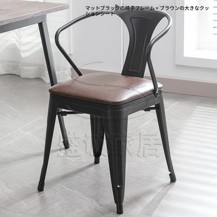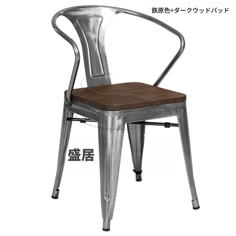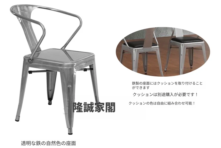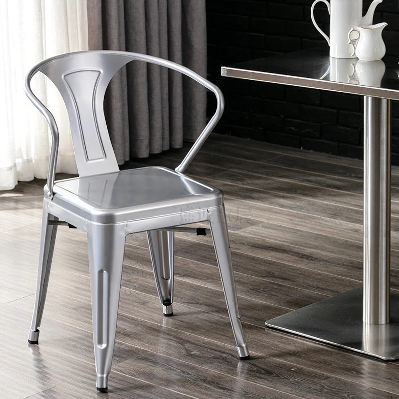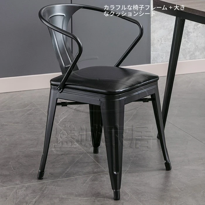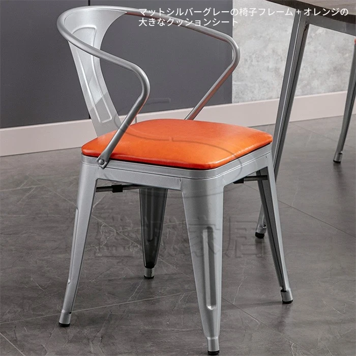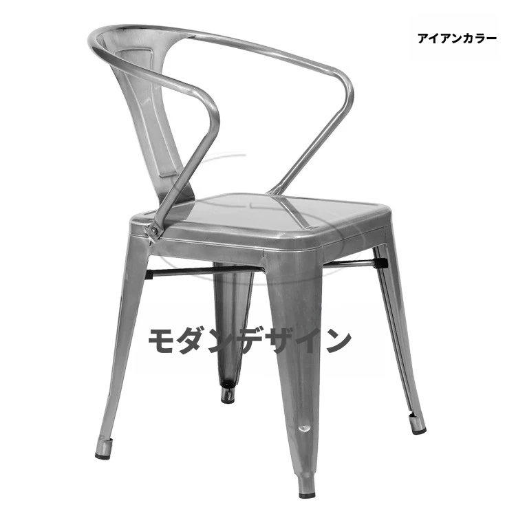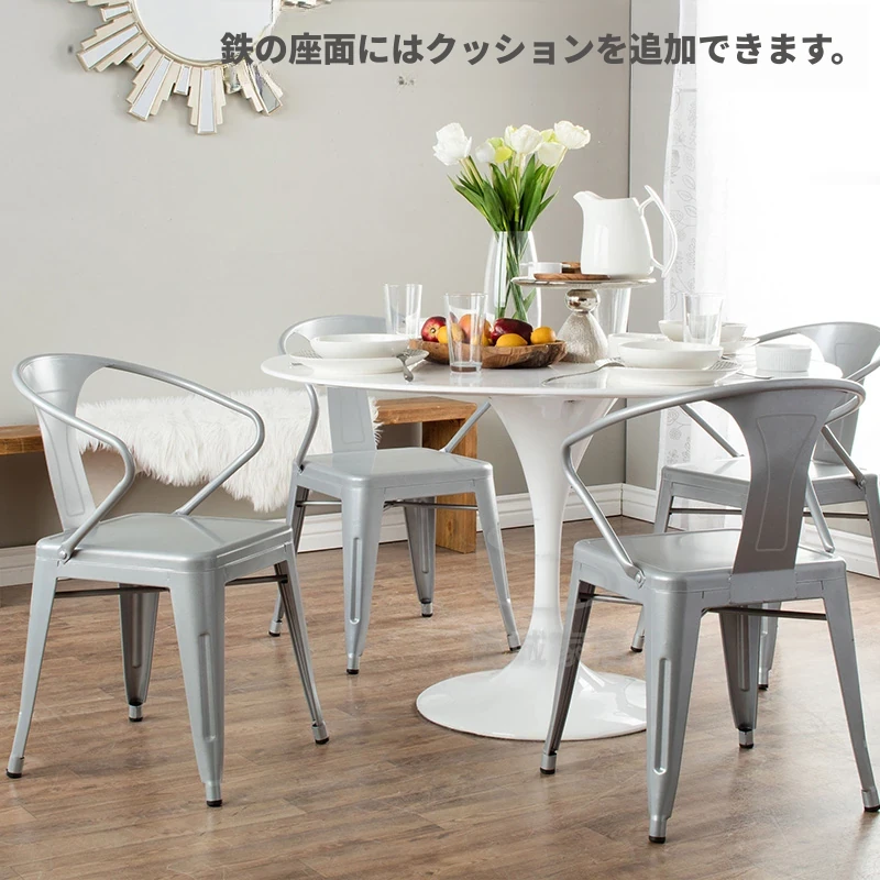 広めの大サイズ!手すり付きアイアン製ダイニングチェア - シンプルなインダストリアルデザイン、メタルバック、ステンレスカラーのダイニングテーブル&チェアセット。おしゃれで快適な食事空間を演出!