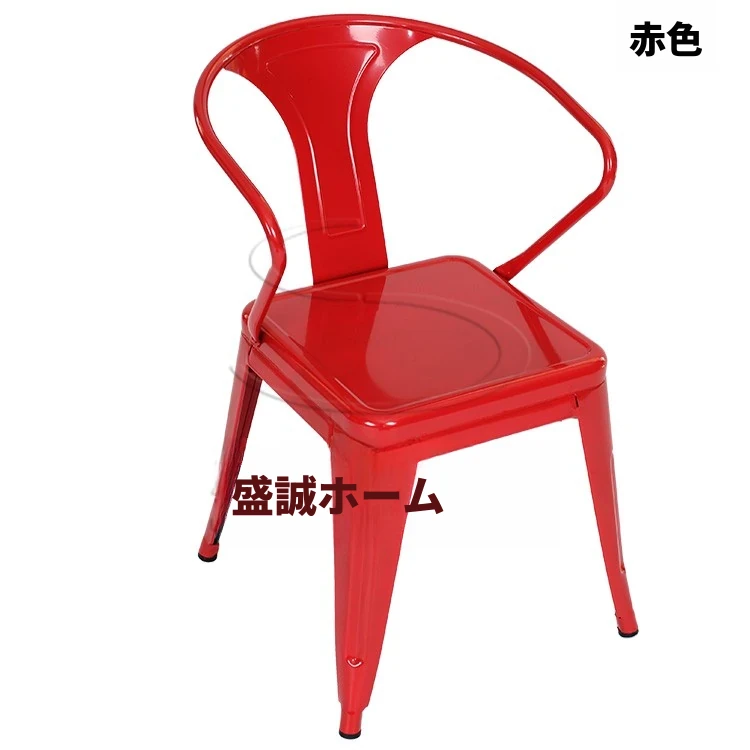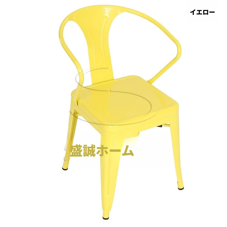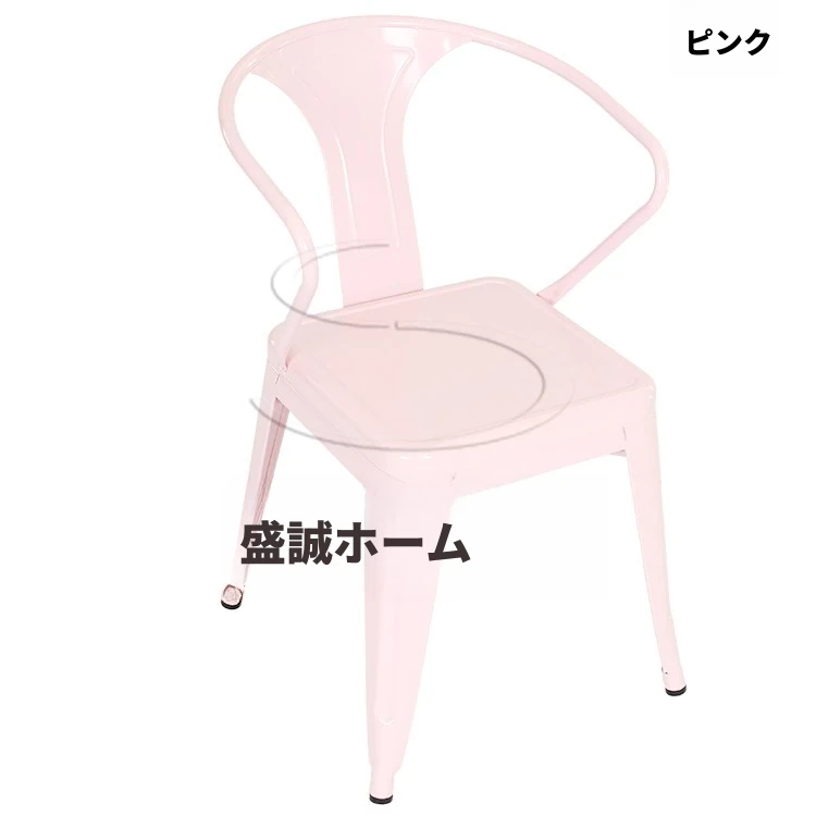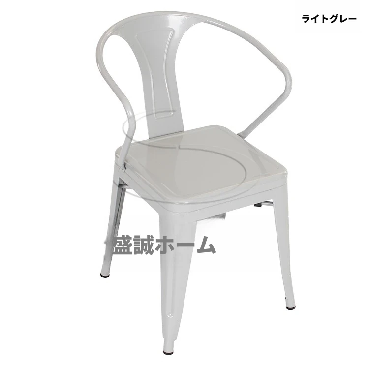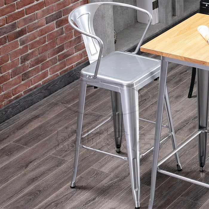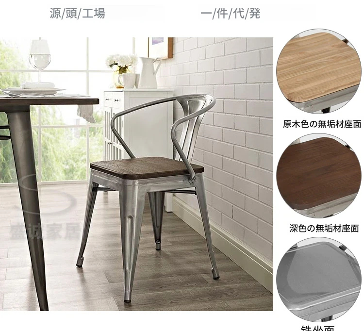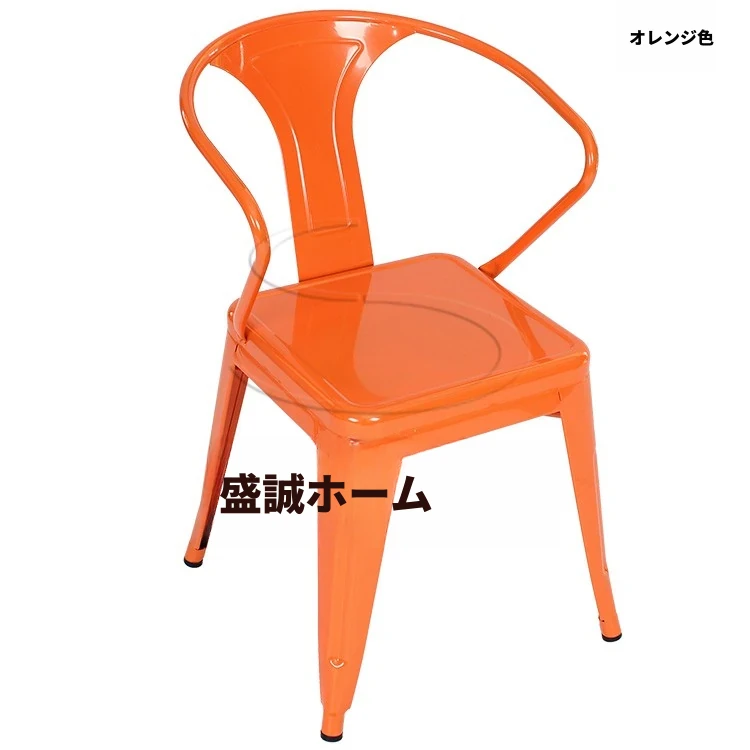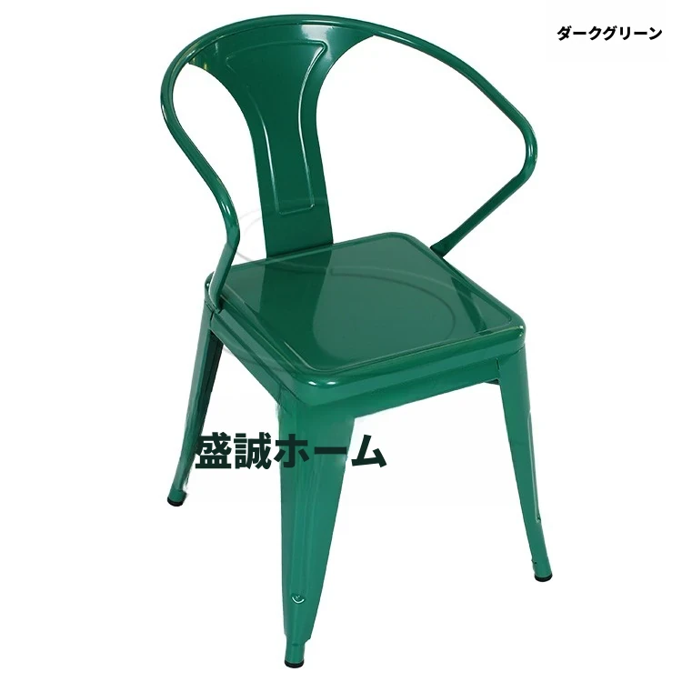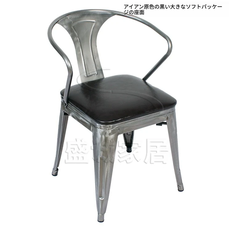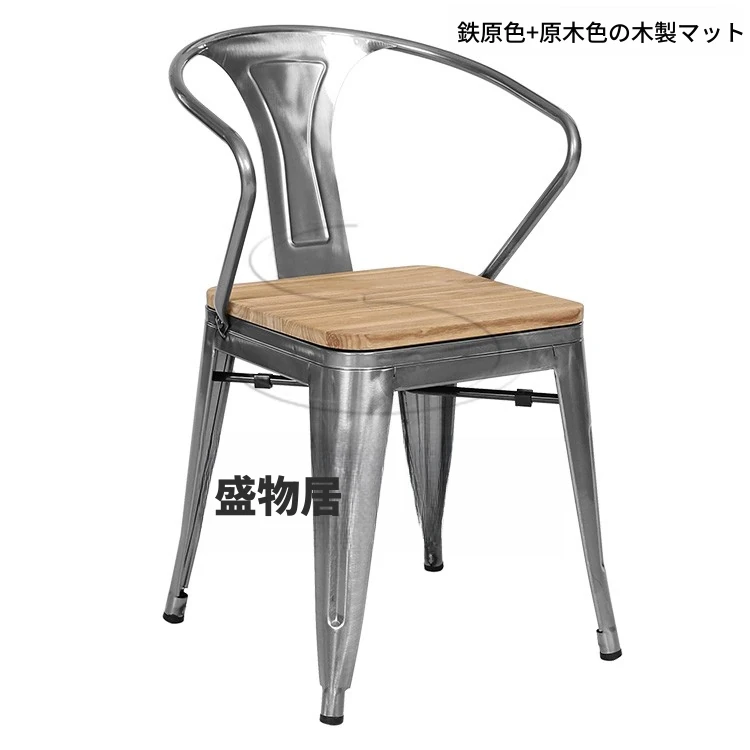 広めの大サイズ!手すり付きアイアン製ダイニングチェア - シンプルなインダストリアルデザイン、メタルバック、ステンレスカラーのダイニングテーブル&チェアセット。おしゃれで快適な食事空間を演出!
