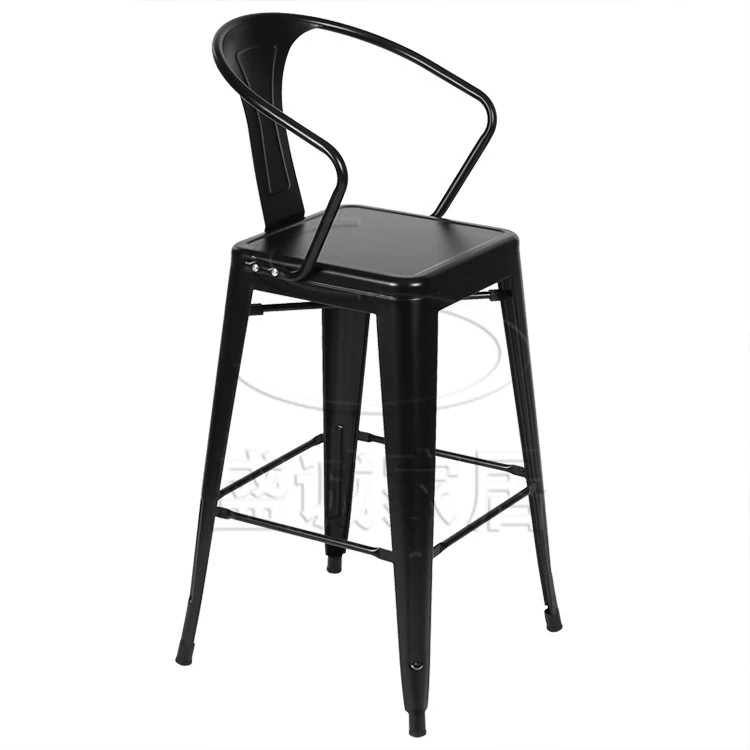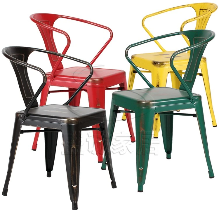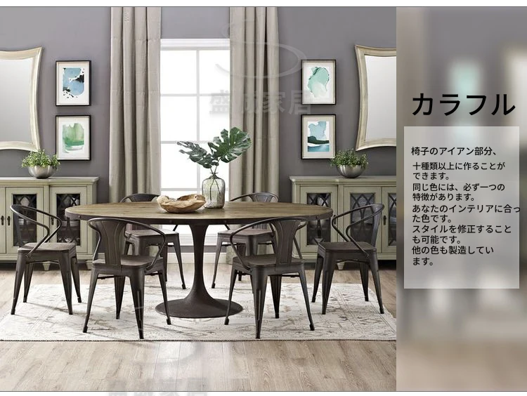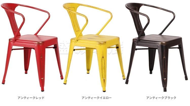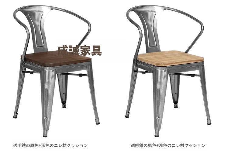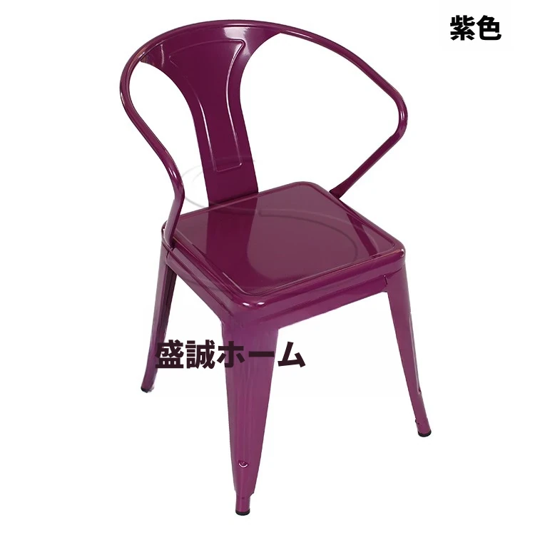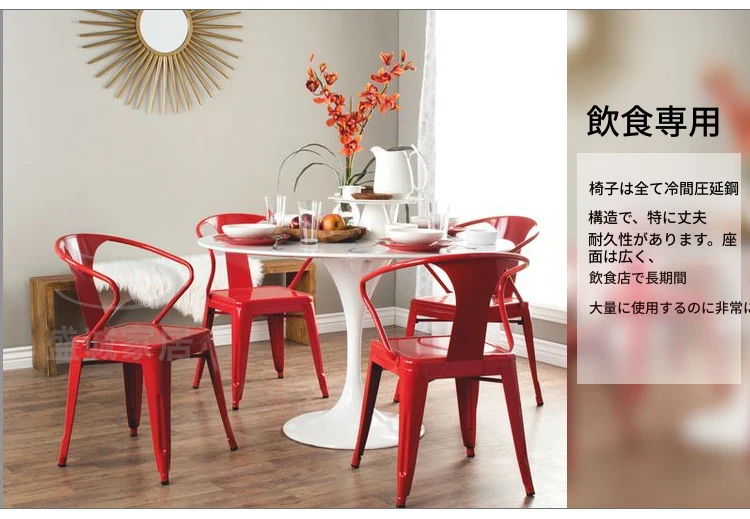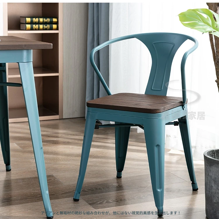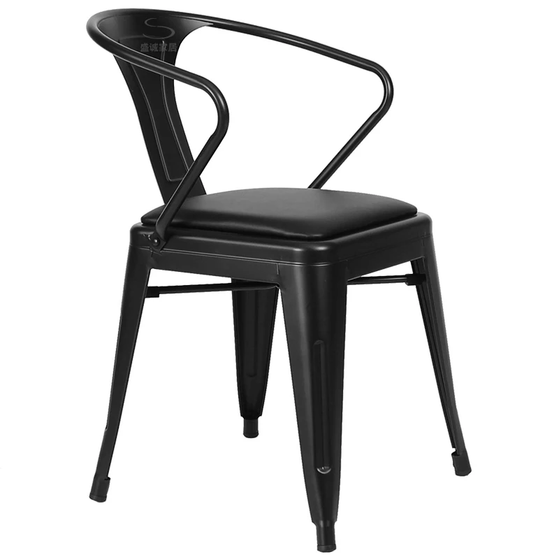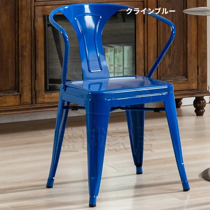 広めの大サイズ!手すり付きアイアン製ダイニングチェア - シンプルなインダストリアルデザイン、メタルバック、ステンレスカラーのダイニングテーブル&チェアセット。おしゃれで快適な食事空間を演出!