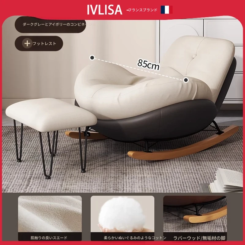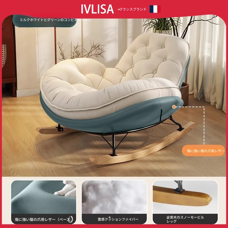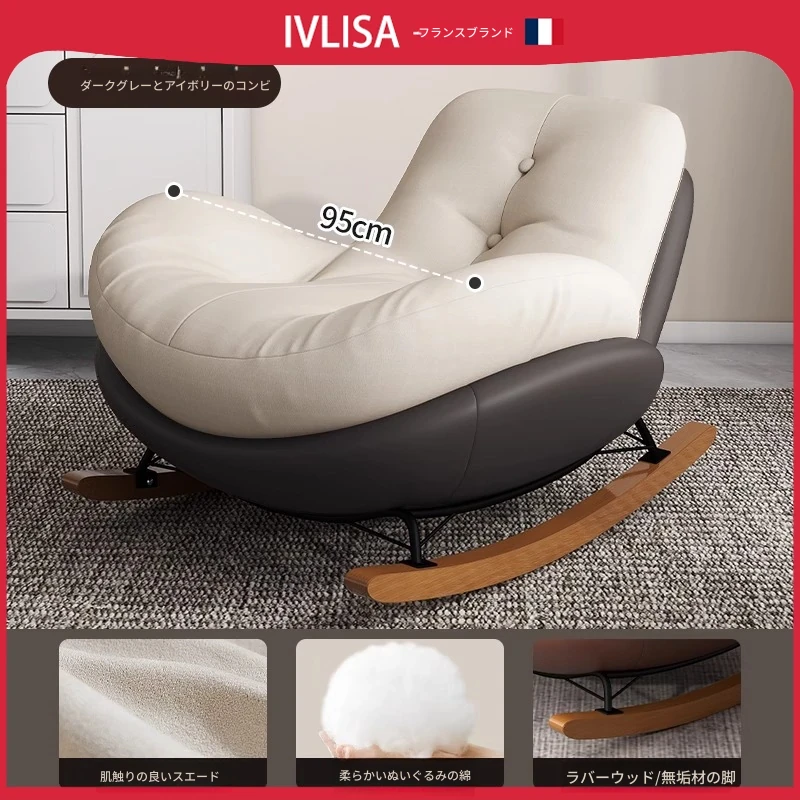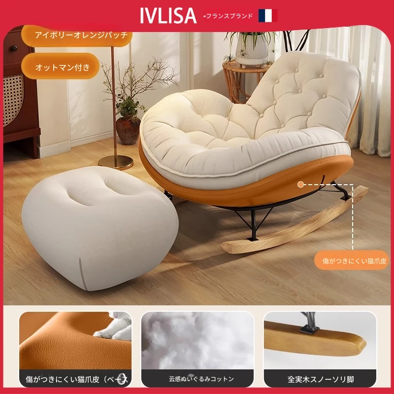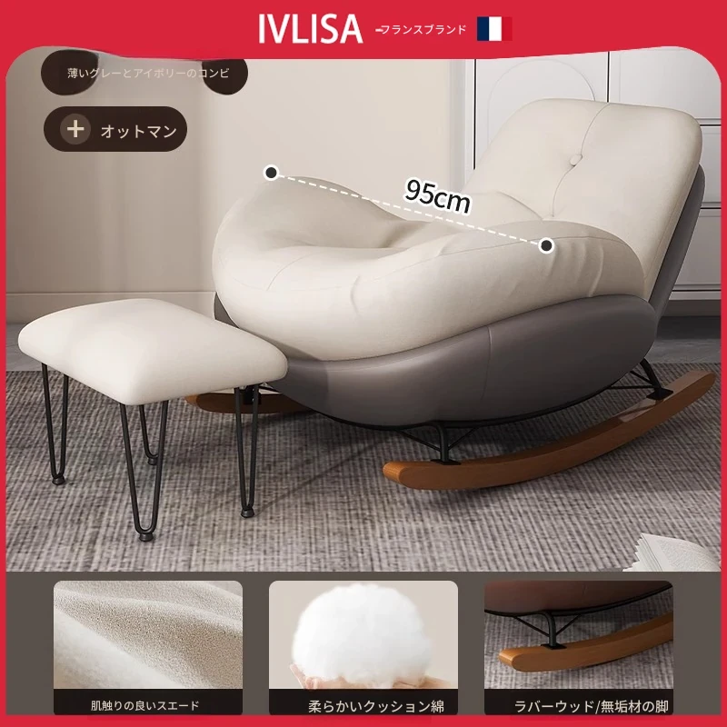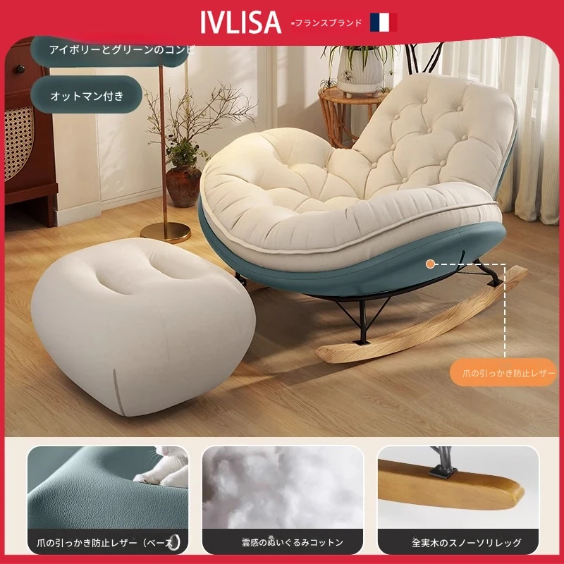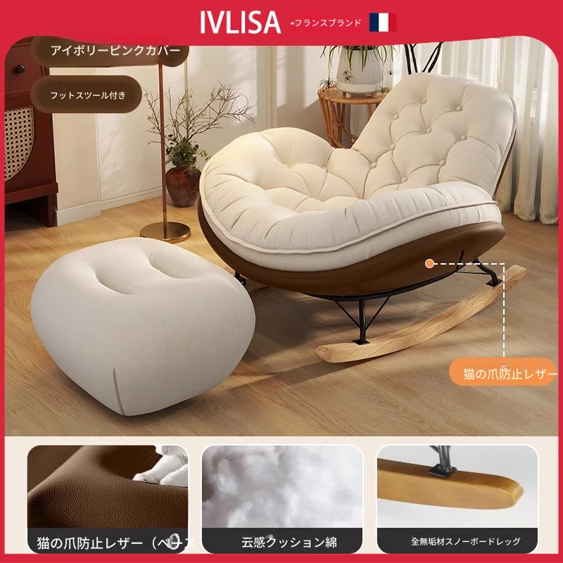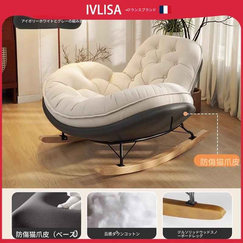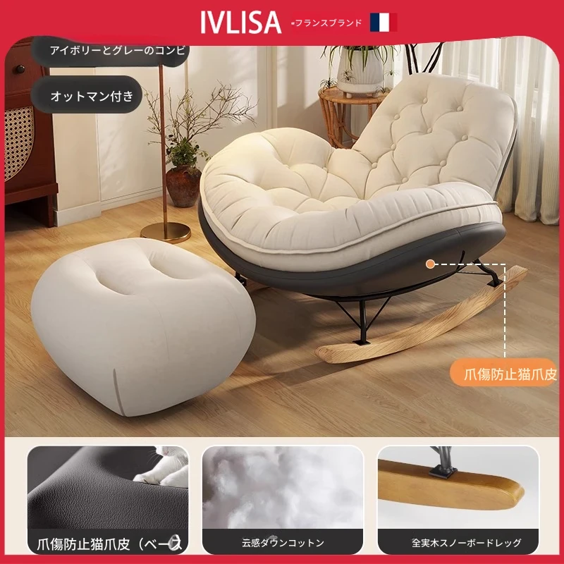 フランスIVLISAエッグシェルロッキングチェア|バルコニーやリビングにぴったりなラグジュアリーなリラックスチェア|おしゃれで快適なラウンジソファ|おうち時間を特別なものに!