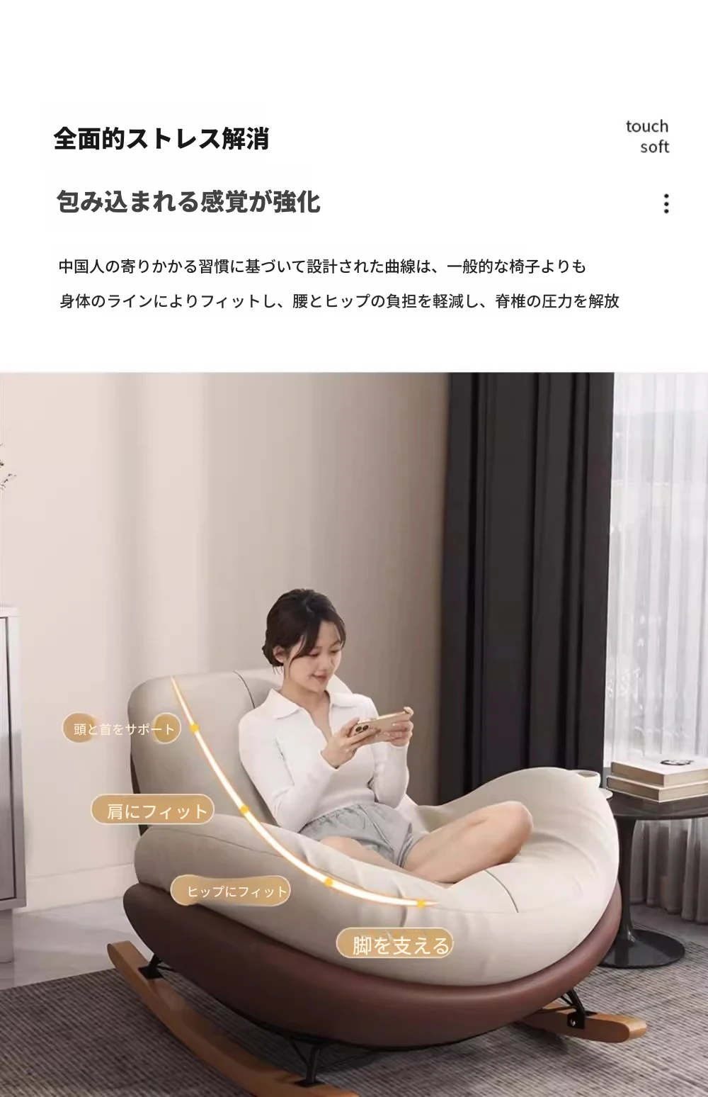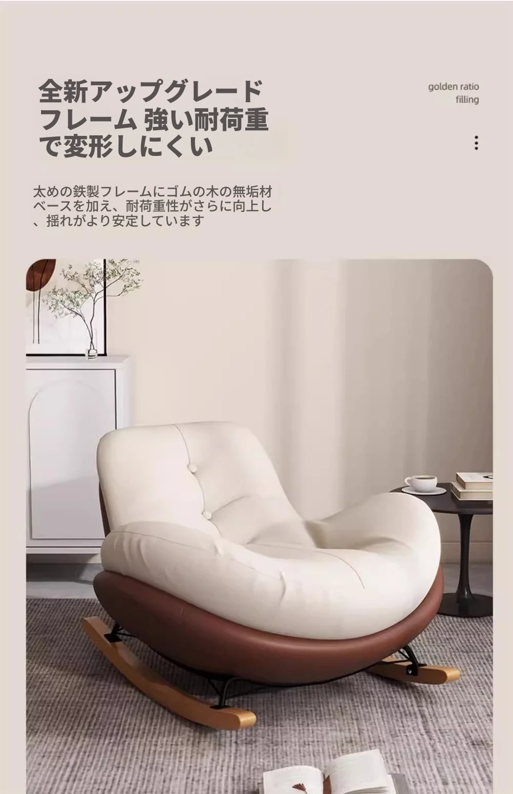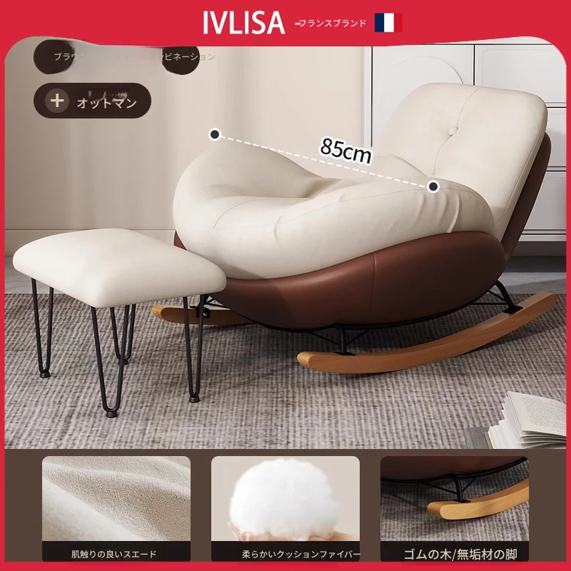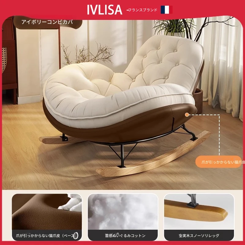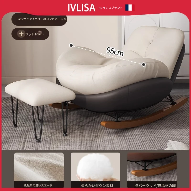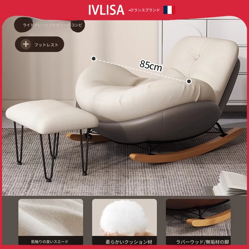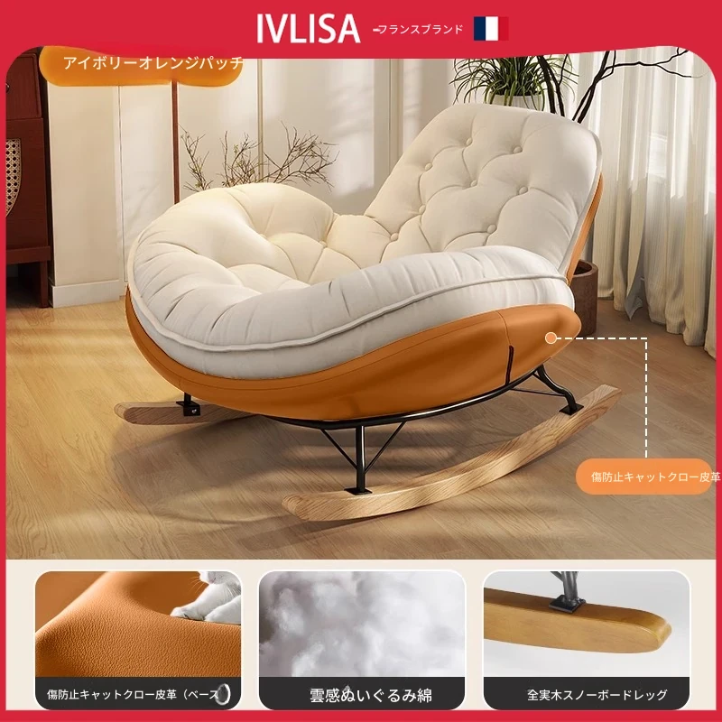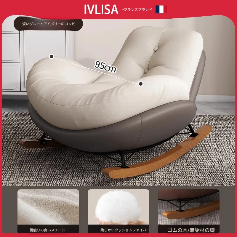 フランスIVLISAエッグシェルロッキングチェア|バルコニーやリビングにぴったりなラグジュアリーなリラックスチェア|おしゃれで快適なラウンジソファ|おうち時間を特別なものに!