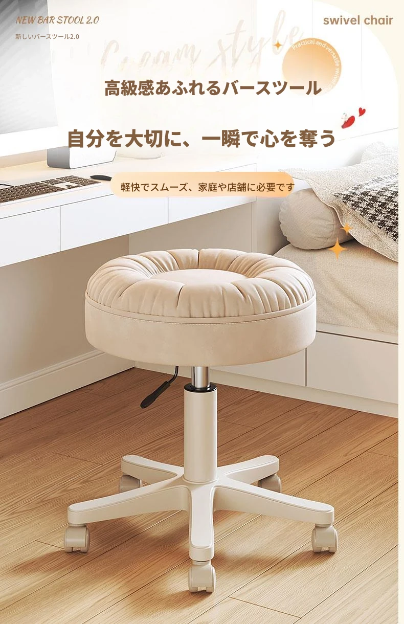 日本精工製の人気メイクアップスツール!新作のシンプルデザイン、女子の寝室にぴったり。コンパクトなサイズで、美容やネイルにも最適な美しい椅子。あなたの特別な空間を演出します!