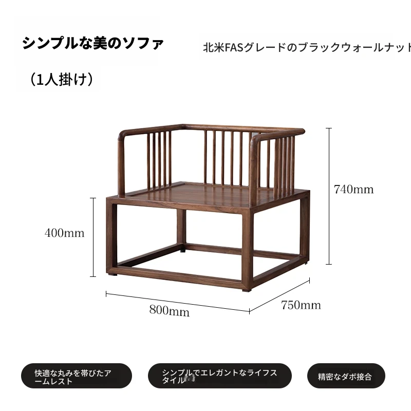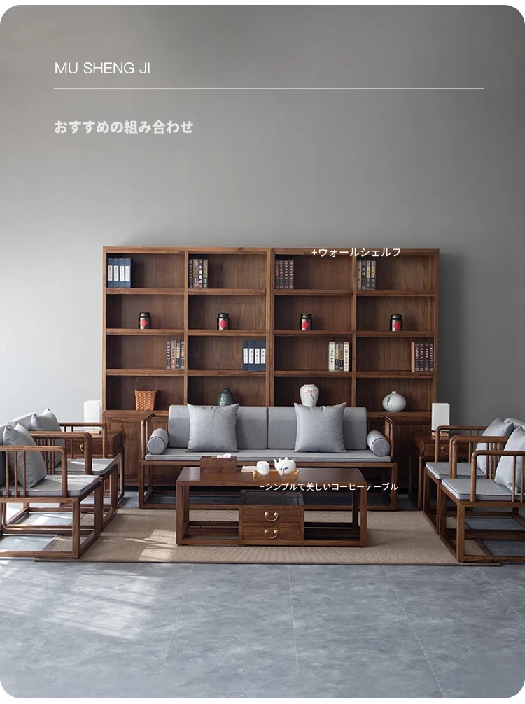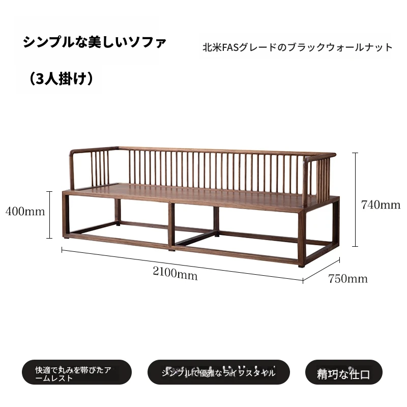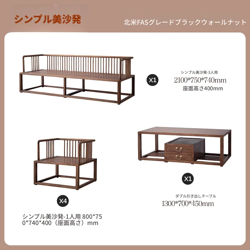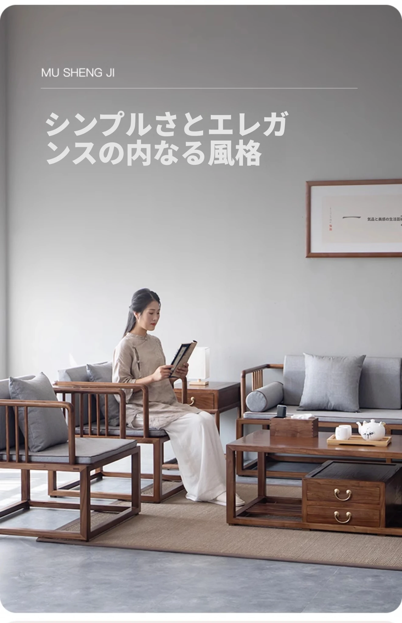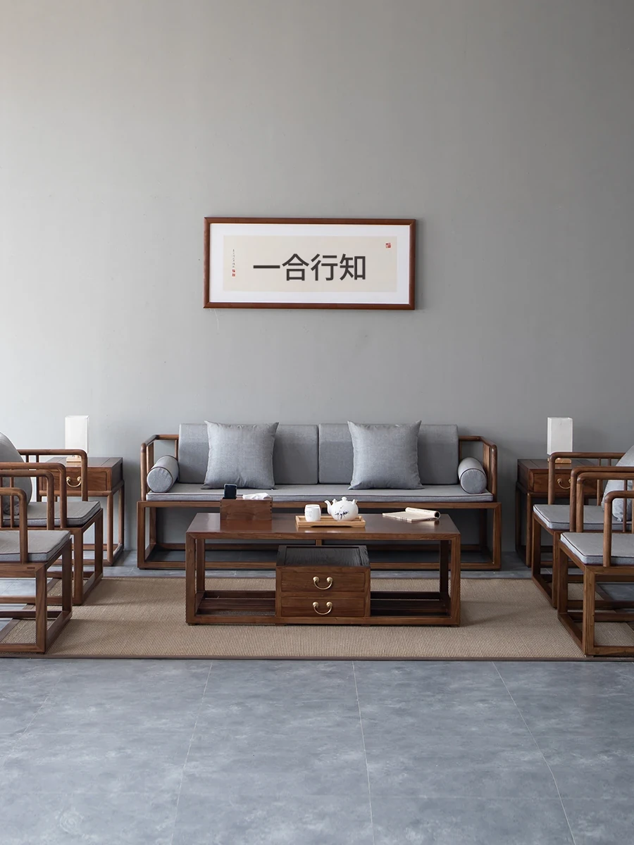 新中式デザインのソファセット - ブラックウォールナットの無垢材使用、モダンでシンプルなリビング向けファブリックの貴妃椅子。おしゃれで快適な中華風の家庭用家具!