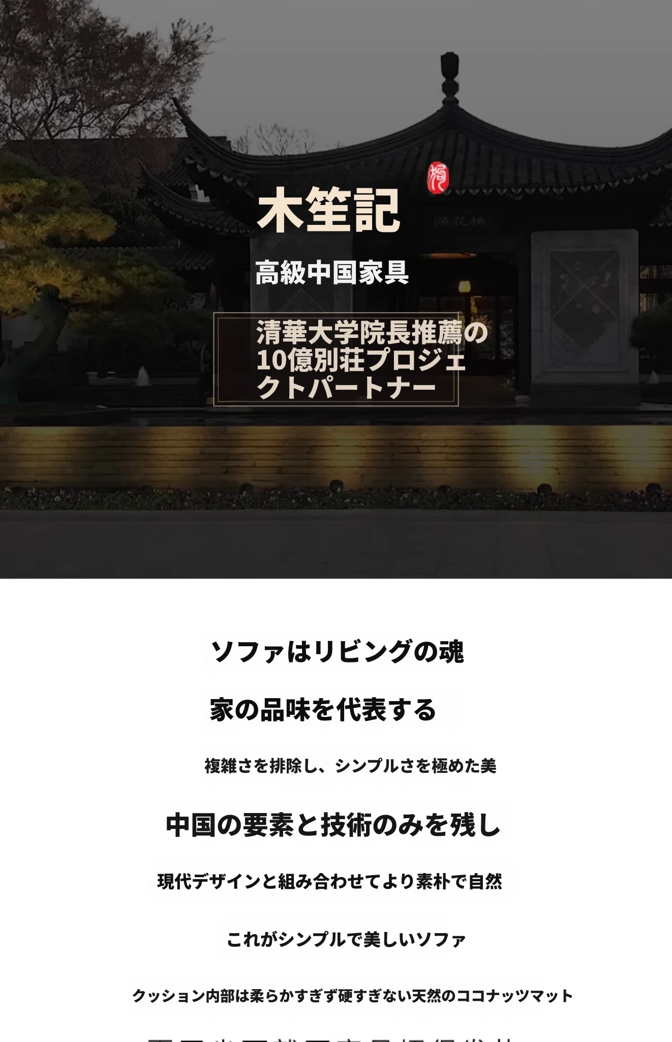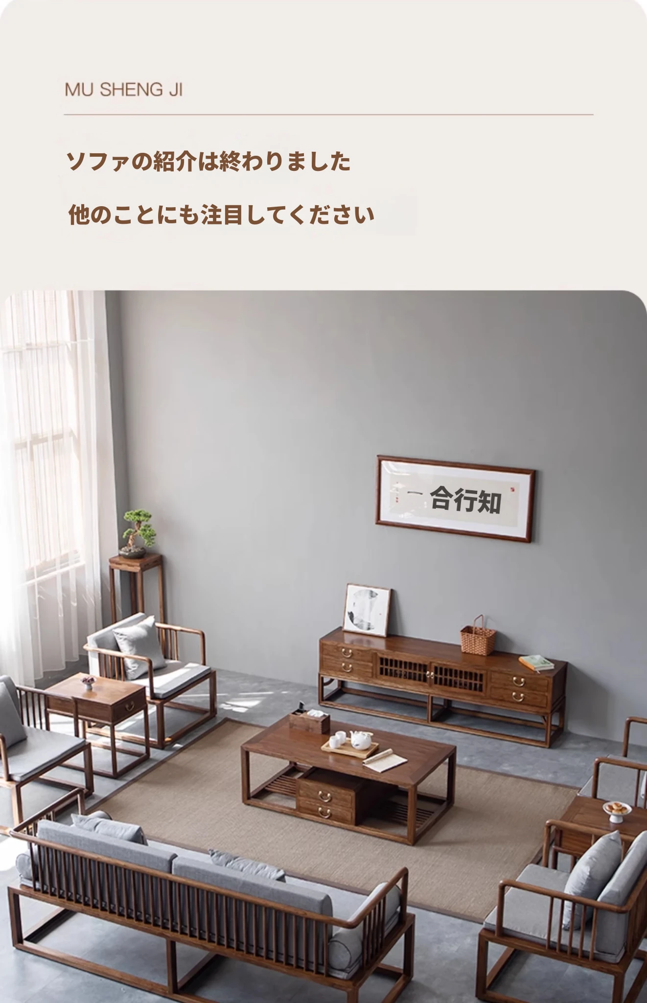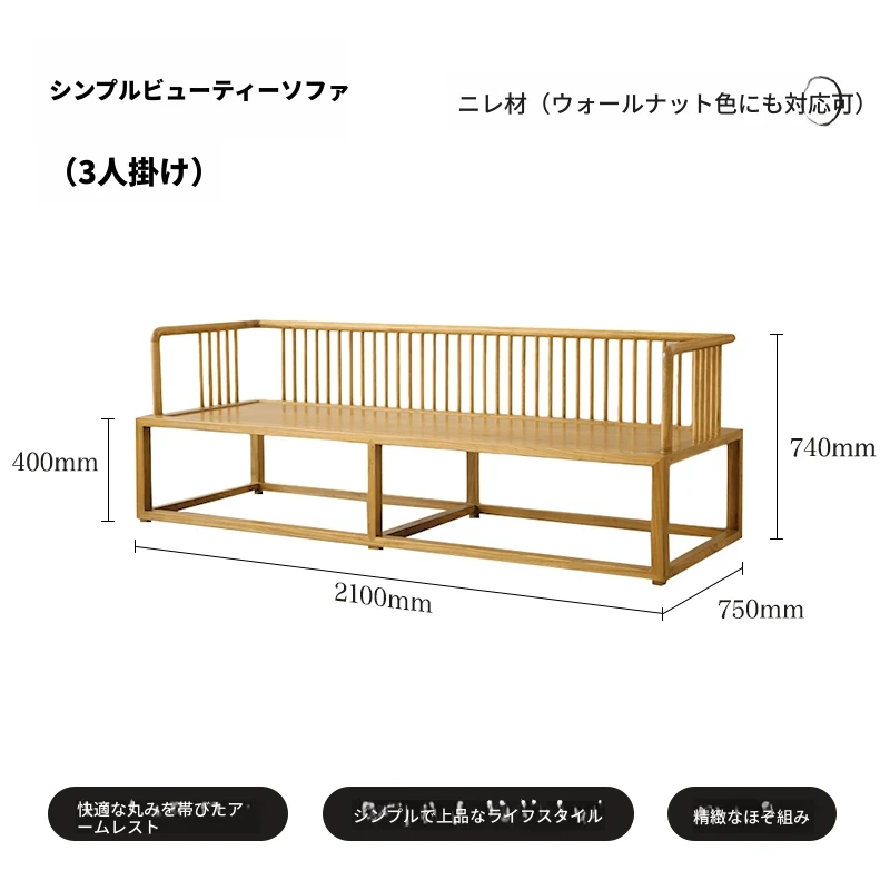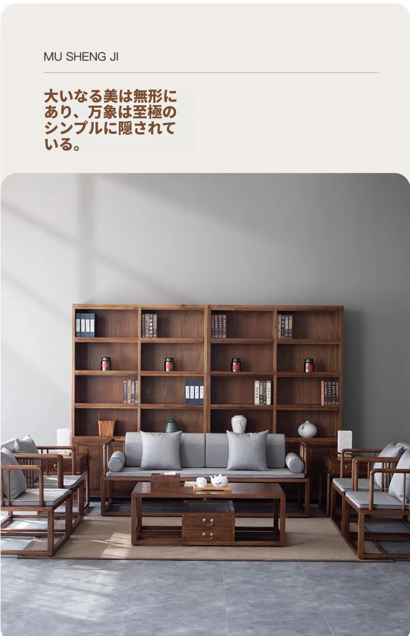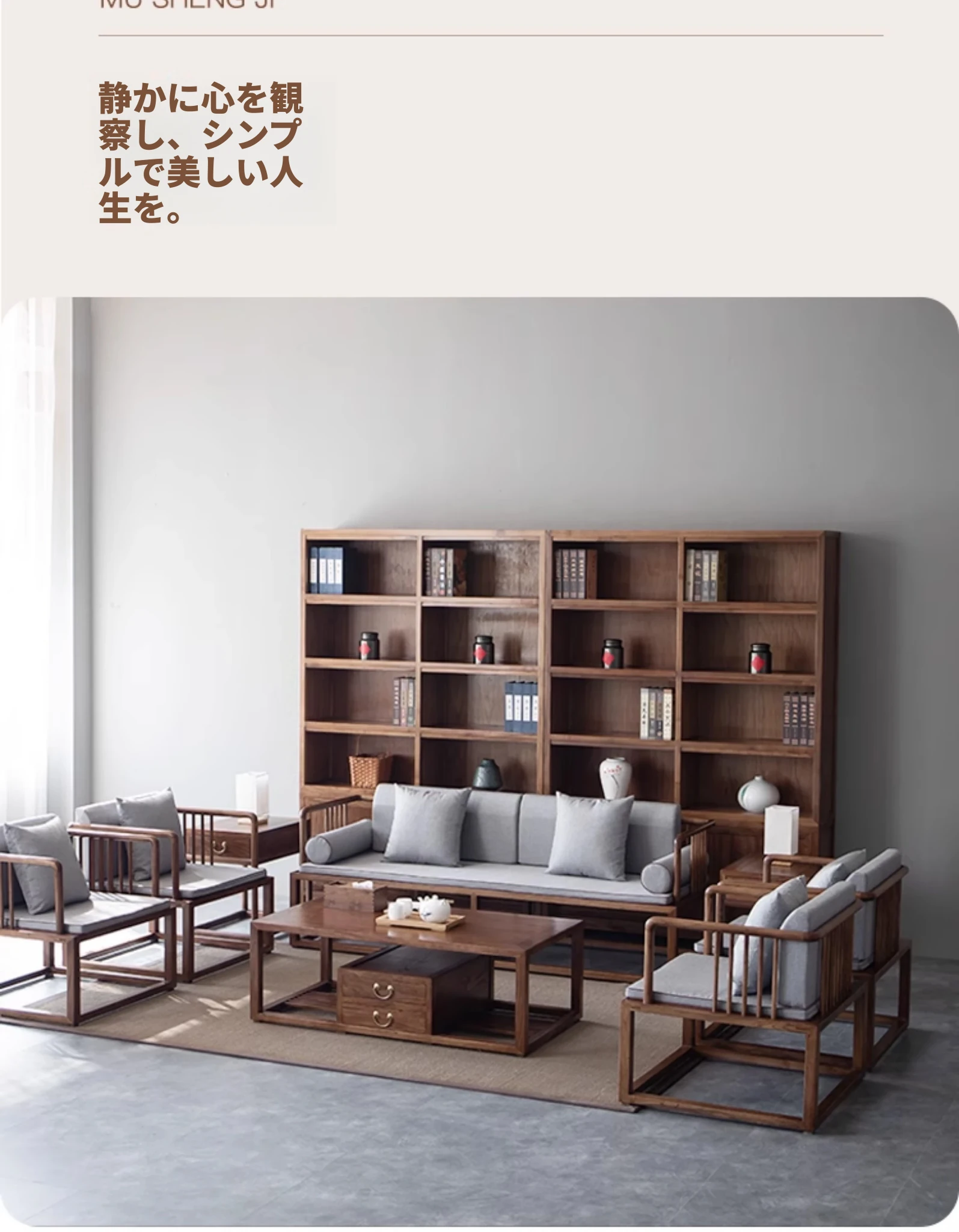 新中式デザインのソファセット - ブラックウォールナットの無垢材使用、モダンでシンプルなリビング向けファブリックの貴妃椅子。おしゃれで快適な中華風の家庭用家具!