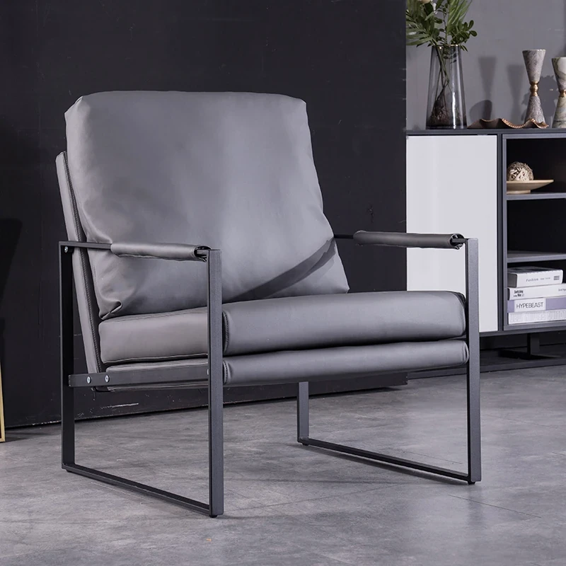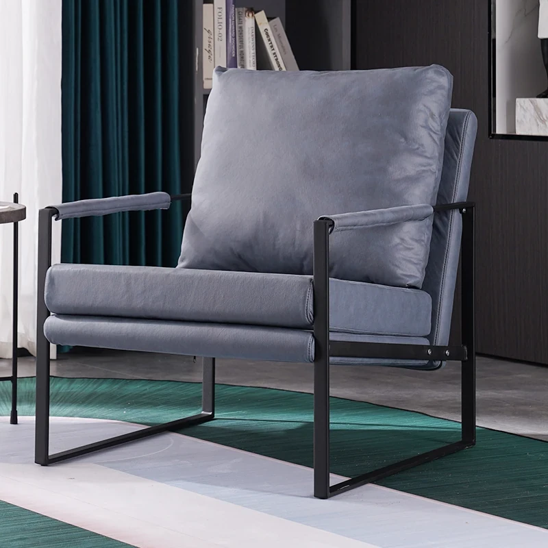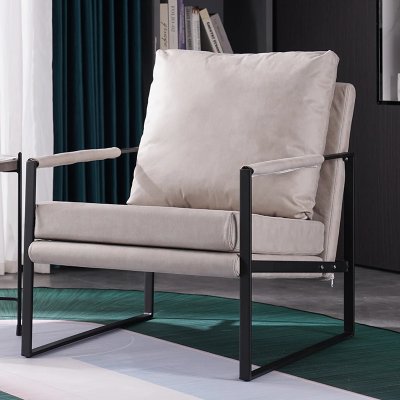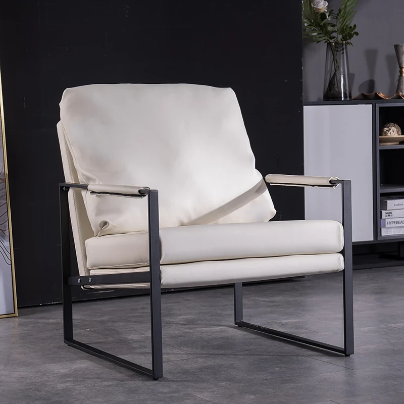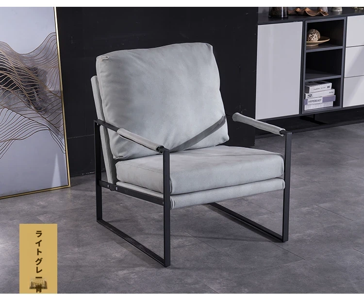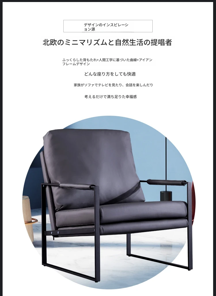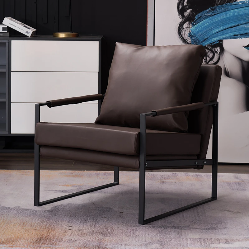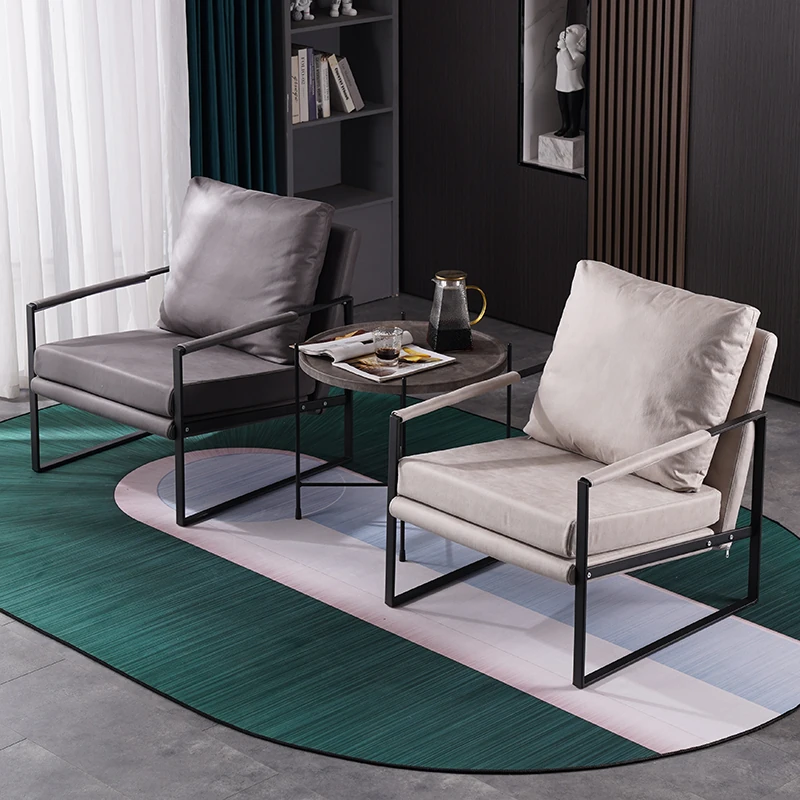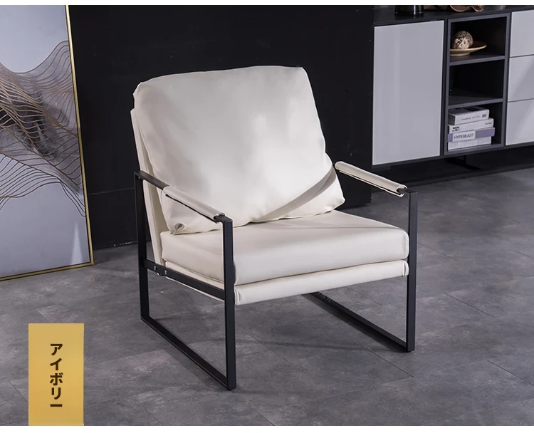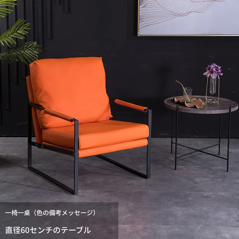 北欧デザインのアイアンソファチェア - モダンでシンプルなカフェスタイル、リビングやバルコニーにぴったりの一人掛けソファ。快適な座り心地で、くつろぎの時間を演出します!