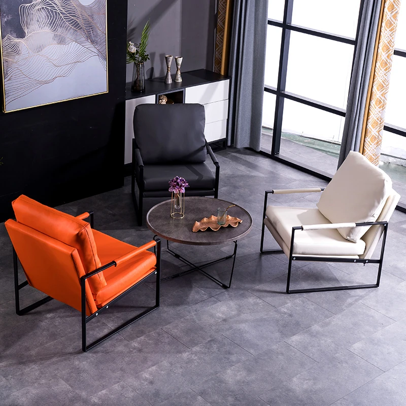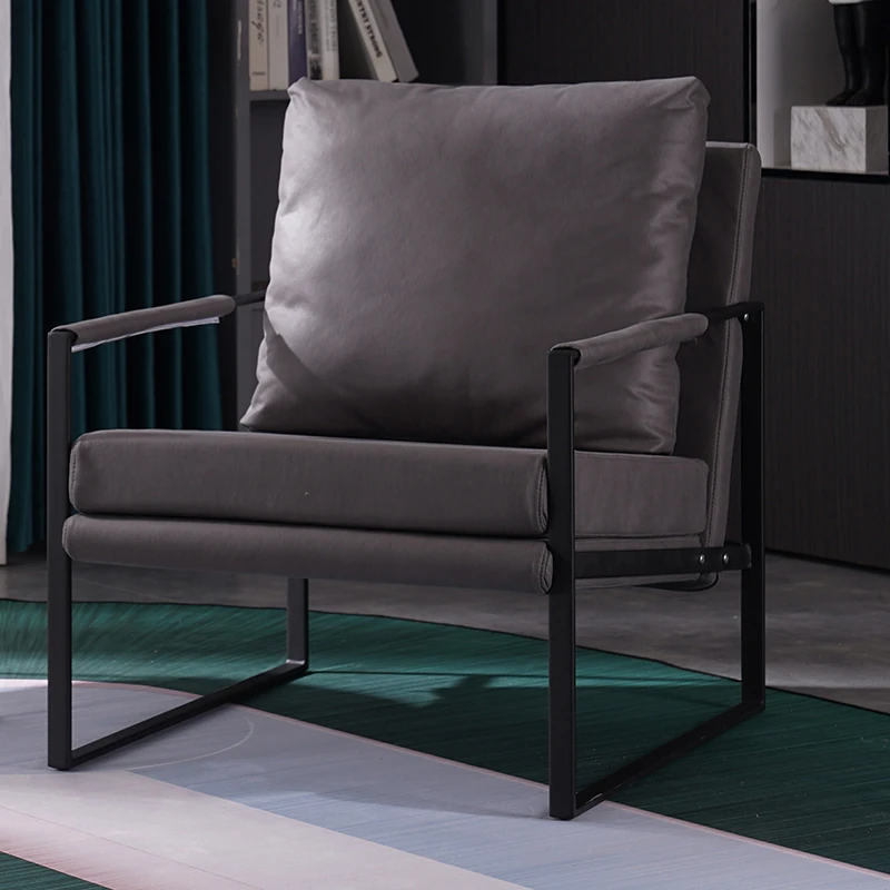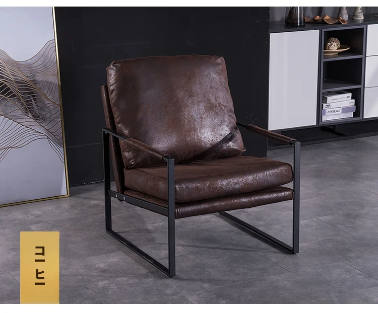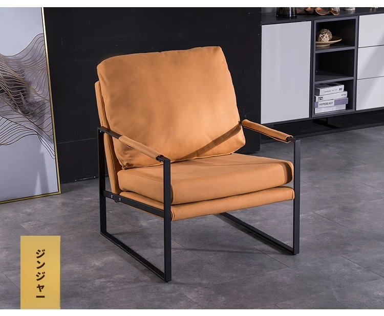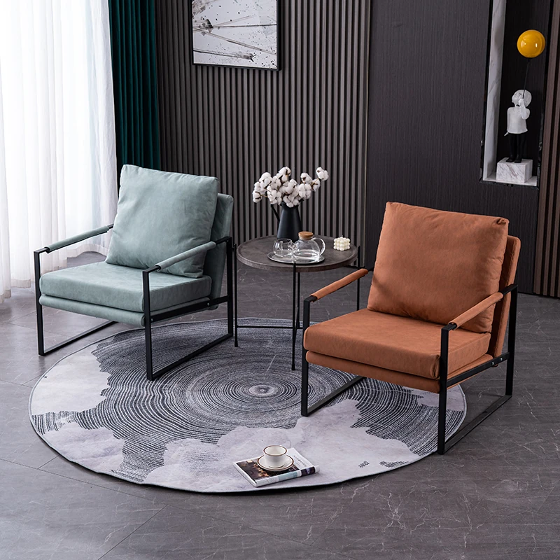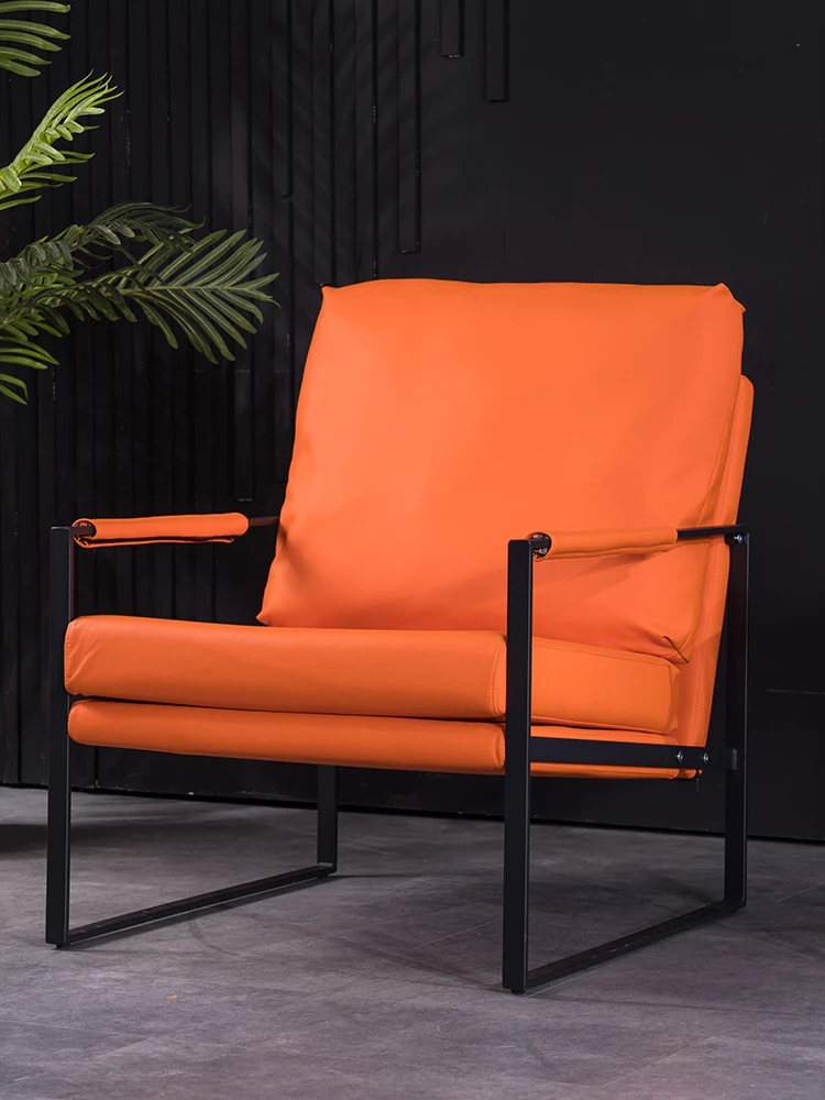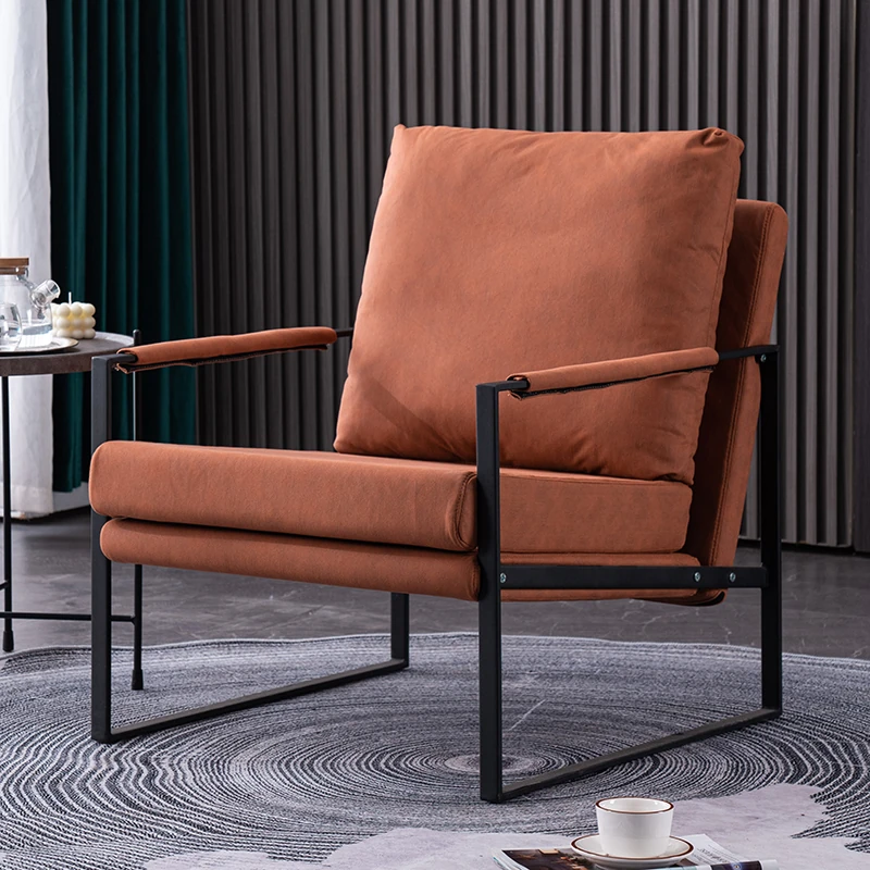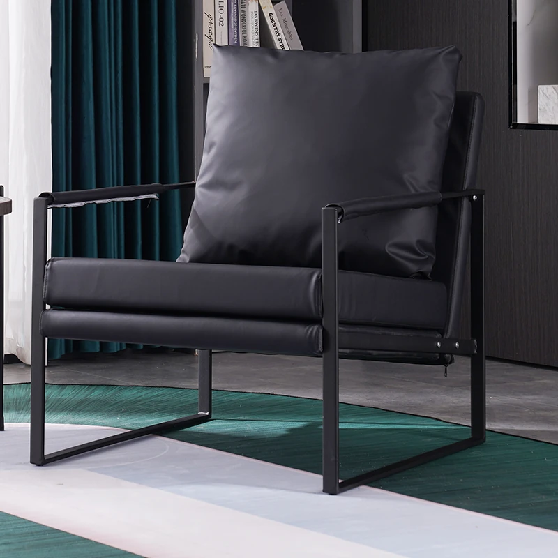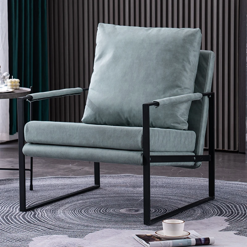 北欧デザインのアイアンソファチェア - モダンでシンプルなカフェスタイル、リビングやバルコニーにぴったりの一人掛けソファ。快適な座り心地で、くつろぎの時間を演出します!