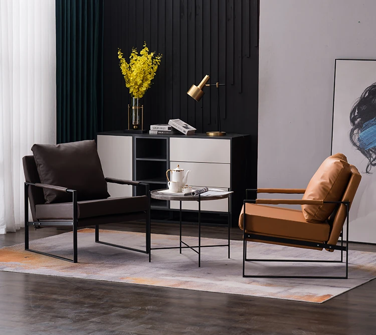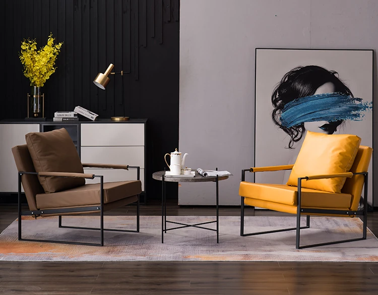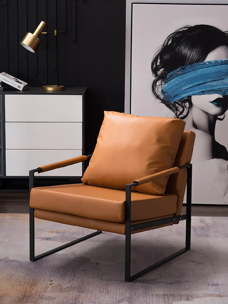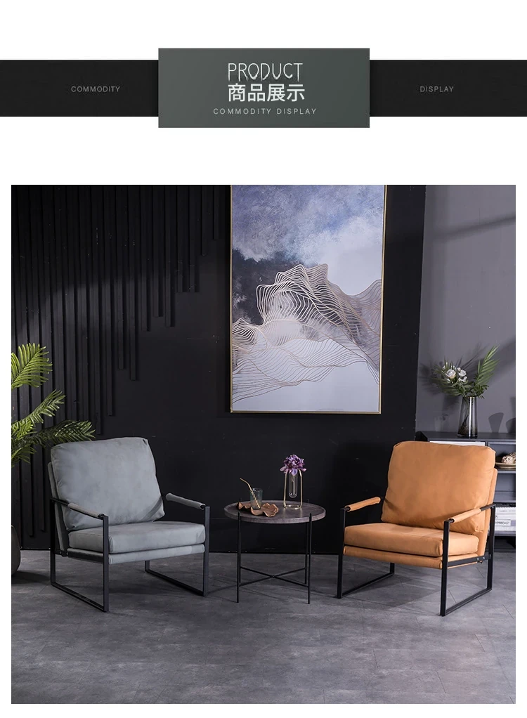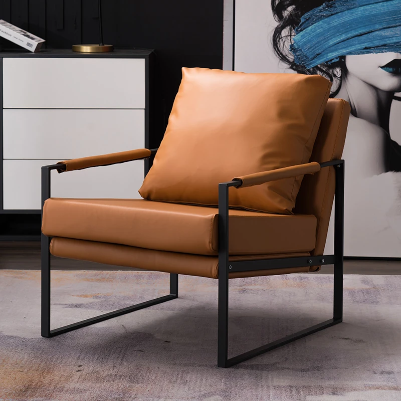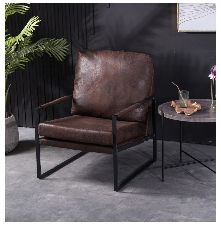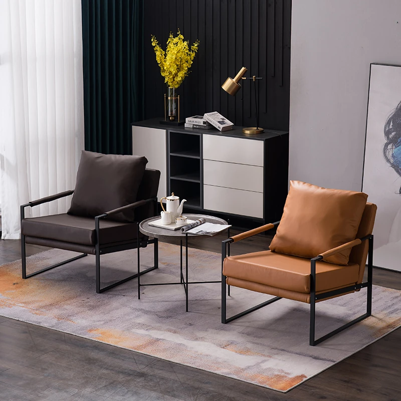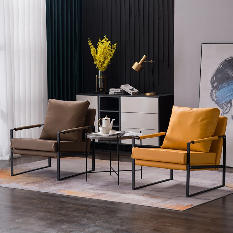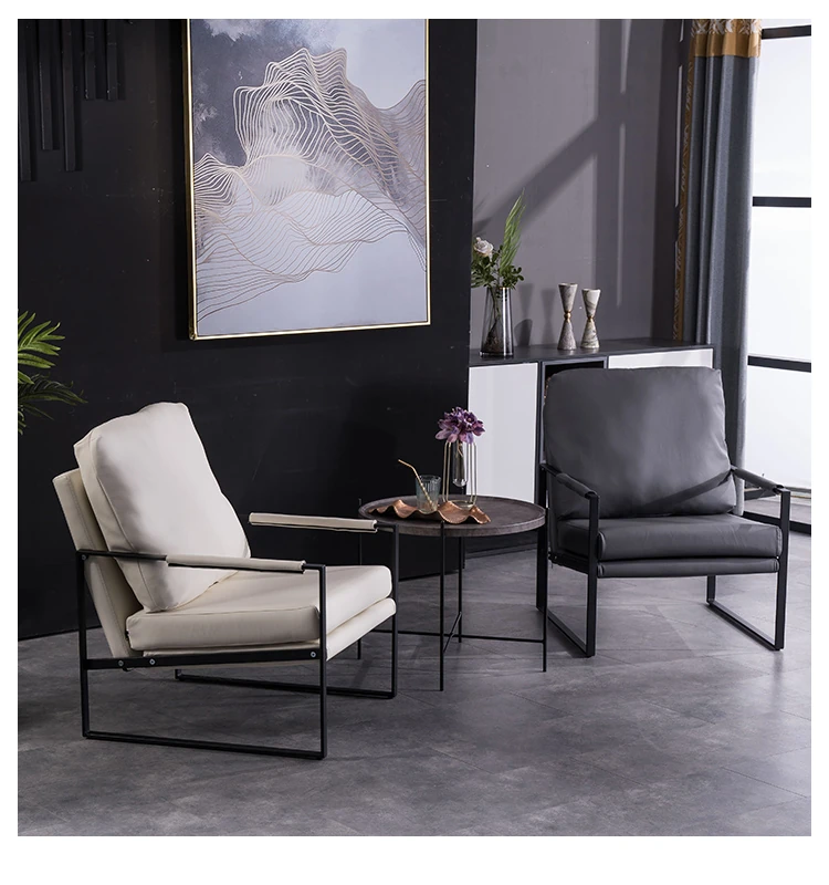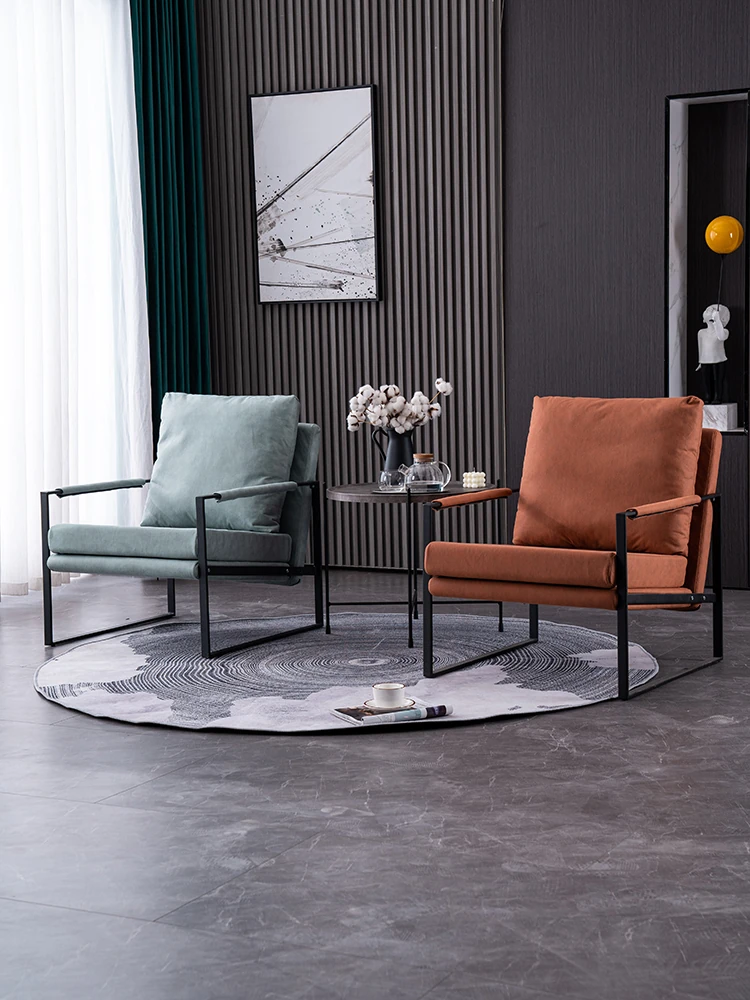 北欧デザインのアイアンソファチェア - モダンでシンプルなカフェスタイル、リビングやバルコニーにぴったりの一人掛けソファ。快適な座り心地で、くつろぎの時間を演出します!