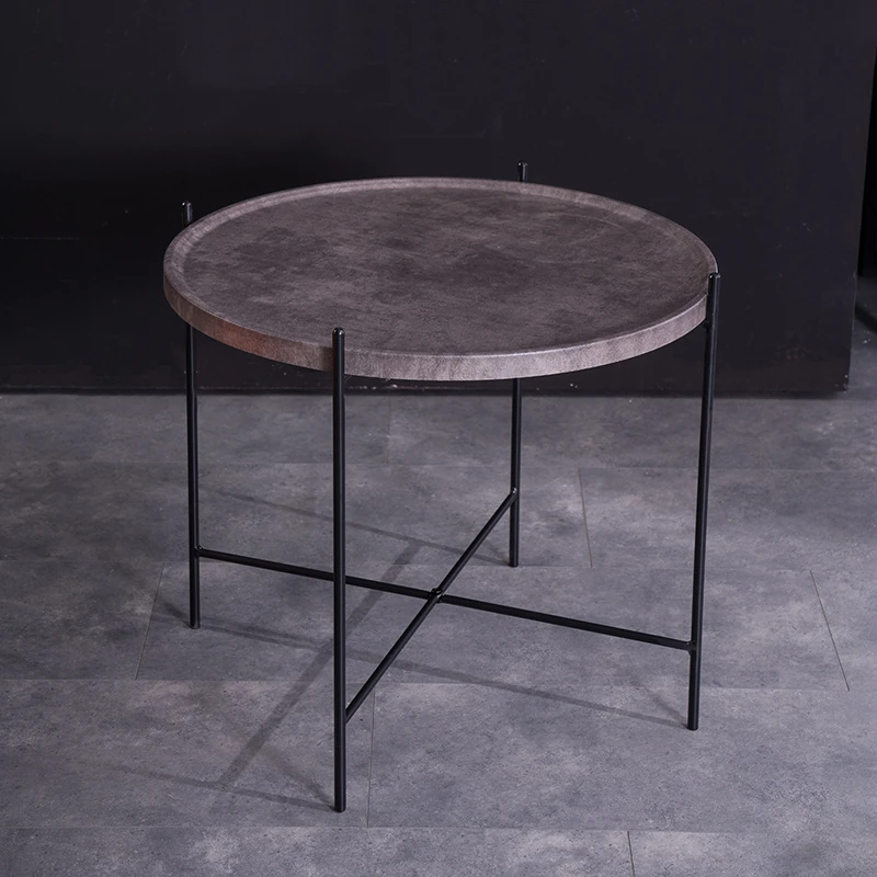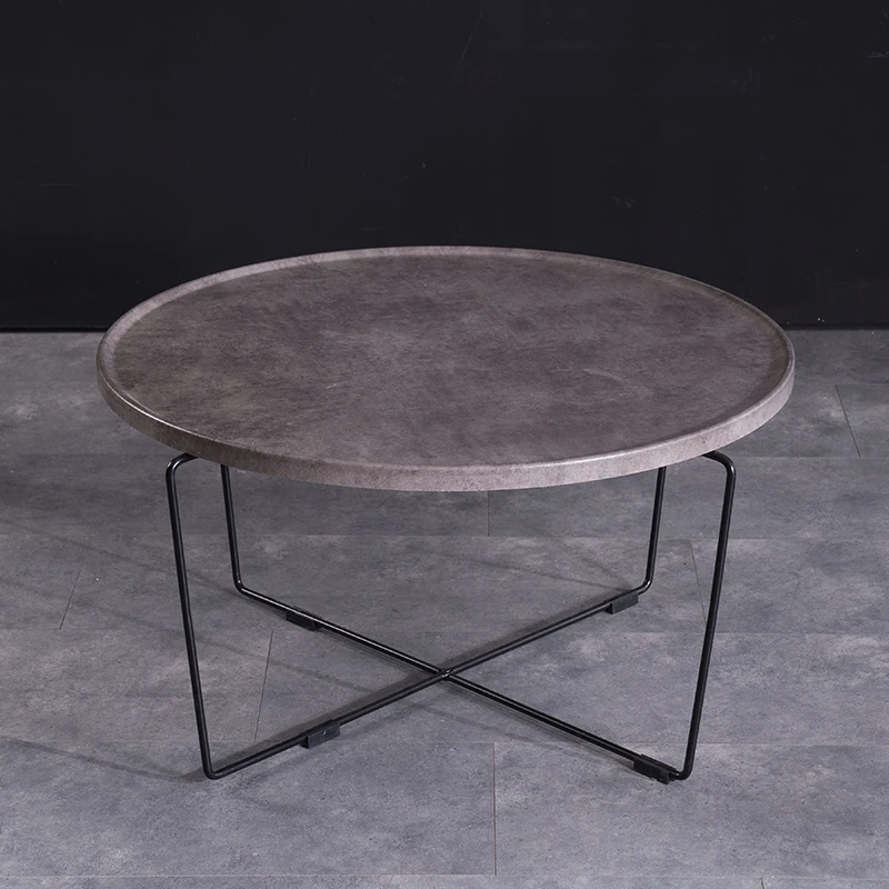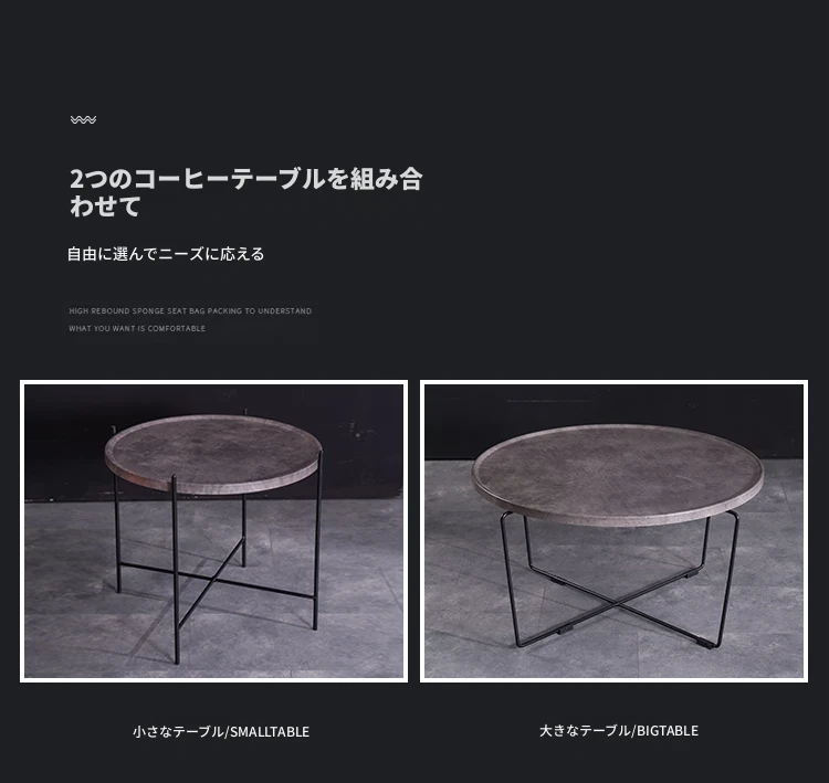 アイボリー+ダークグレー+直径60cm テーブル 本革 店主おすすめ