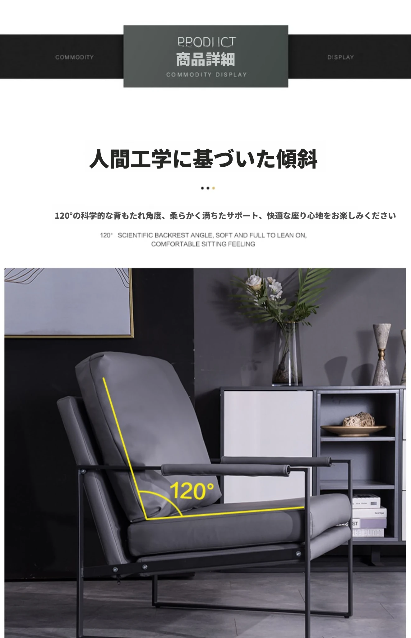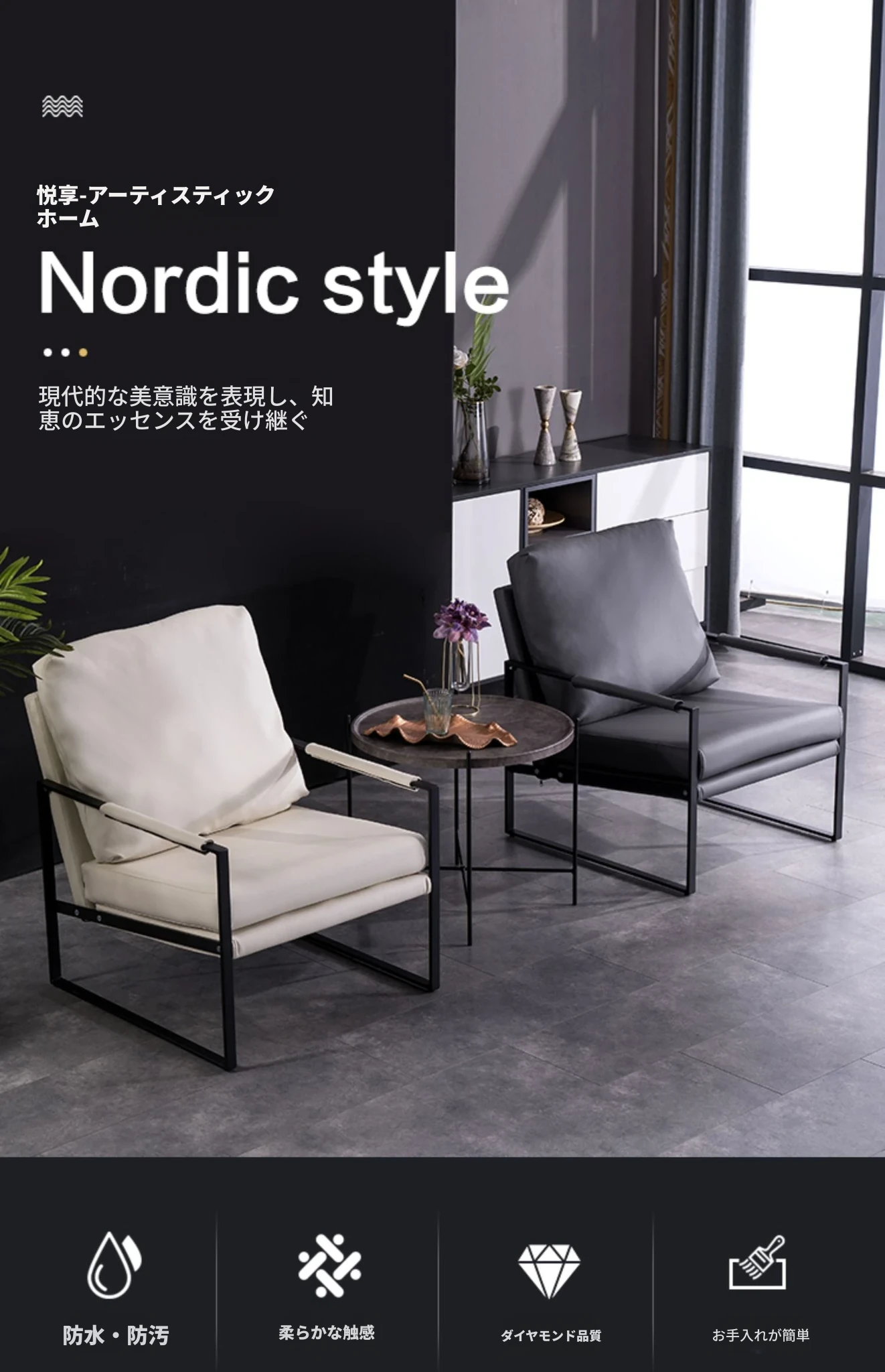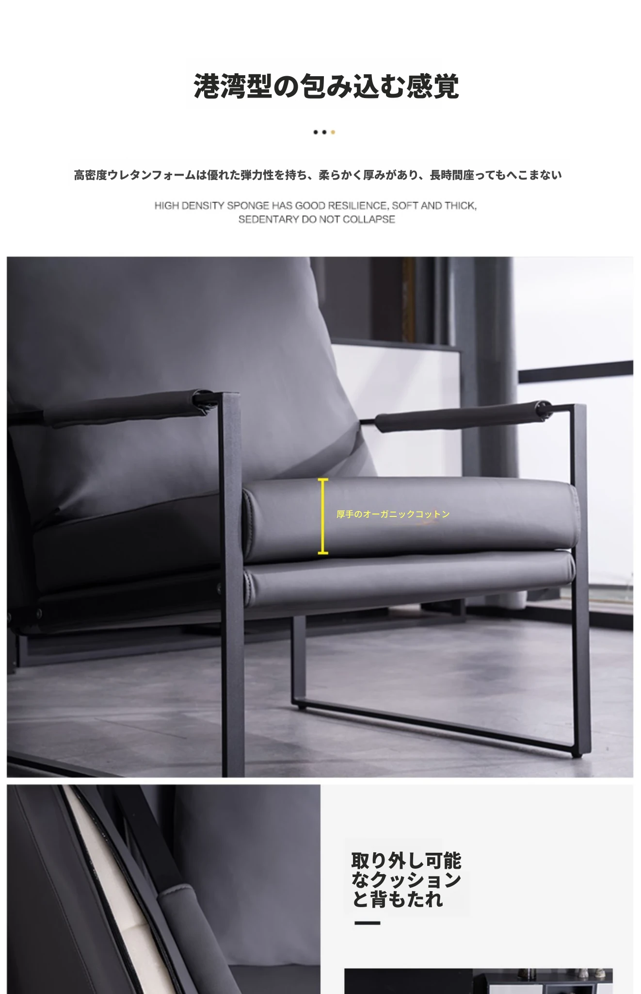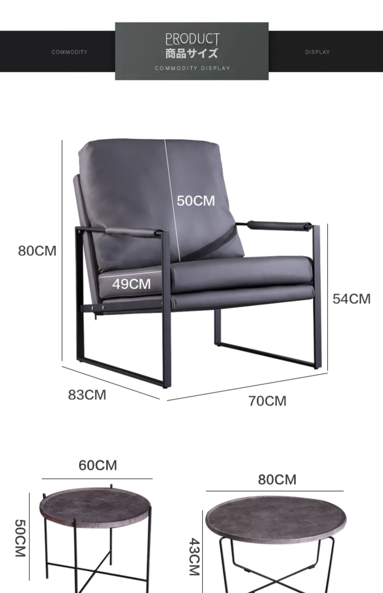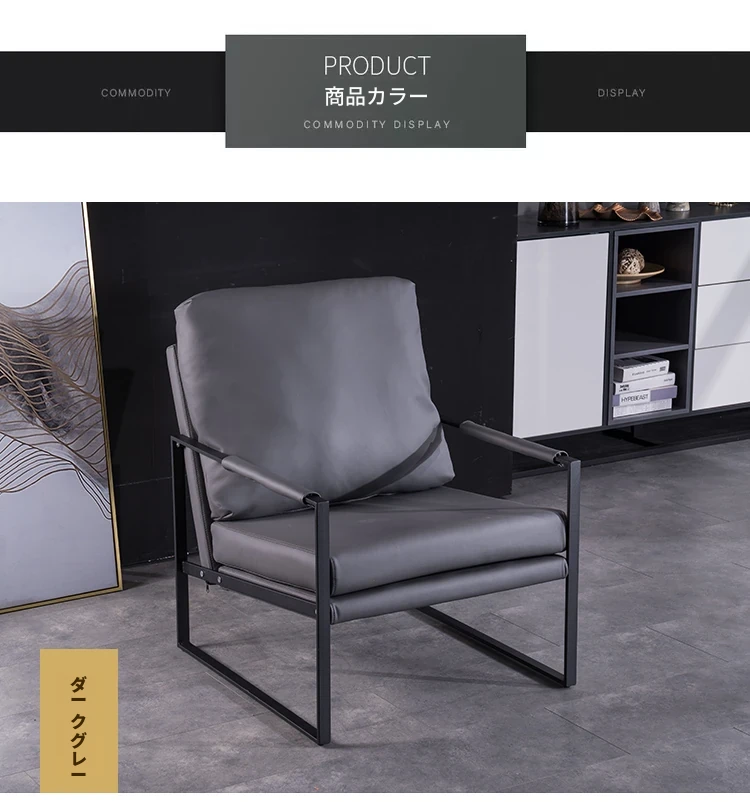 ダークグレー 高品質鉄製フレーム 本革