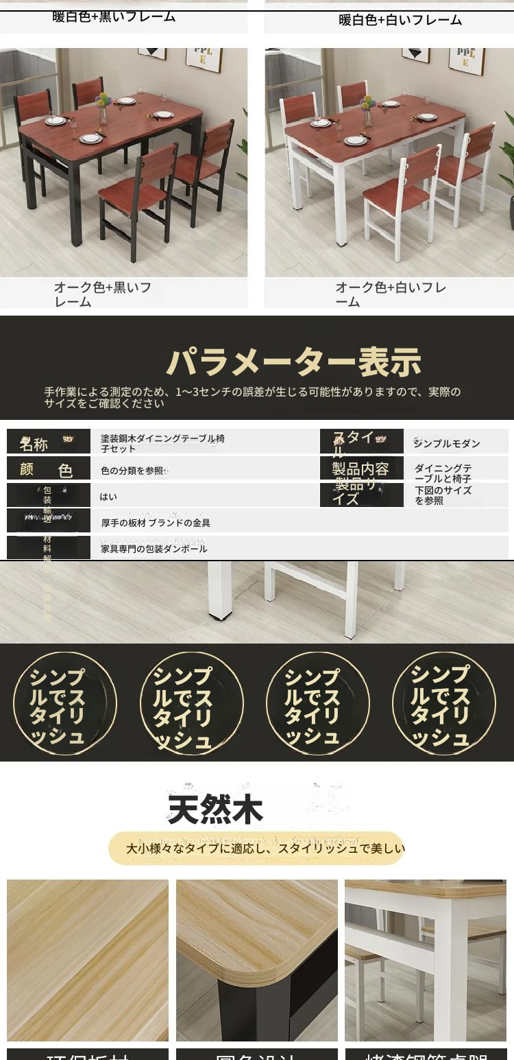 現代的シンプルなデザイン!レストラン用長方形ファストフードテーブル&チェアセット。小スペースにぴったりの家庭用食卓、面館にも最適!快適な食事時間をお楽しみください。