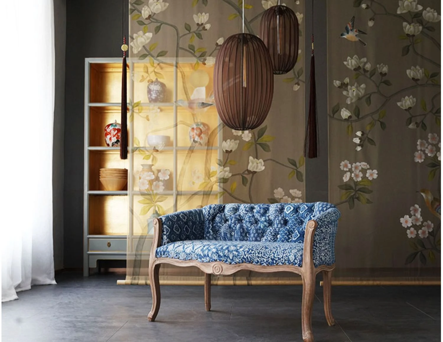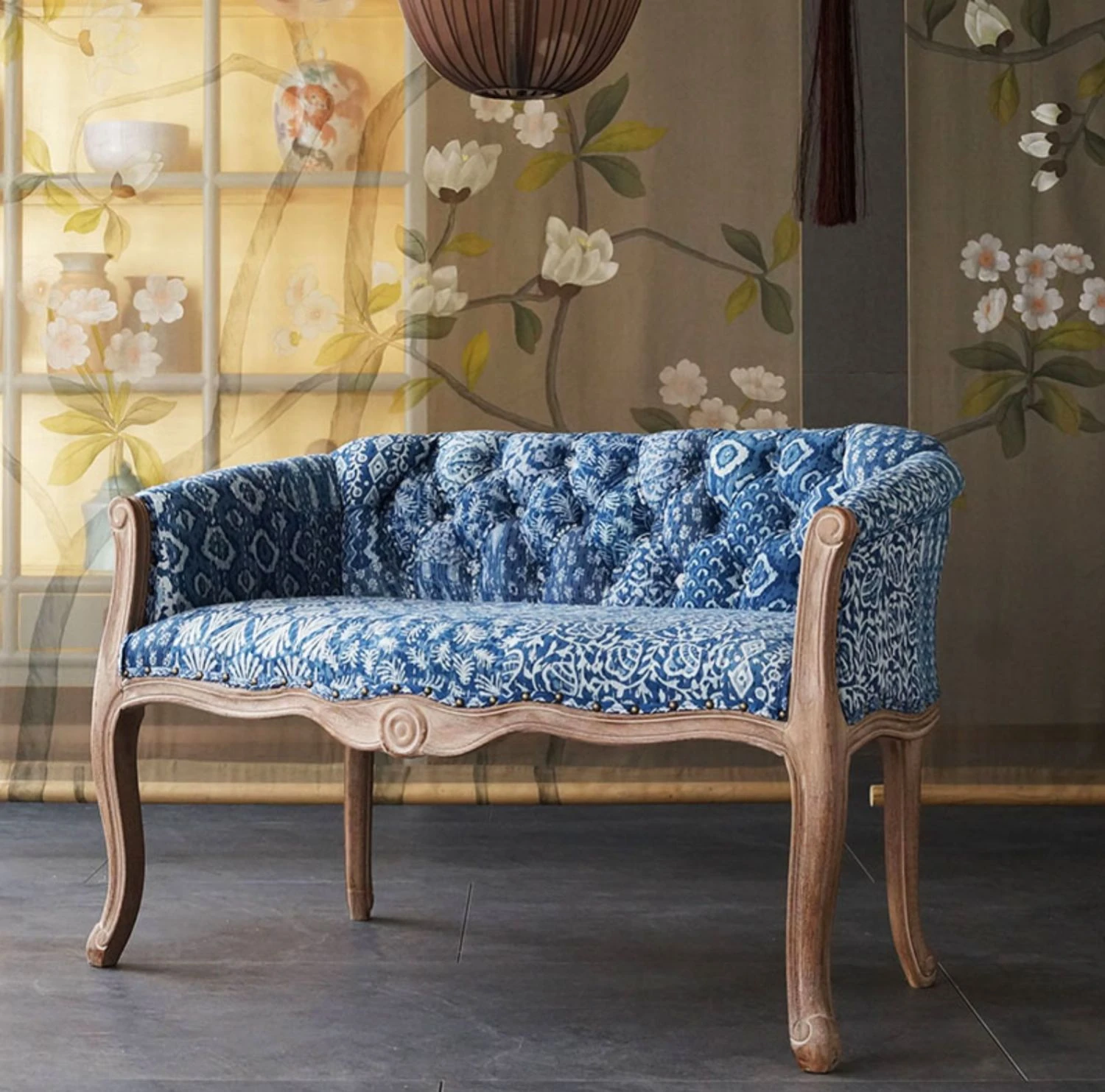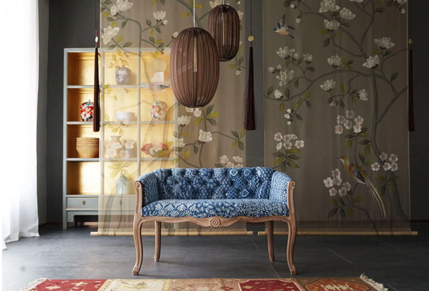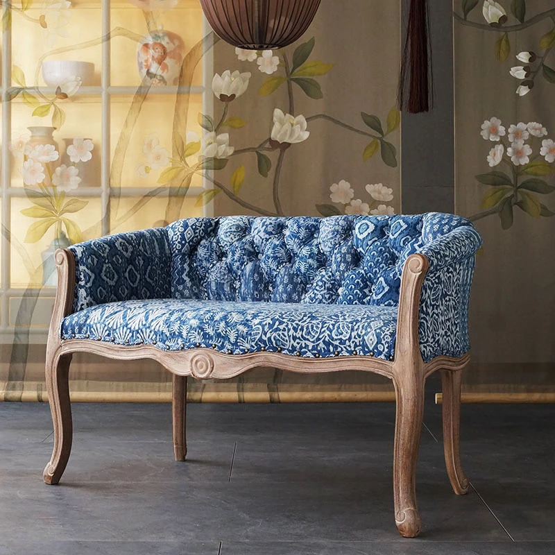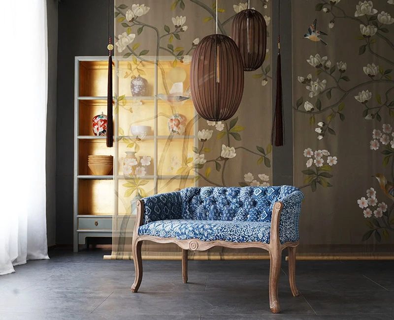 Modern Solid Wood Daybed with Color Block Fabric Sofa for Small Spaces - Elegant Asian Art Design for Your Living Room, Perfect for Couples