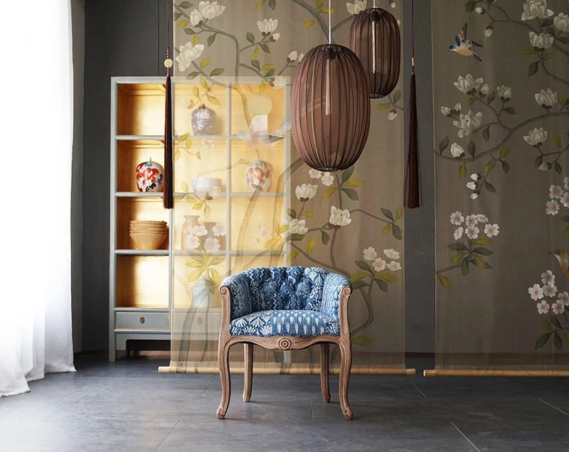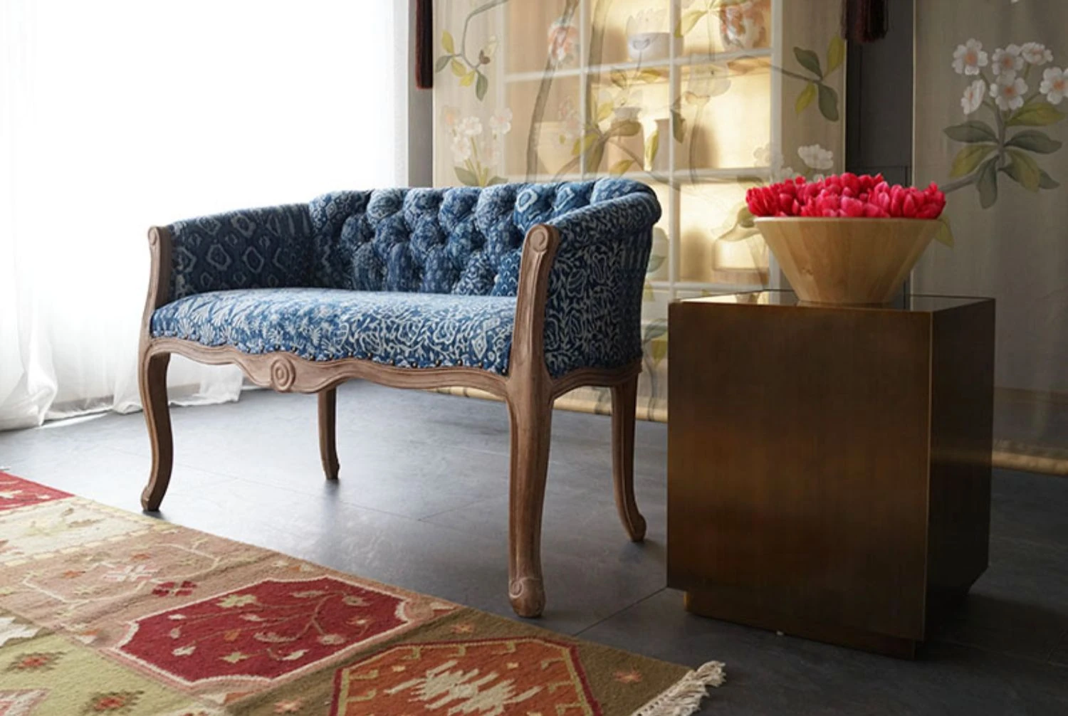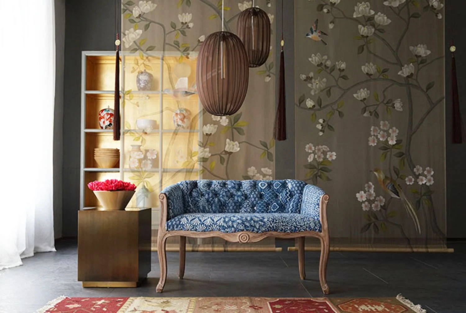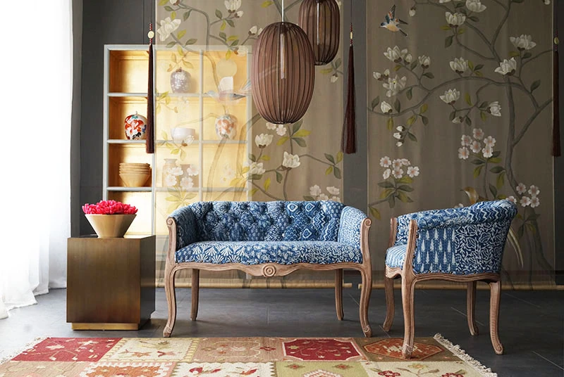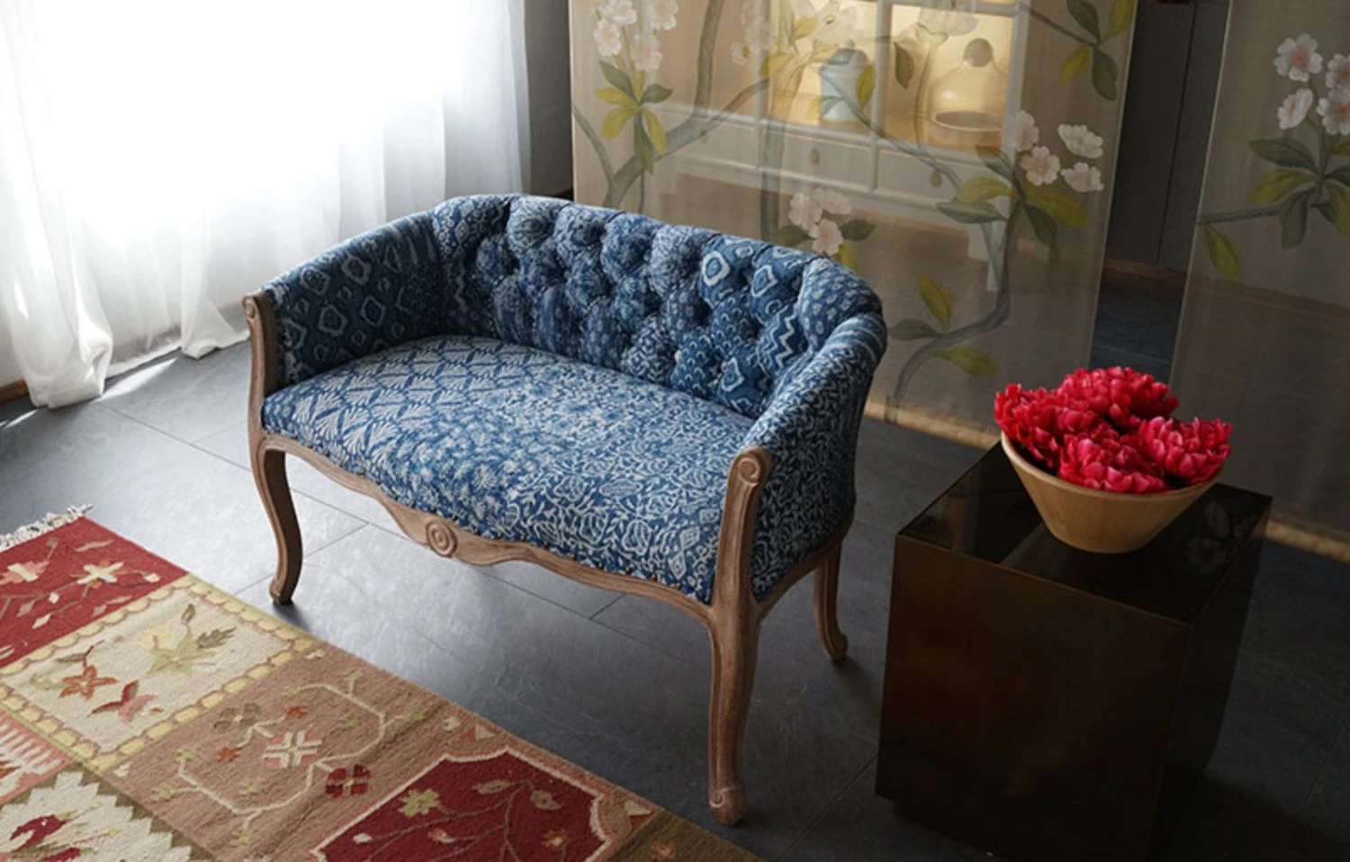 Modern Solid Wood Daybed with Color Block Fabric Sofa for Small Spaces - Elegant Asian Art Design for Your Living Room, Perfect for Couples