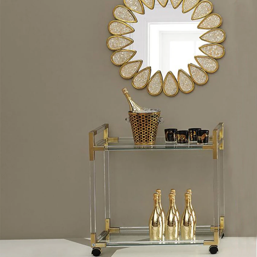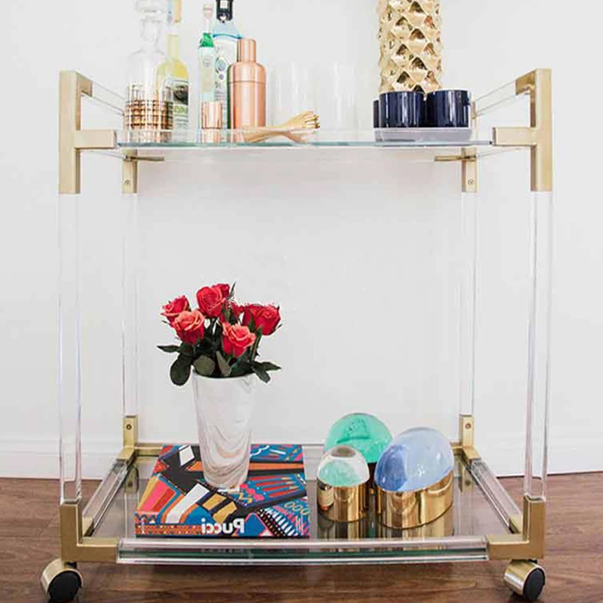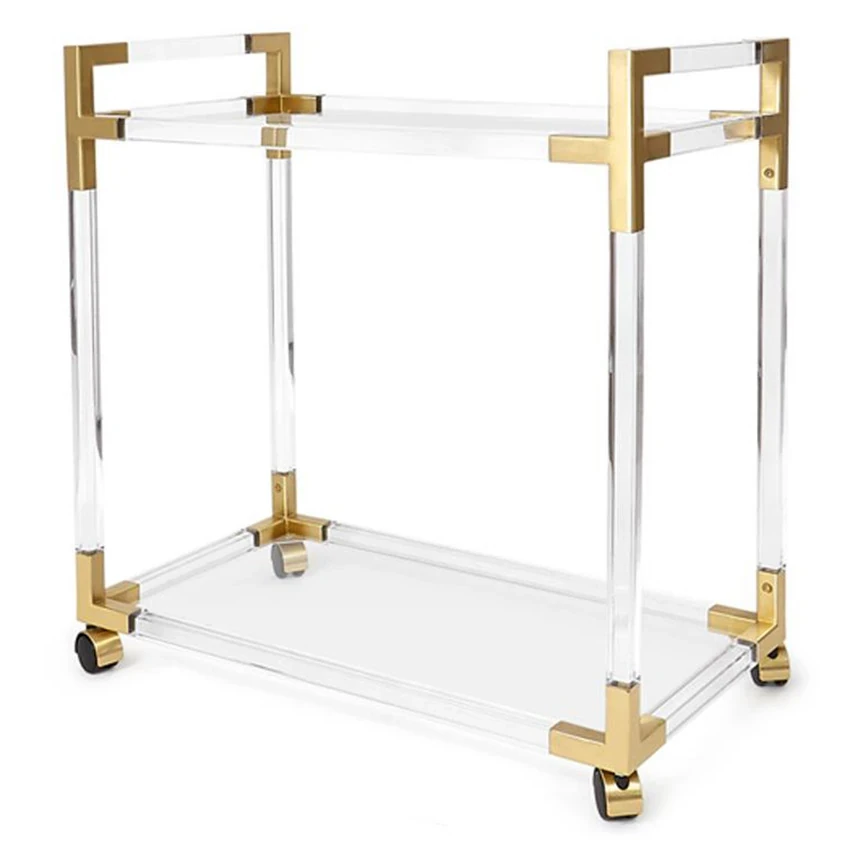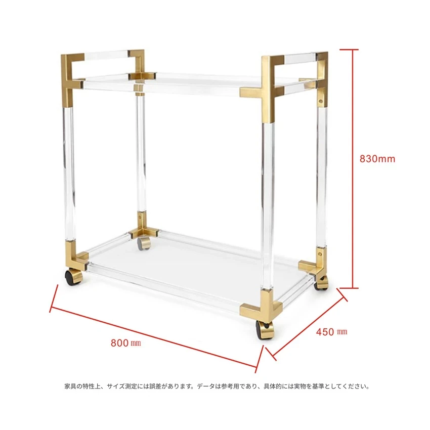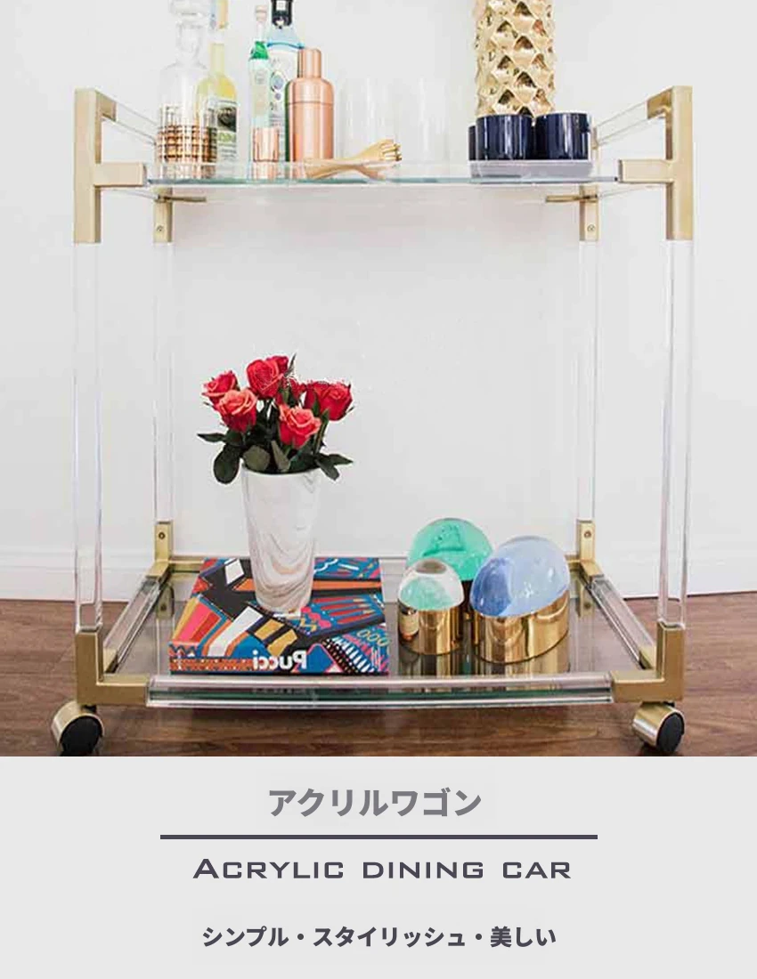 北欧風のアクリルダイニングカート - モダンでシンプルなデザインのホテル用デリバリーカート。イタリアンラグジュアリーを感じさせる透明な手押し車で、スタイリッシュな食事体験を提供します。