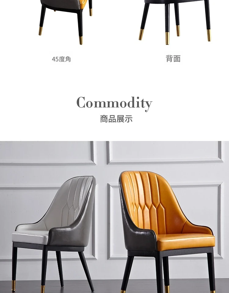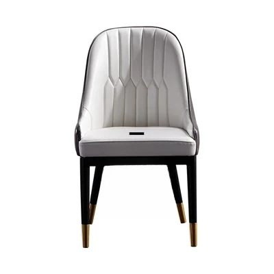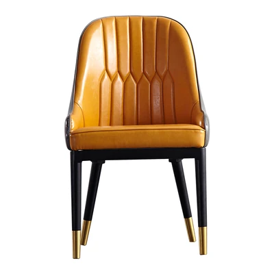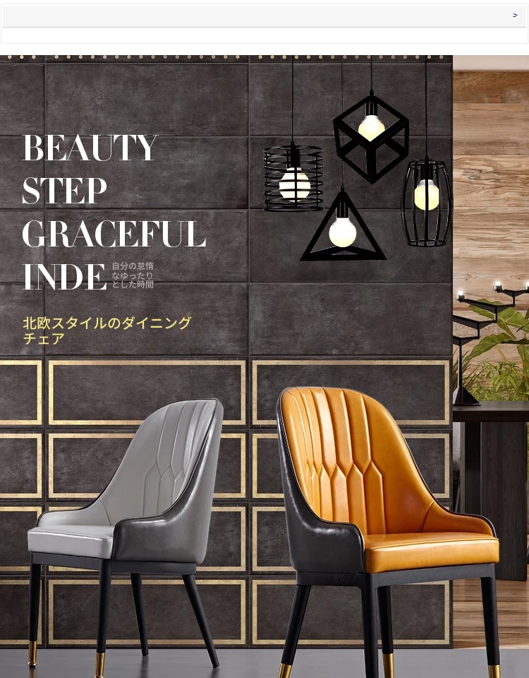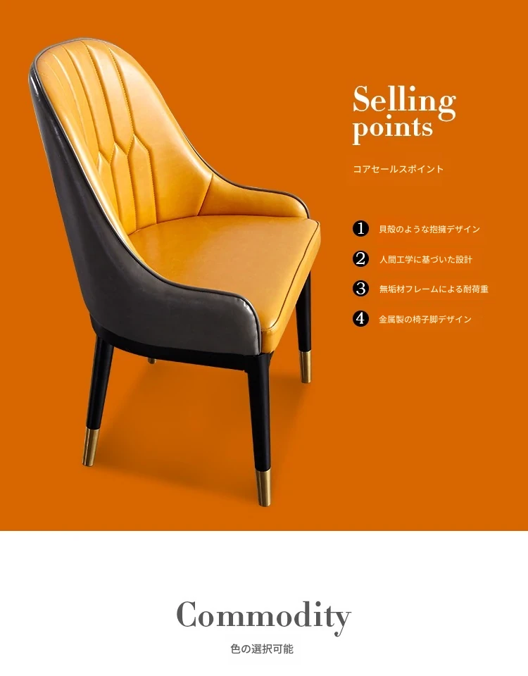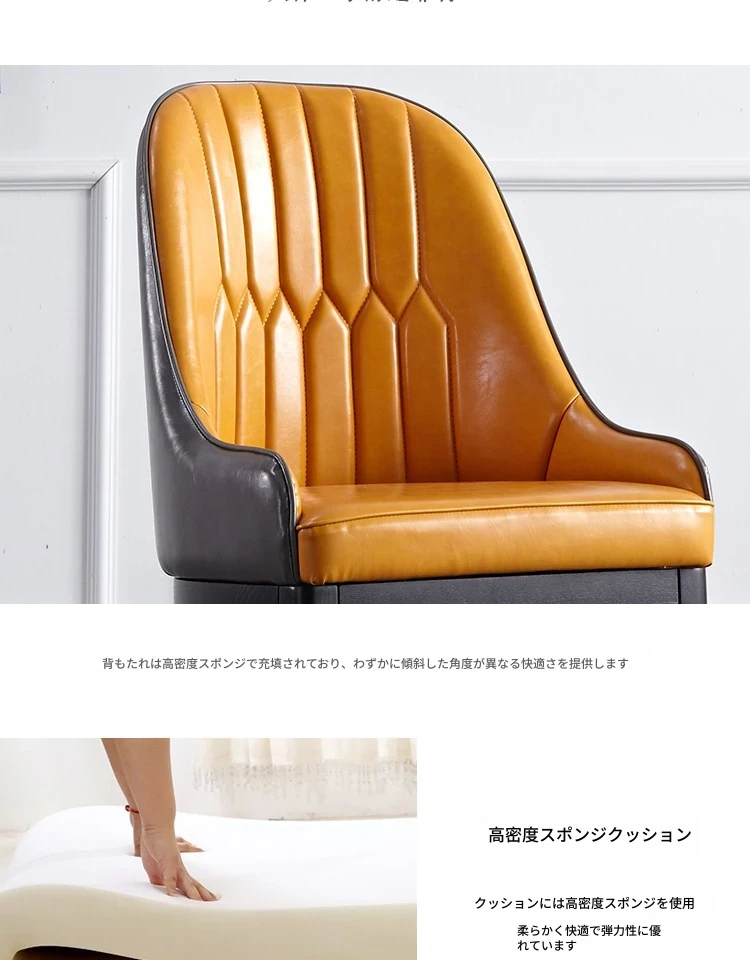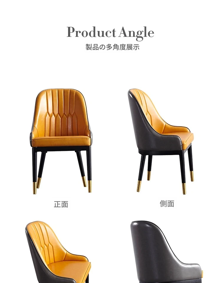 北欧スタイルの無垢材と金属のダイニングチェア - シンプルでモダンな軽奢デザイン、ホテルやカフェに最適!デザイナーによるレザー仕上げのリラックスチェア、書斎にもぴったり。