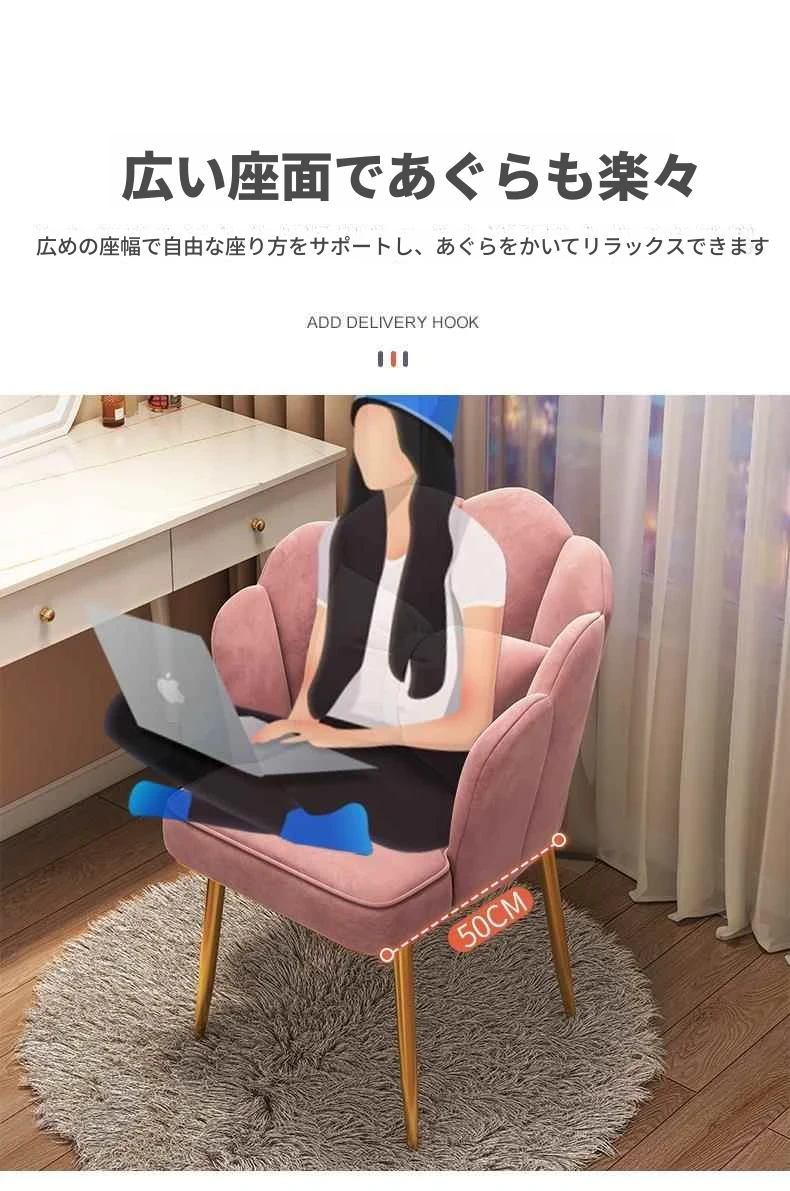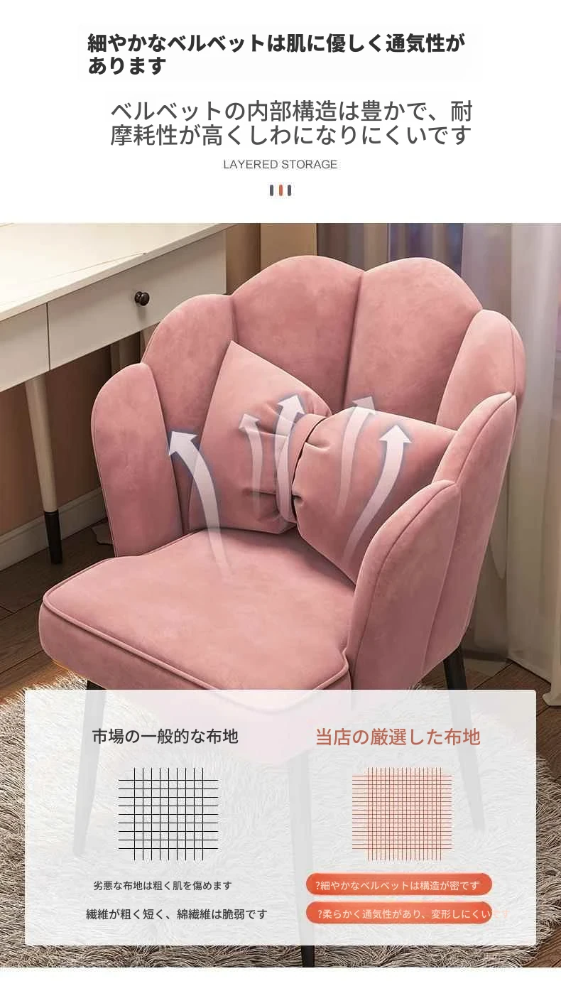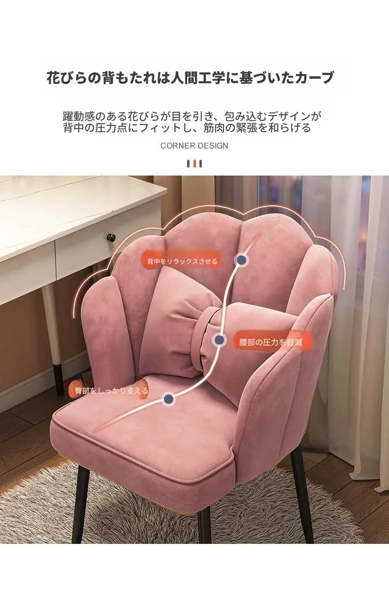 北欧風デザインの化粧台用椅子!背もたれ付きで快適な座り心地、女の子の寝室にぴったり。おしゃれなネイルチェアとしても大活躍!