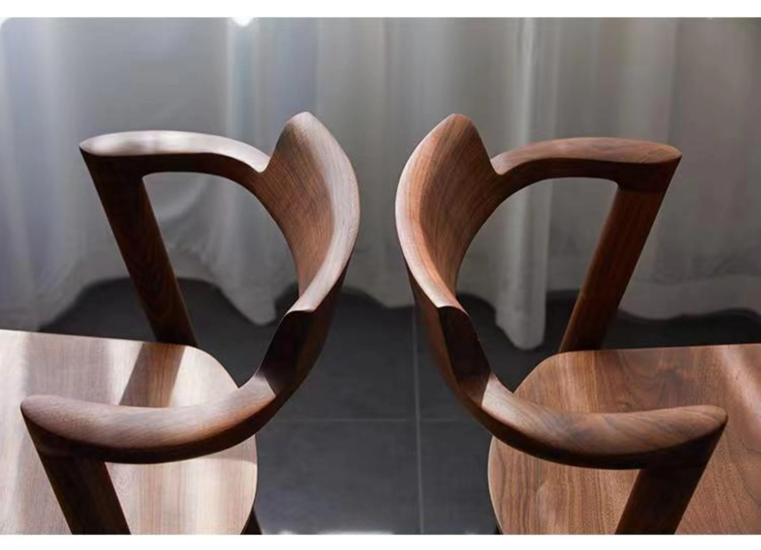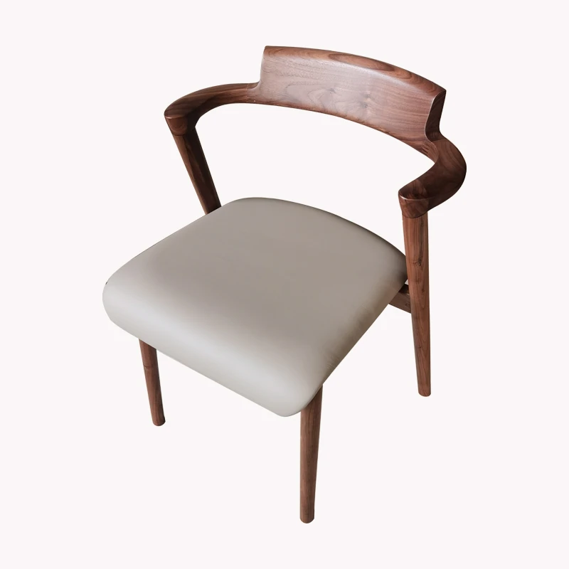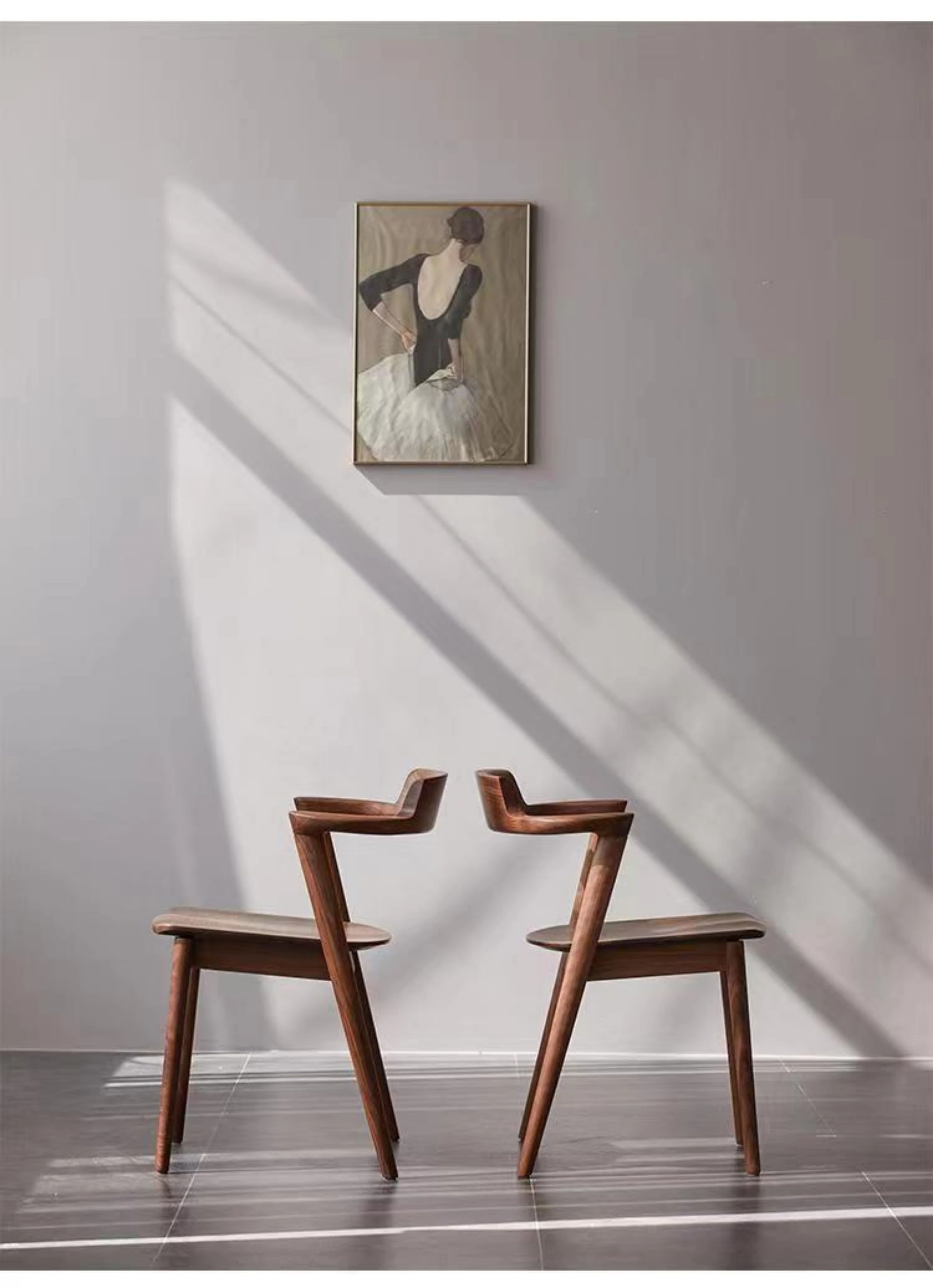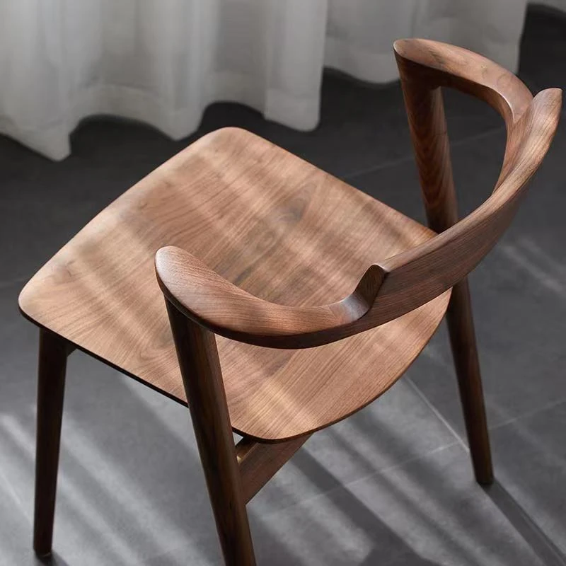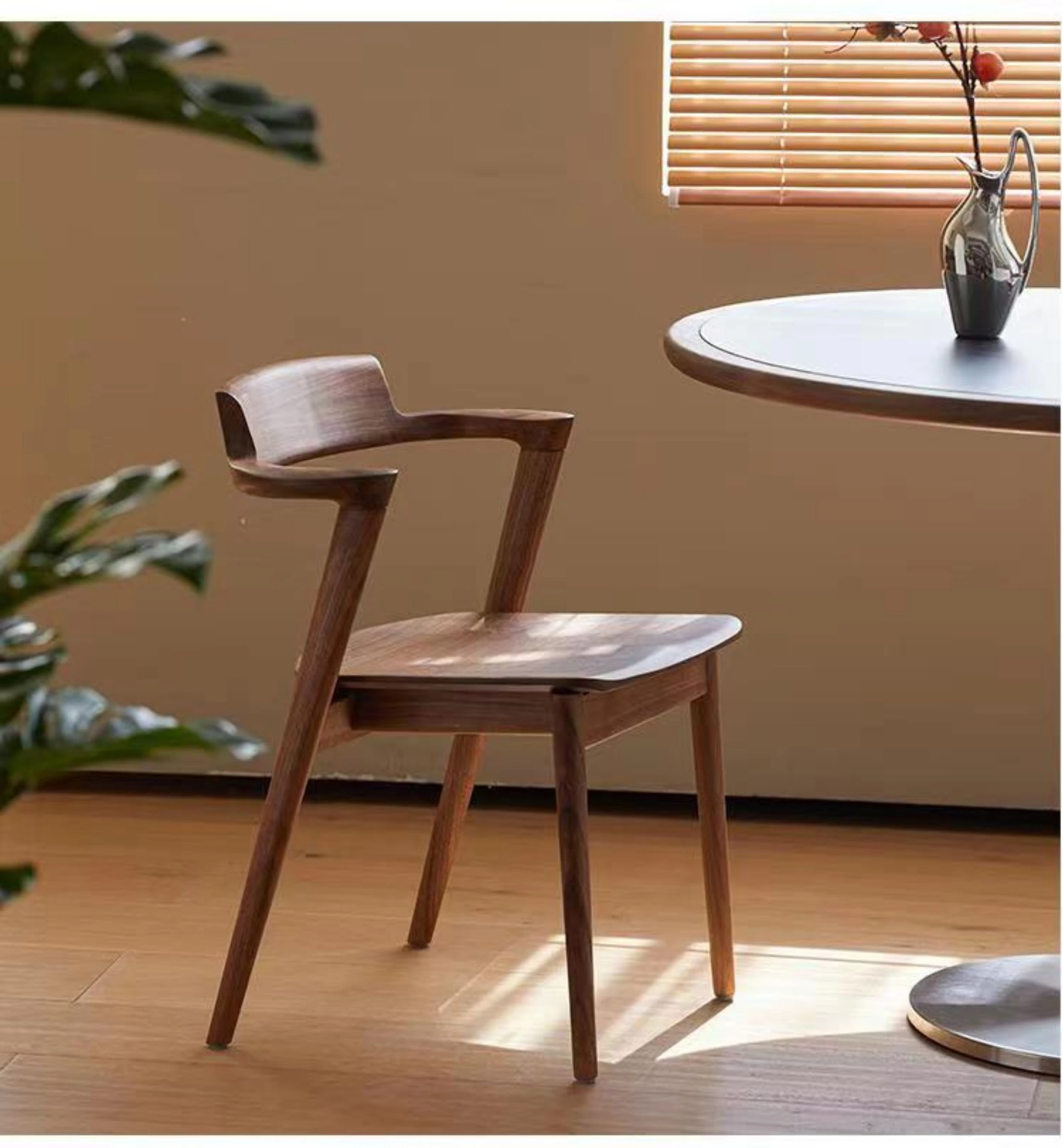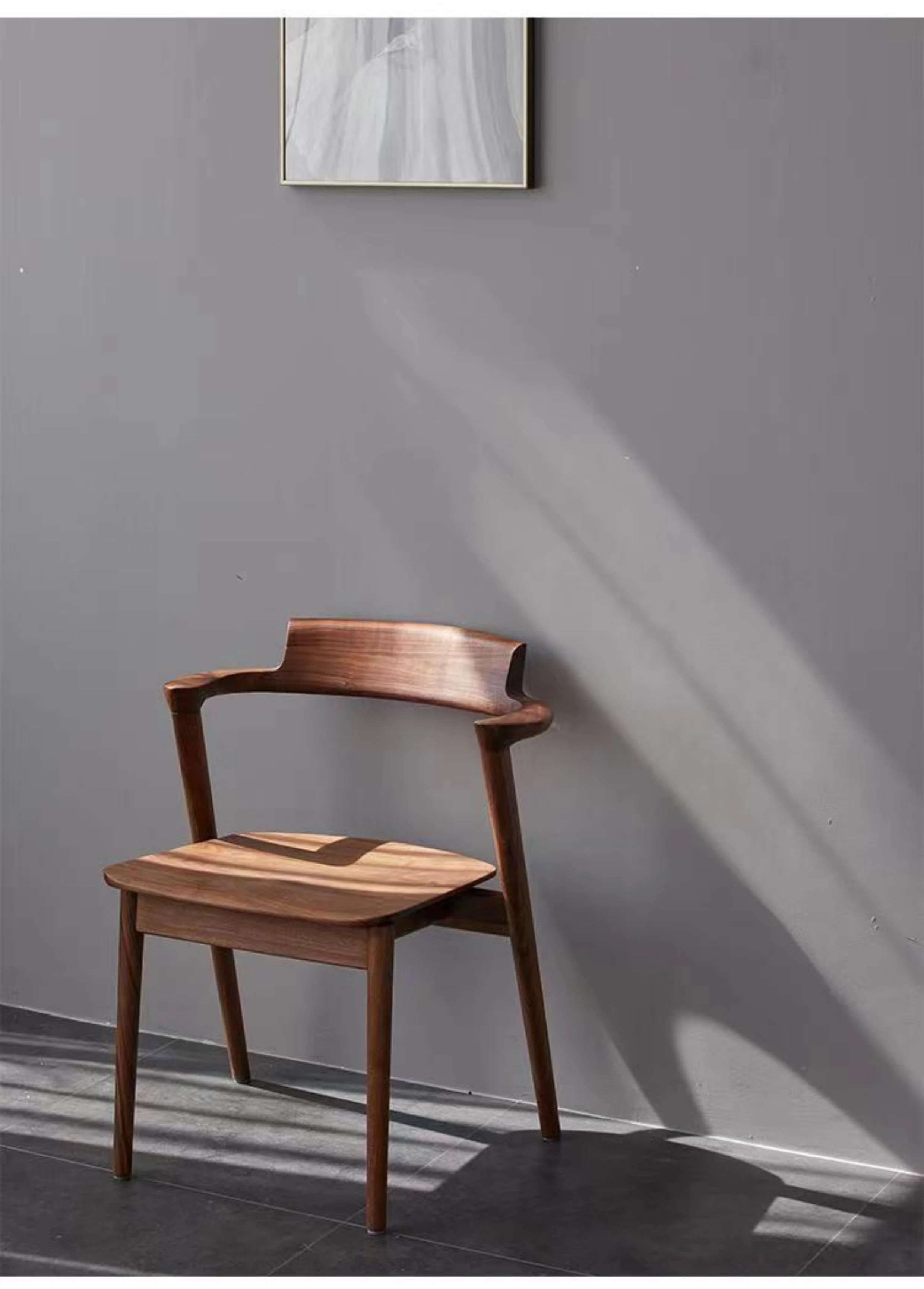 北米産ブラックウォールナット無垢材使用!おしゃれな短いアーム付きで、和モダンなデザインのダイニングチェア。書斎やリビングにも最適な北欧風!快適な座り心地で、あなたの空間を格上げします。