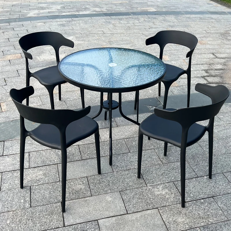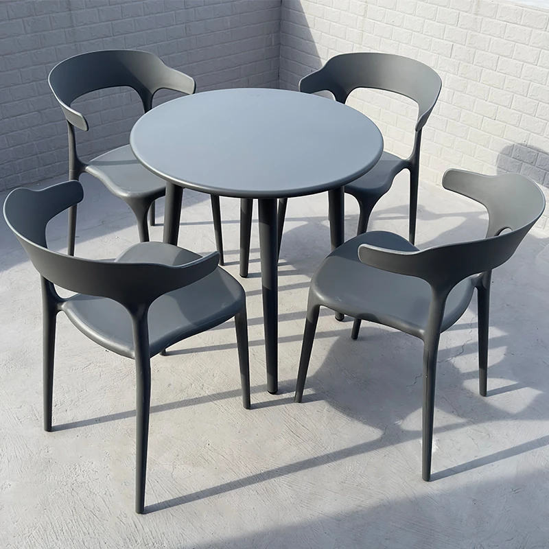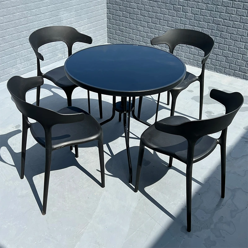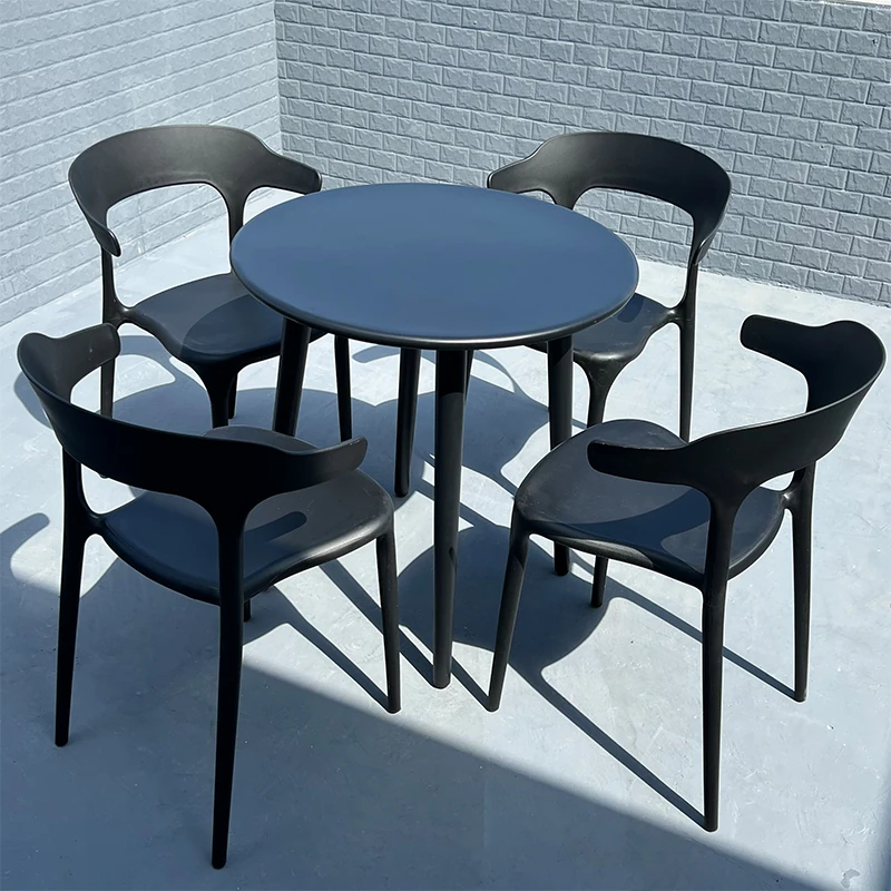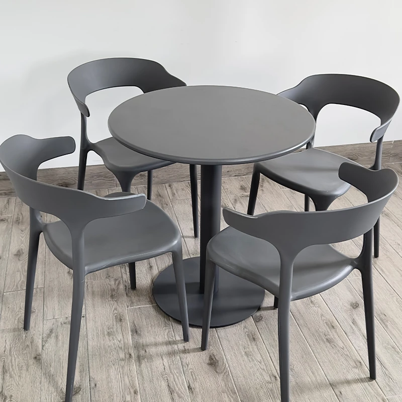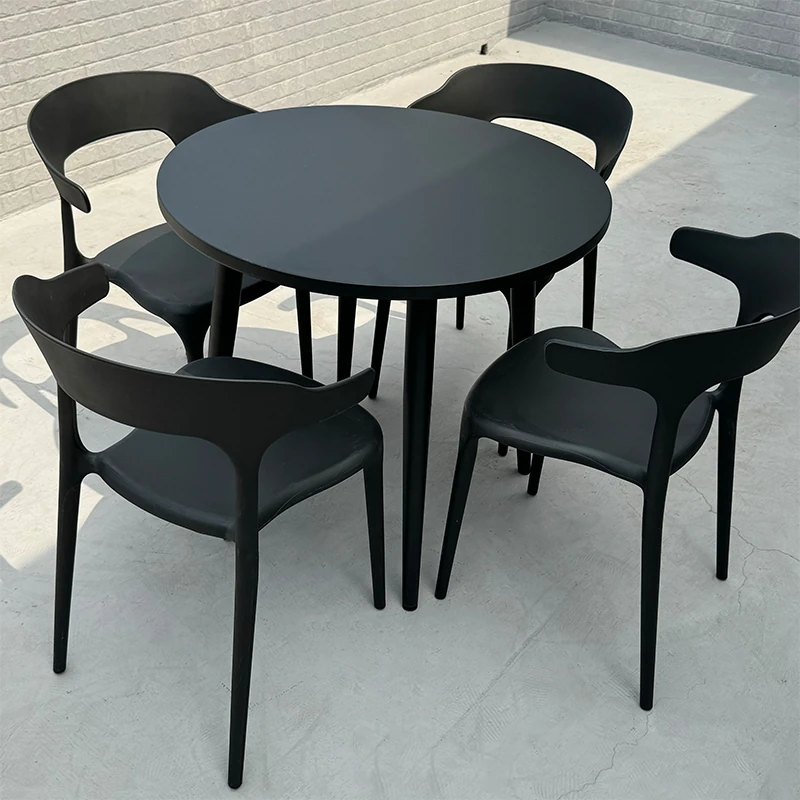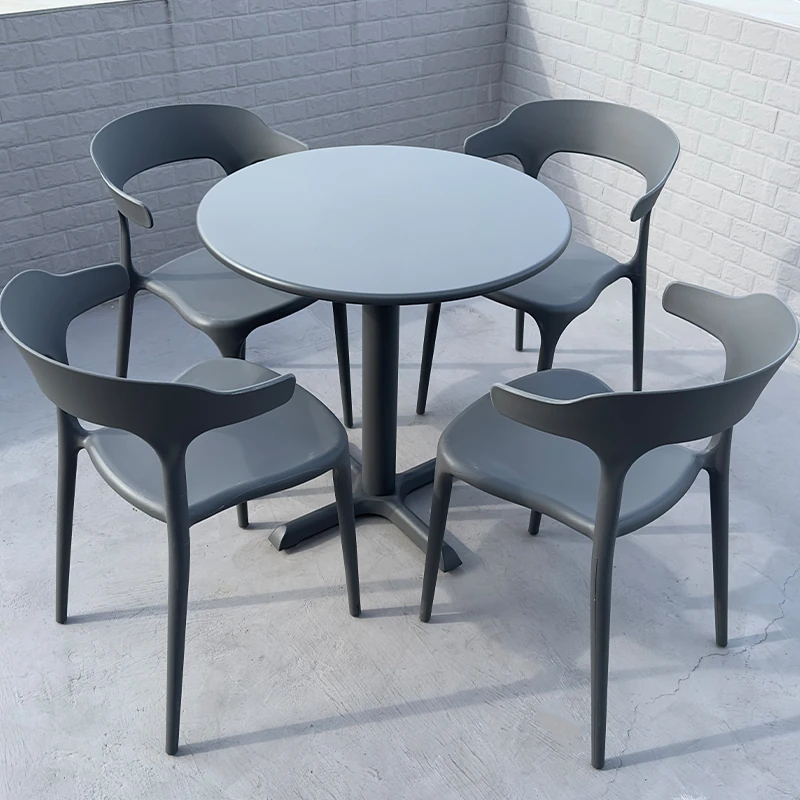 アウトドアプラスチック製ミルクティー店用テーブル&チェアセット - 人気の小型ラウンドテーブル、商業用ダイニングテーブル、リラックスできる会話スペース、一つのテーブルに四つの椅子!おしゃれで機能的、あなたの店を魅力的に演出します!
