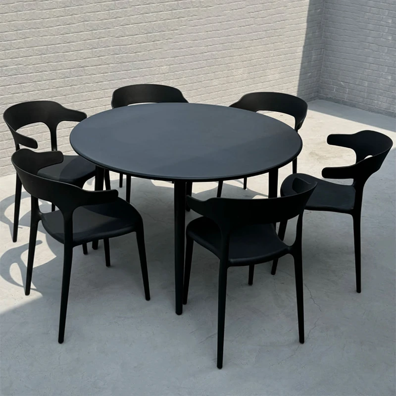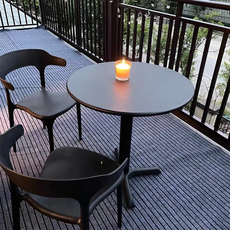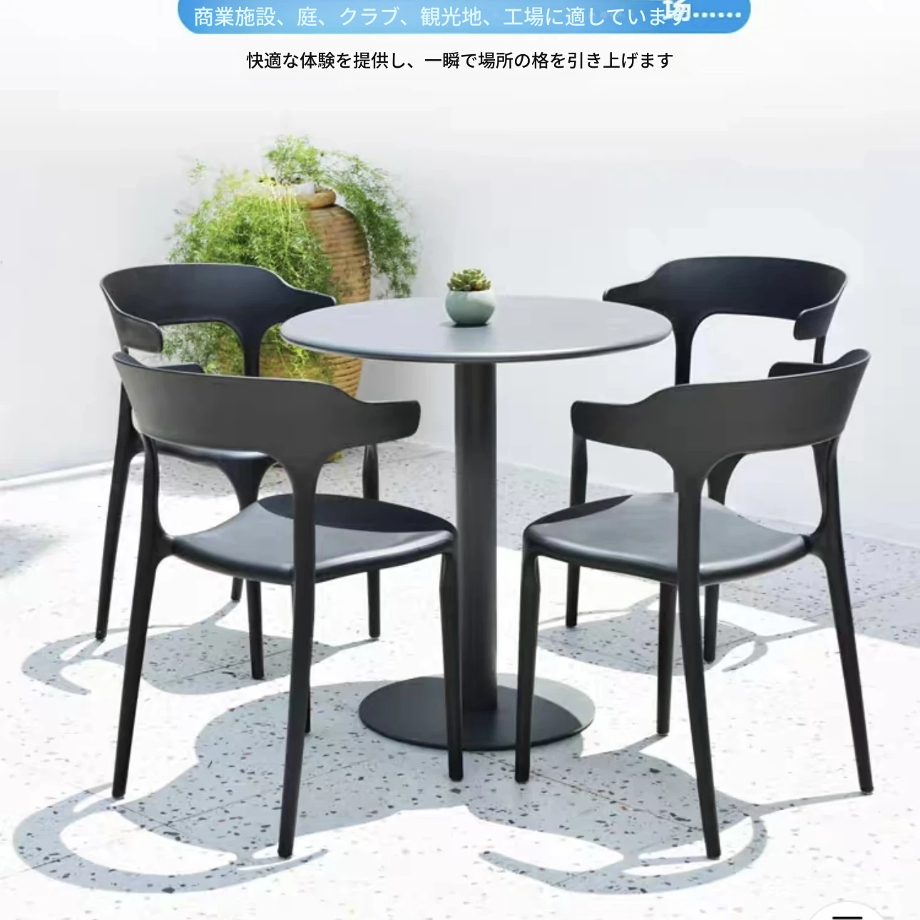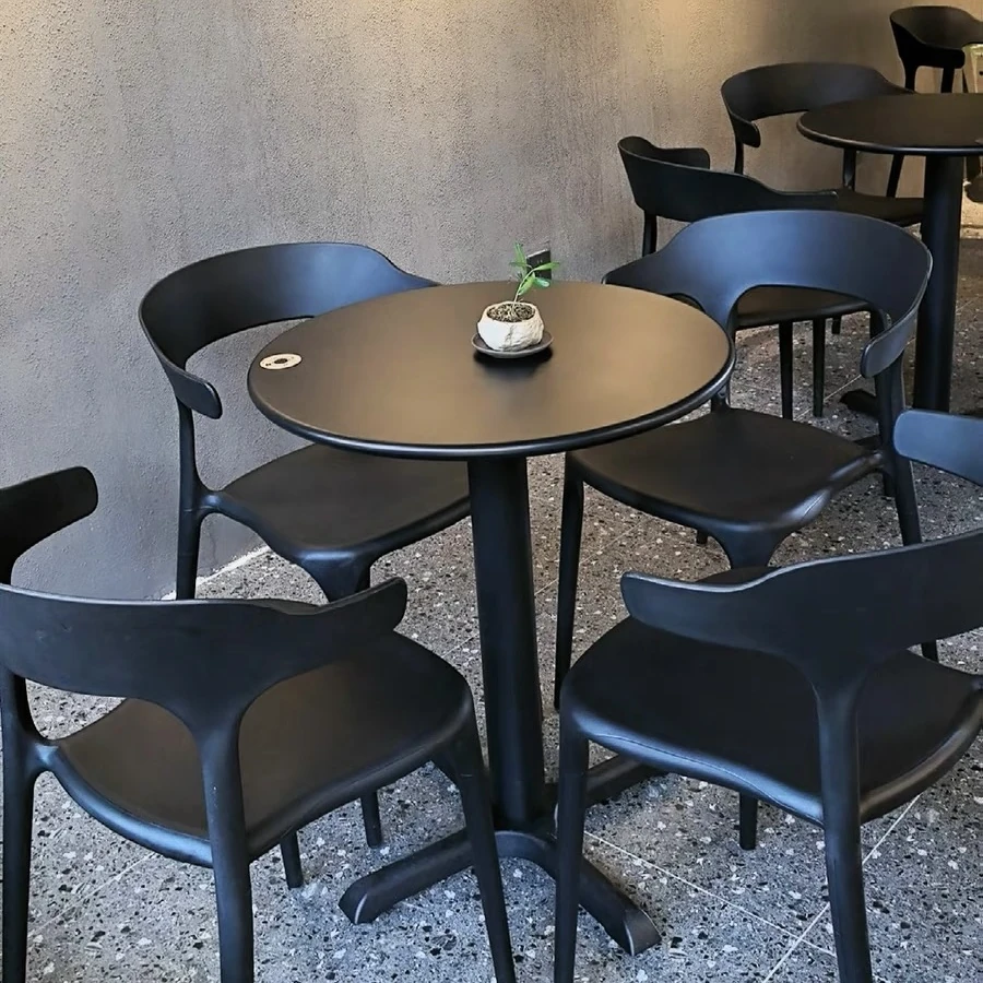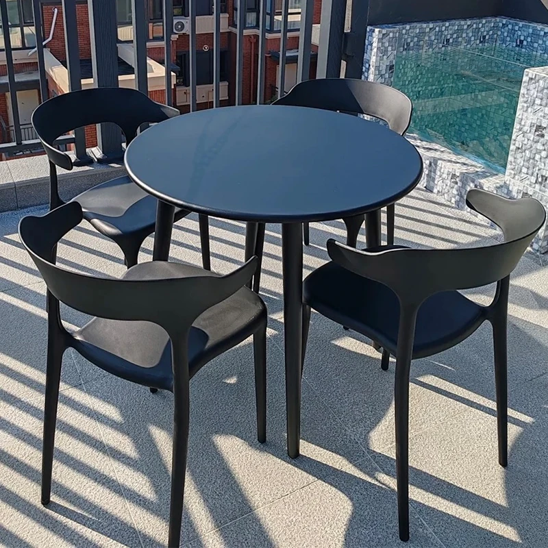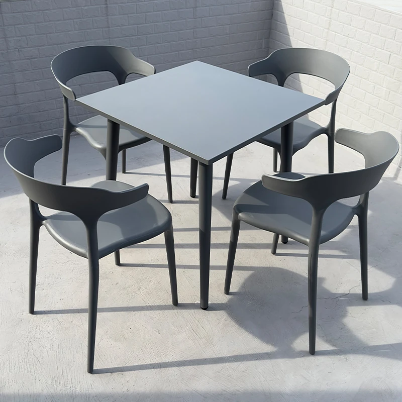 アウトドアプラスチック製ミルクティー店用テーブル&チェアセット - 人気の小型ラウンドテーブル、商業用ダイニングテーブル、リラックスできる会話スペース、一つのテーブルに四つの椅子!おしゃれで機能的、あなたの店を魅力的に演出します!