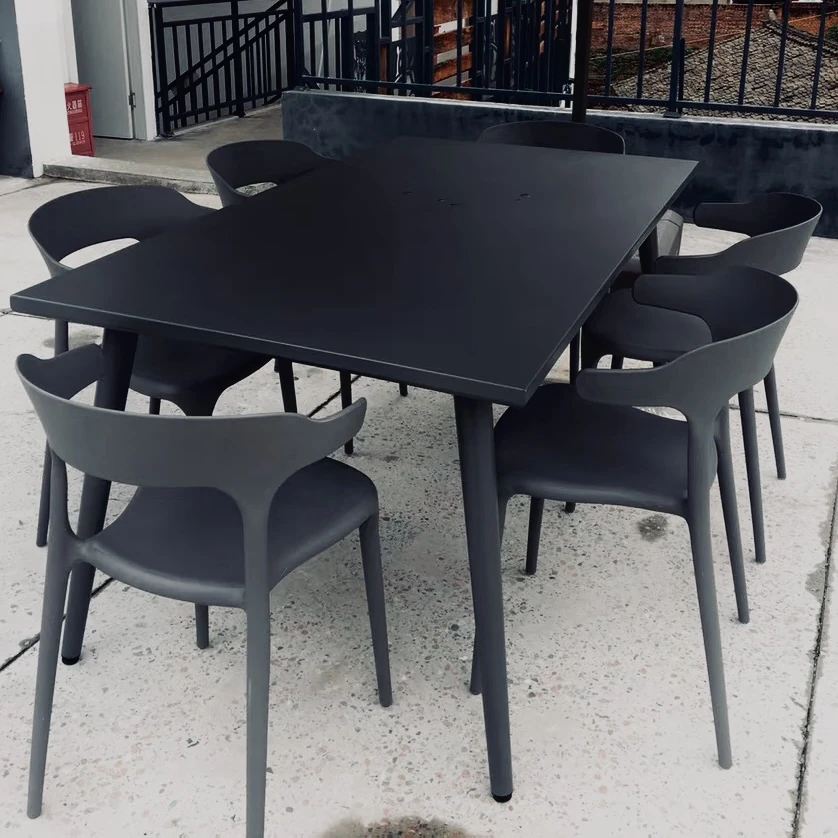【ダークグレー】6椅子+150*80cm炭素鋼長卓