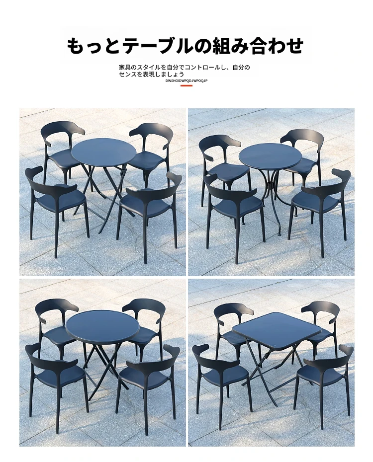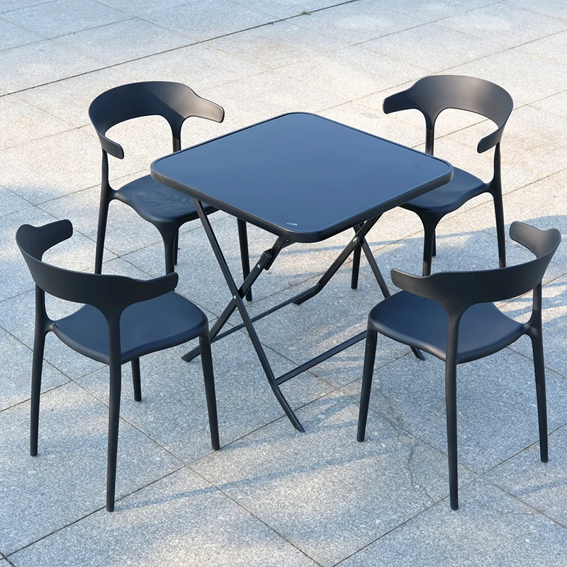【黒】4椅子+70cm炭素鋼折りたたみ角卓