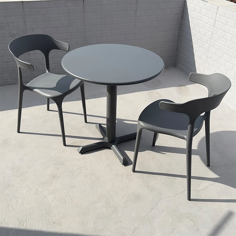 【ダークグレー】4椅子+70cm立柱炭素鋼円卓