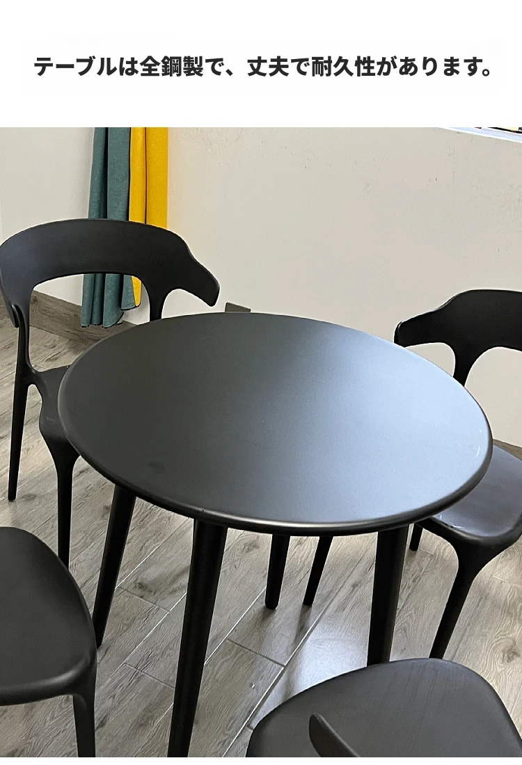 【黒】4椅子+90cm炭素鋼円卓