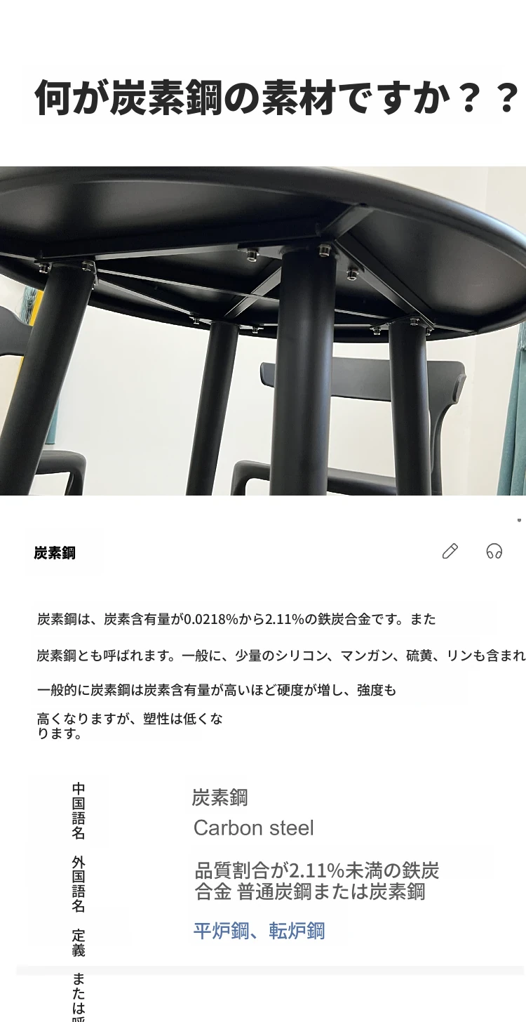 【黒】4椅子+70cm炭素鋼円卓