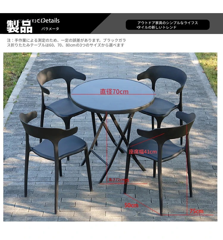 【黒】4椅子+70cm炭素鋼折りたたみ円卓