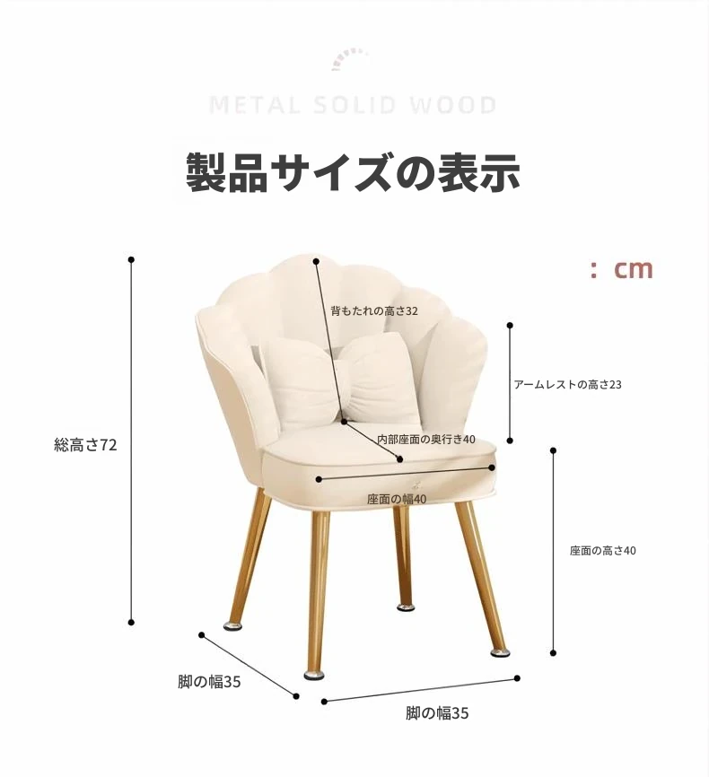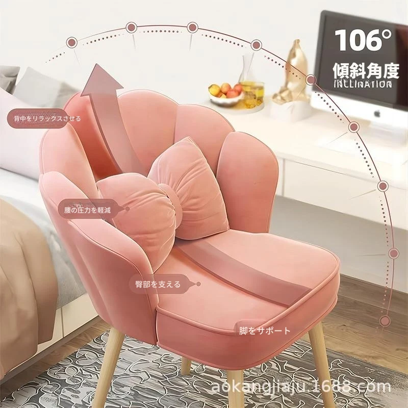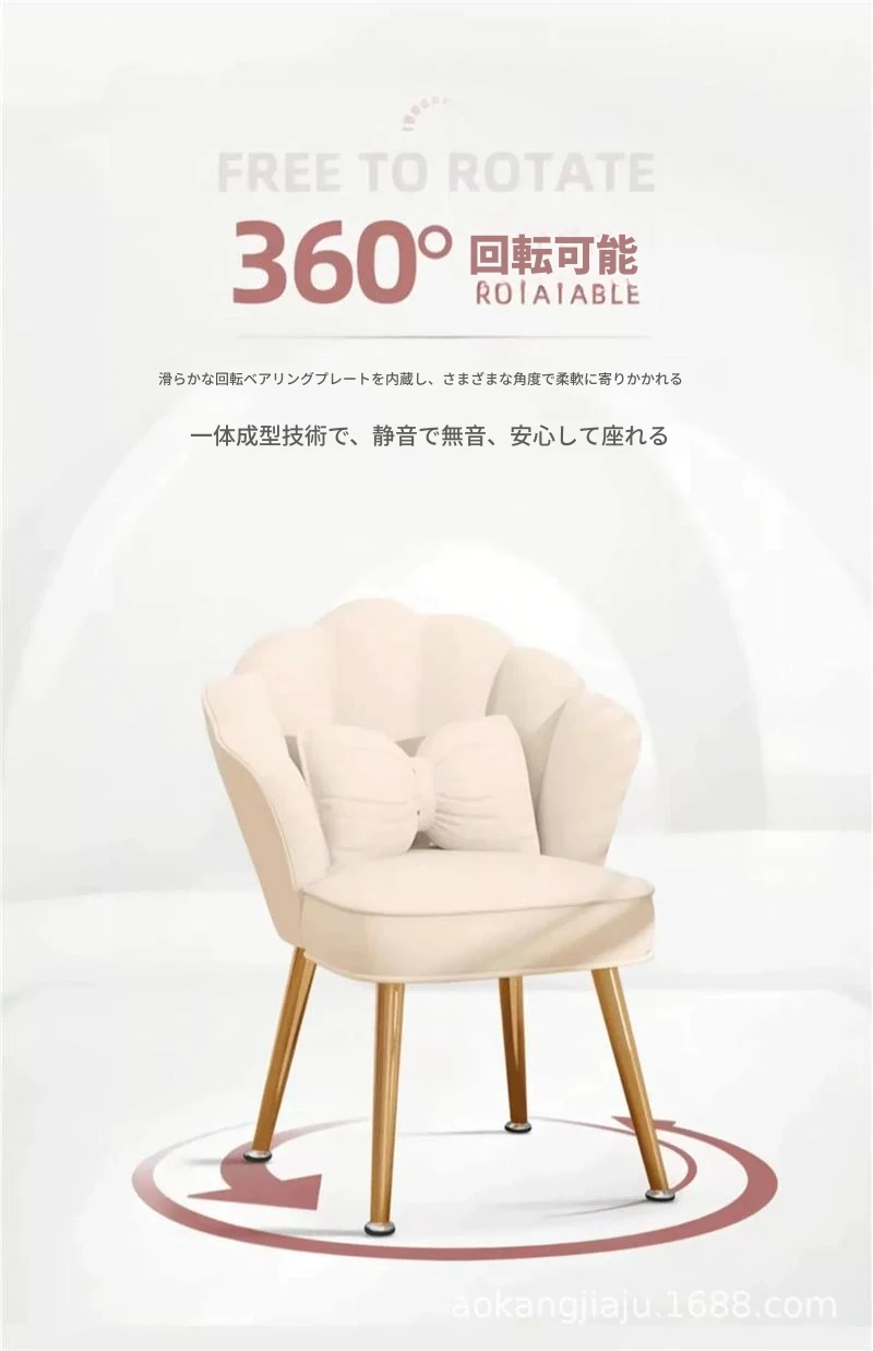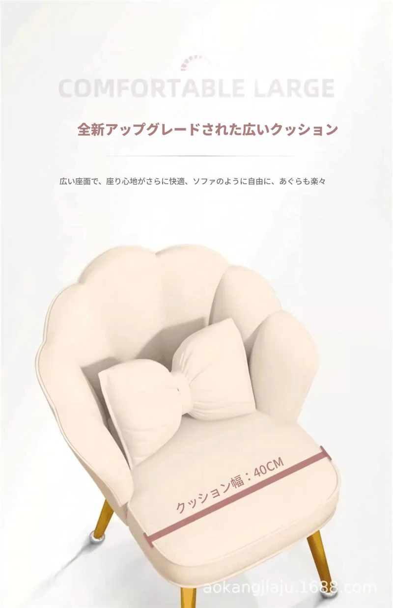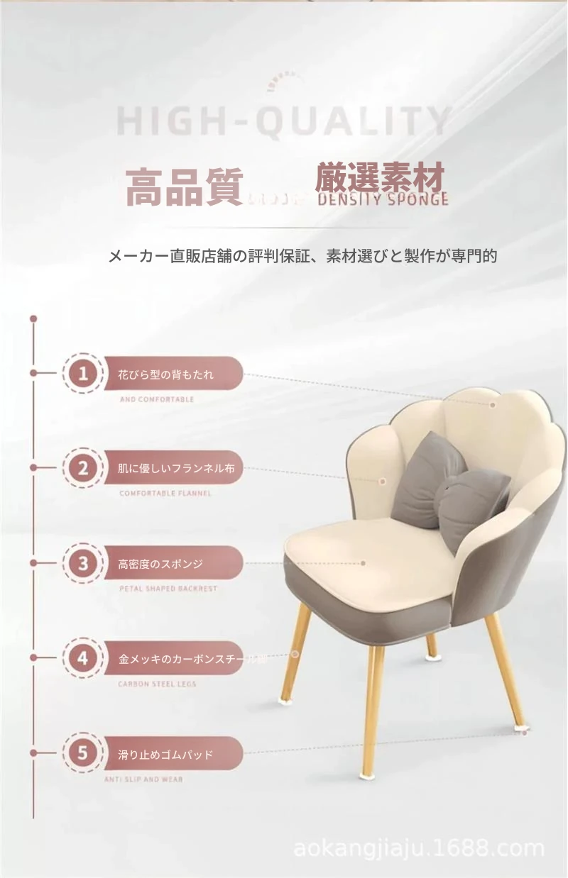 シンプルで洗練されたデザインの化粧椅子!背もたれ付きで快適さを追求。おしゃれな女の子のための花びらモチーフ、寝室やメイクアップテーブルに最適。高級感あふれる一品で、あなたの部屋を一層魅力的に演出します。