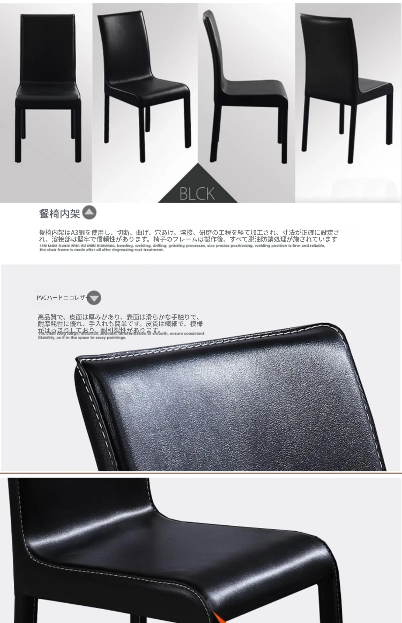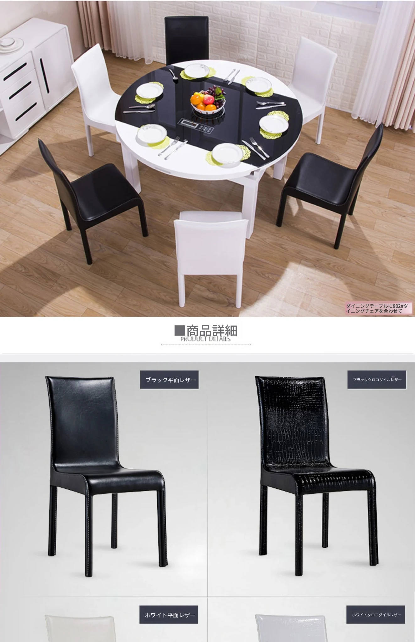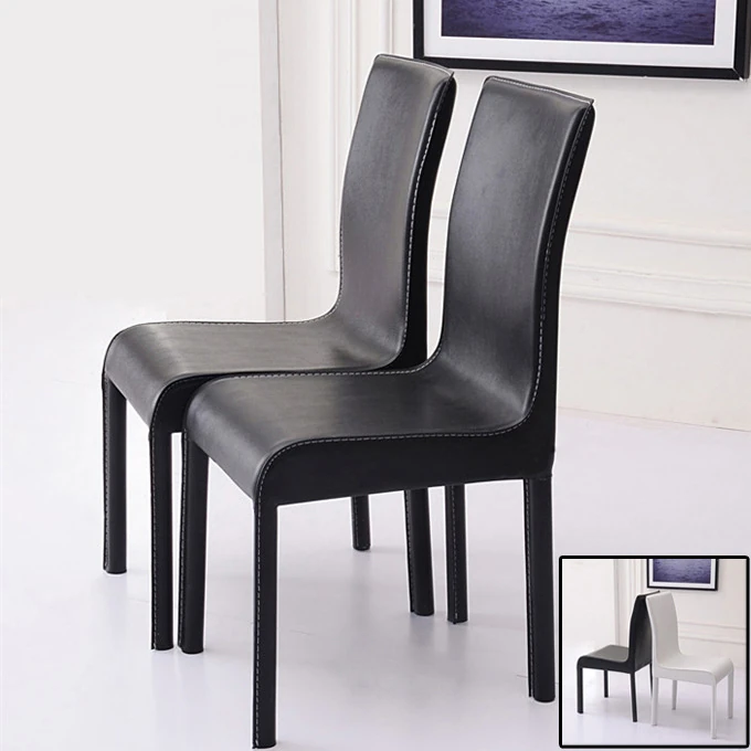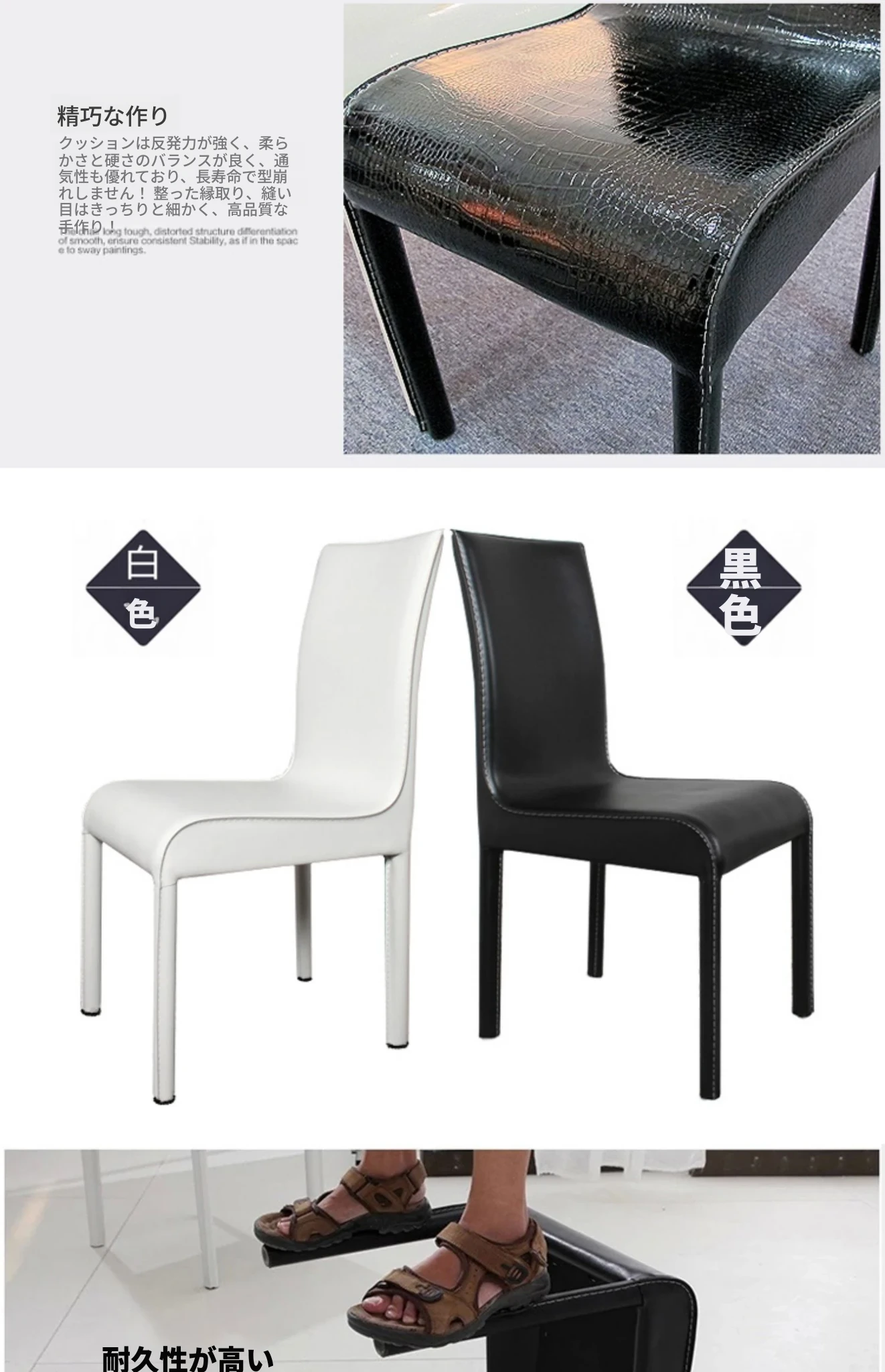シンプルモダンなレザー製ダイニングチェア|ホテルやレストランにぴったりの軽奢スタイル|オフィスや家庭にも最適|黒と白のエレガントなデザイン|厚みのある背もたれで快適な座り心地を実現!