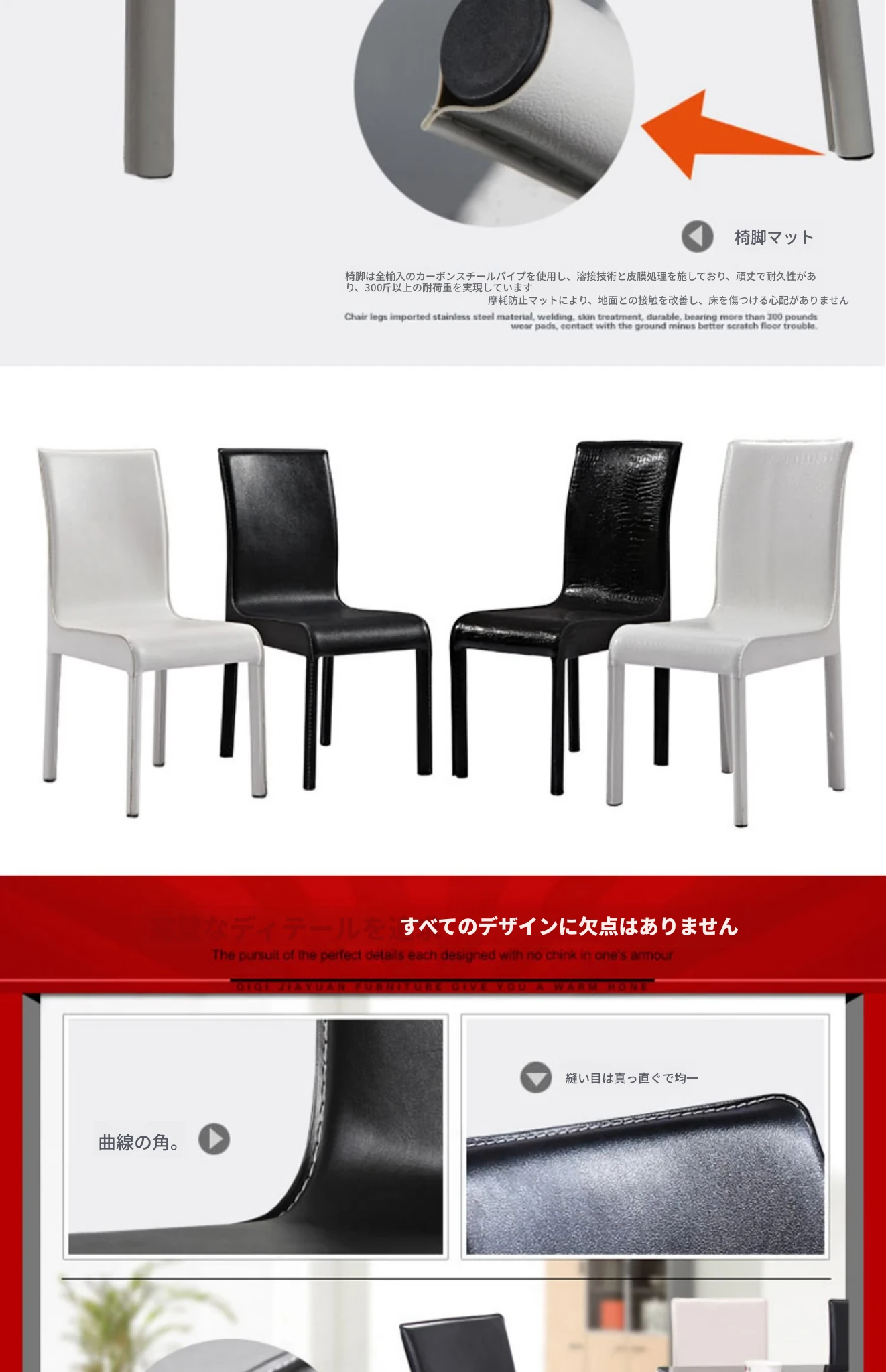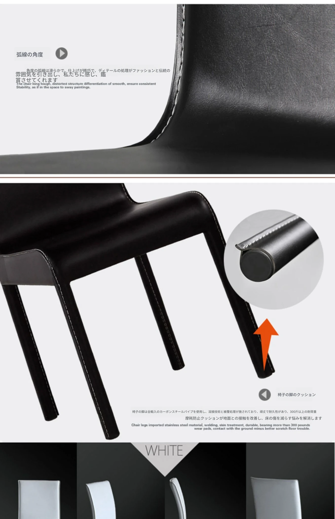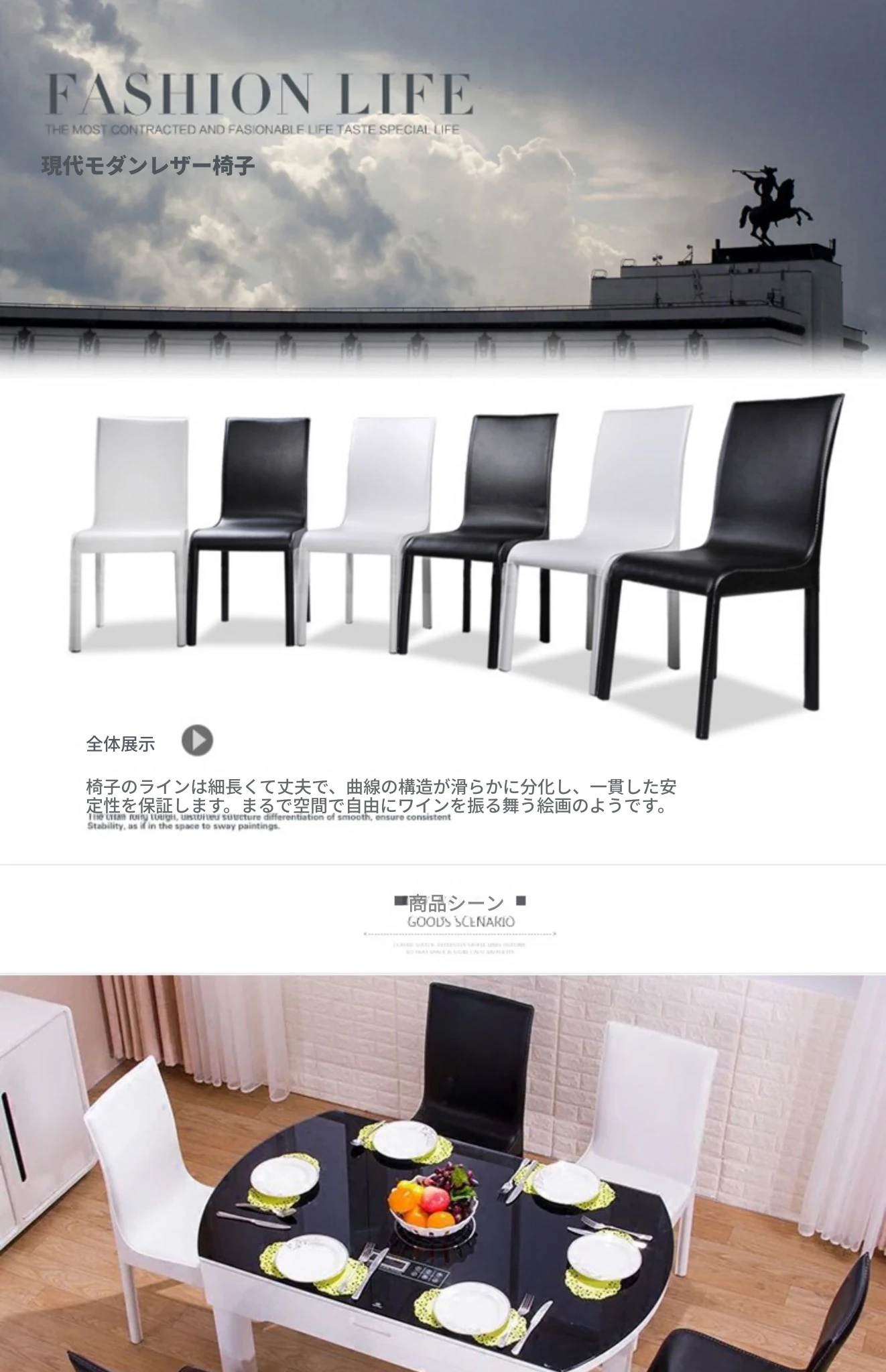 シンプルモダンなレザー製ダイニングチェア|ホテルやレストランにぴったりの軽奢スタイル|オフィスや家庭にも最適|黒と白のエレガントなデザイン|厚みのある背もたれで快適な座り心地を実現!
